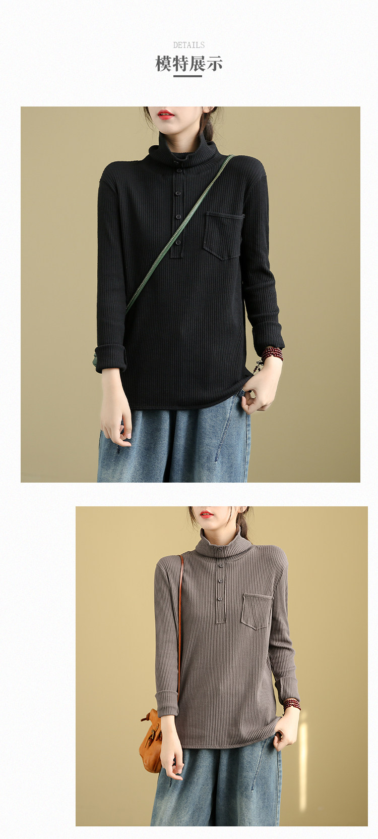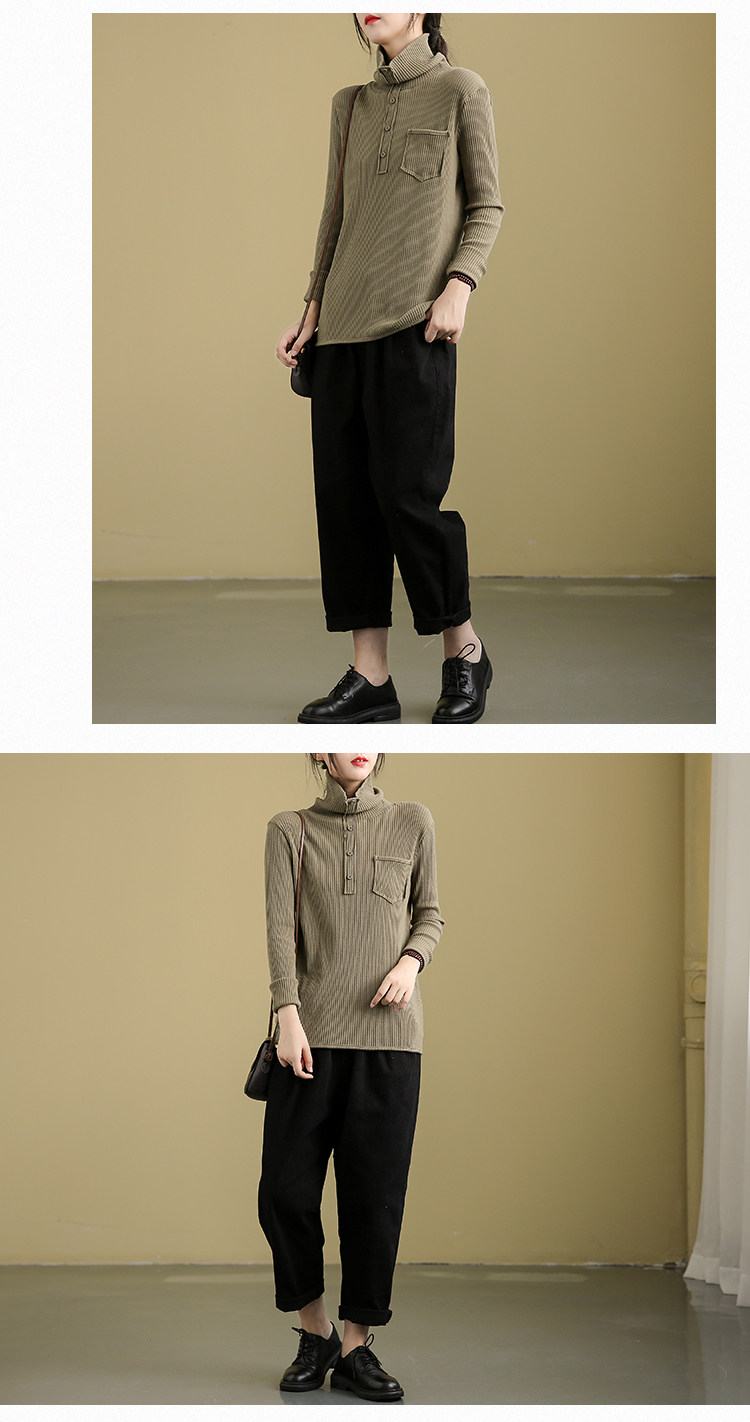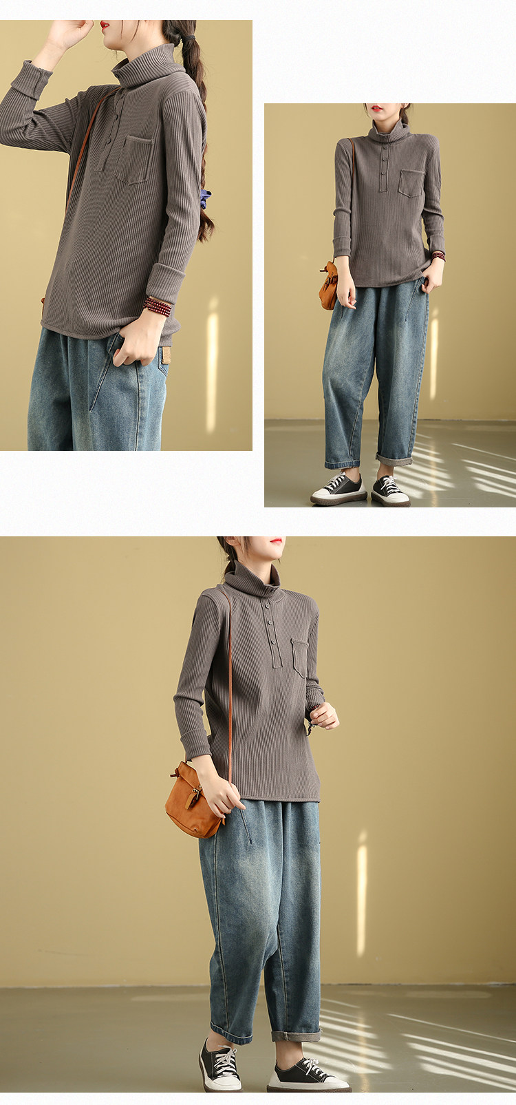 Ретро осенний базовый приятный телу лонгслив, высокий воротник