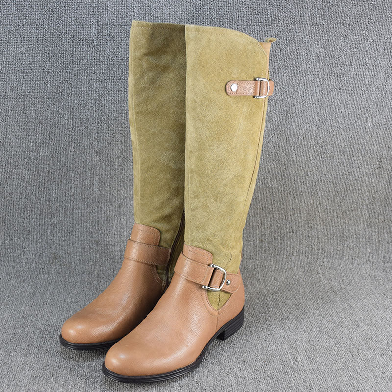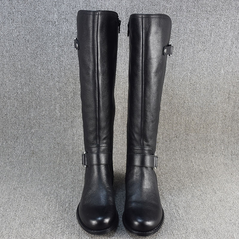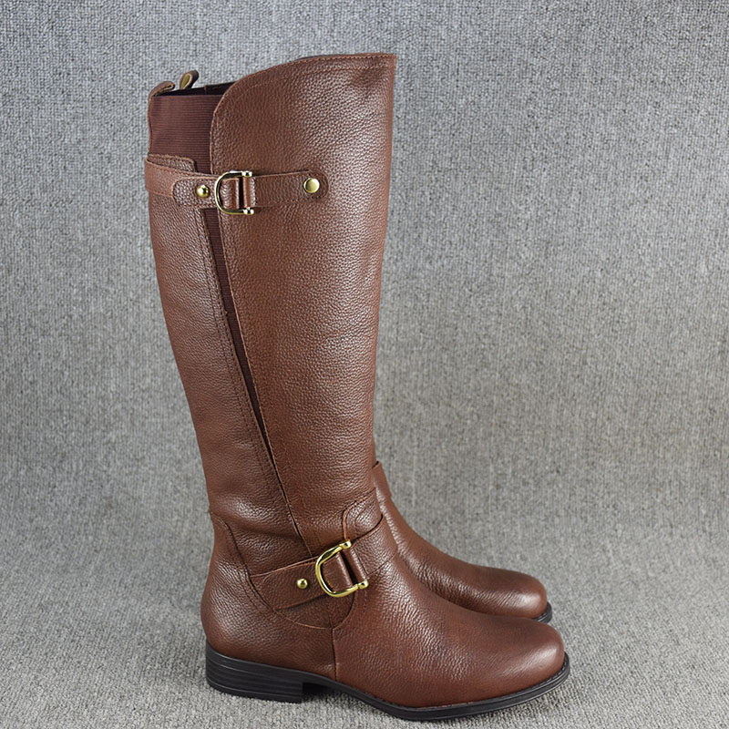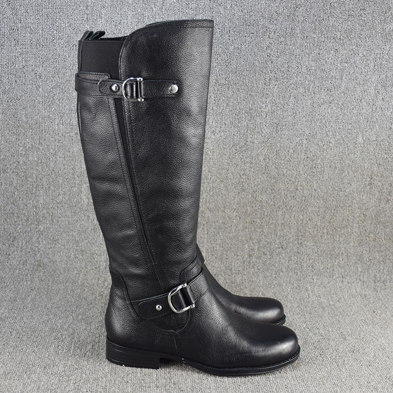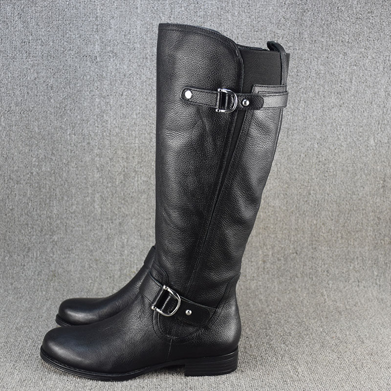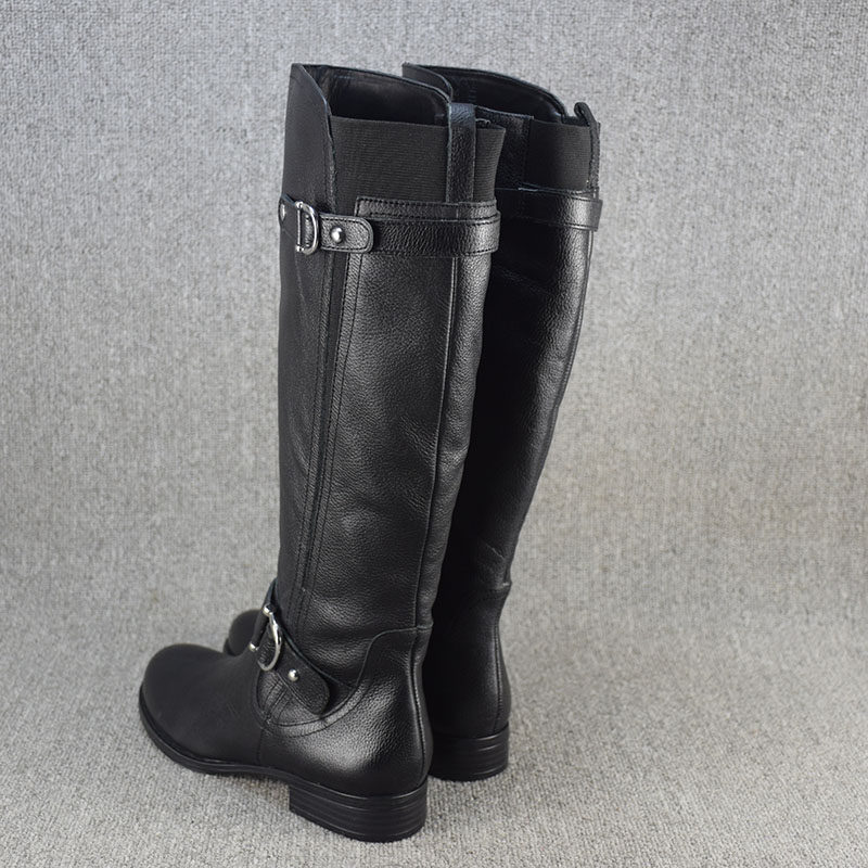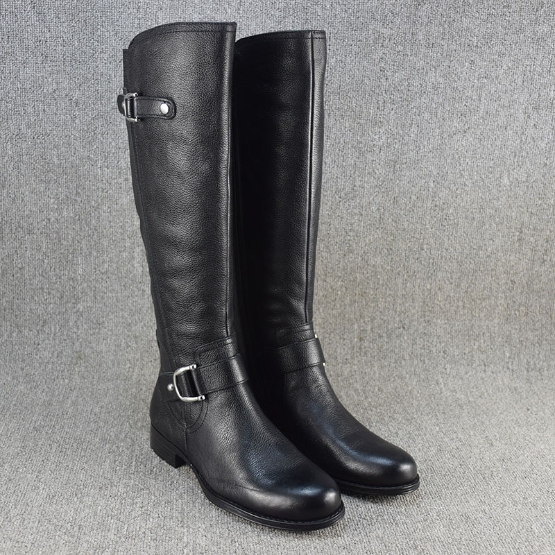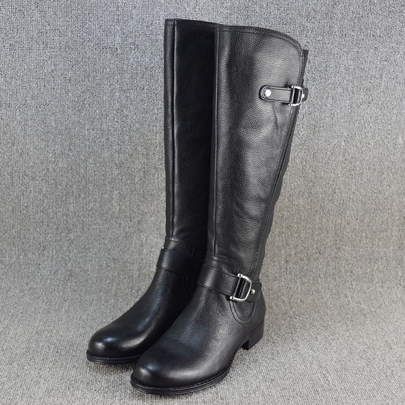 Универсальные демисезонные высокие сапоги, ботинки на плоской подошве, большой размер, из натуральной кожи
