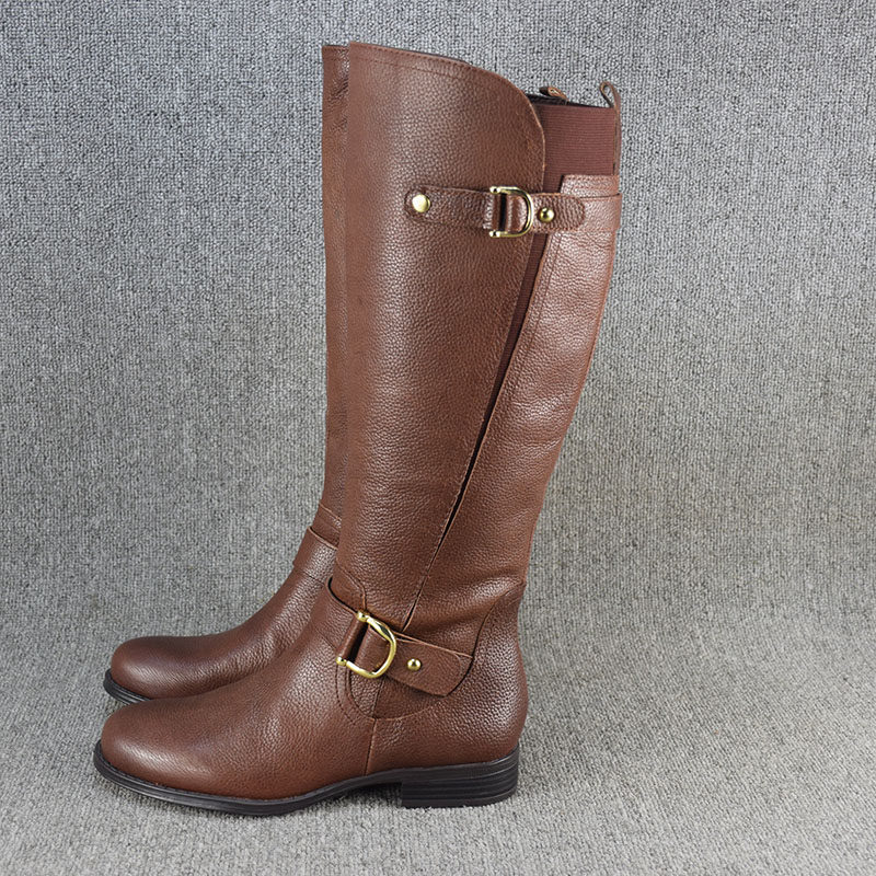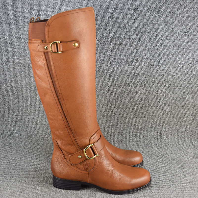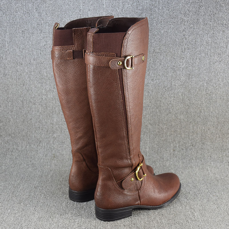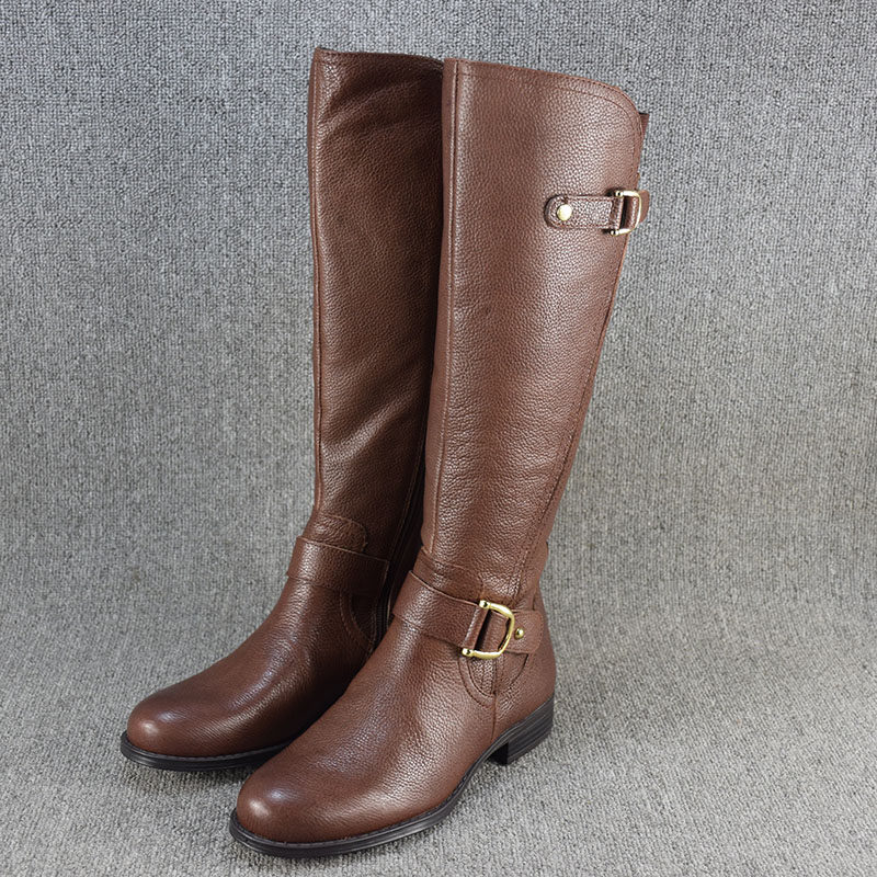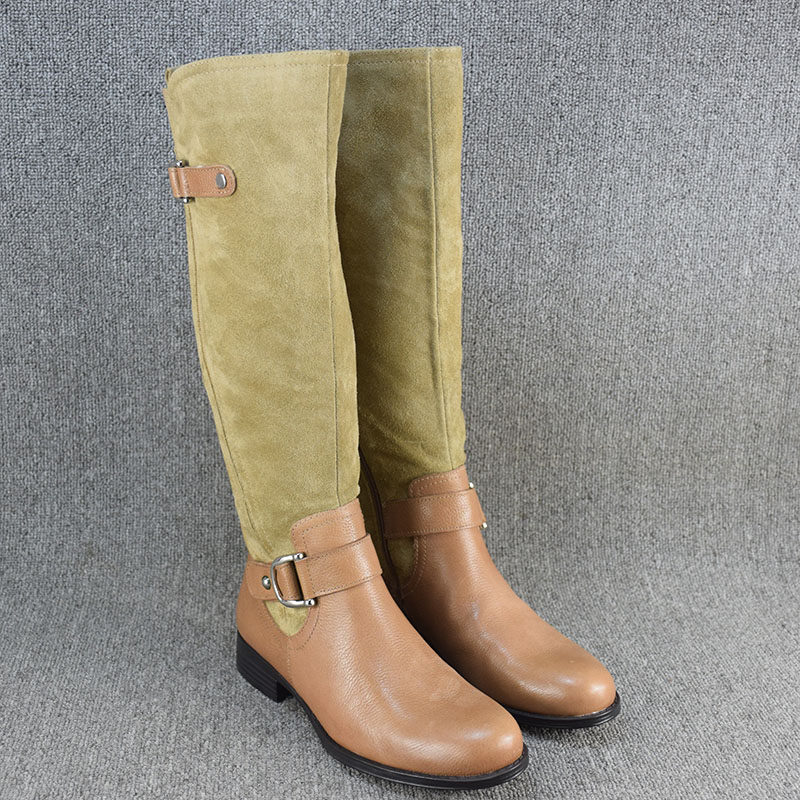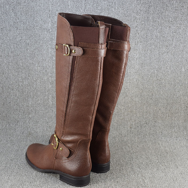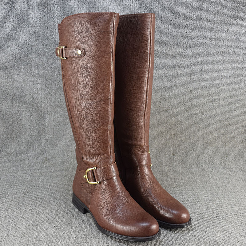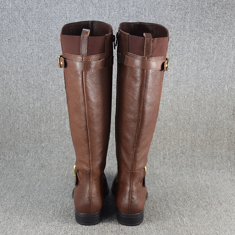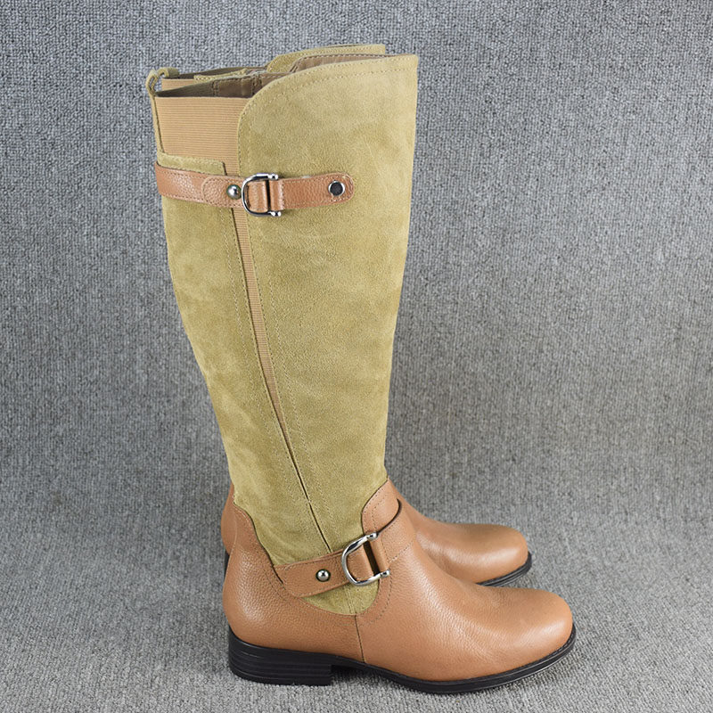 Универсальные демисезонные высокие сапоги, ботинки на плоской подошве, большой размер, из натуральной кожи