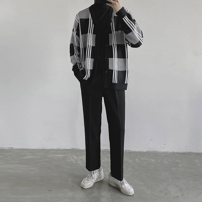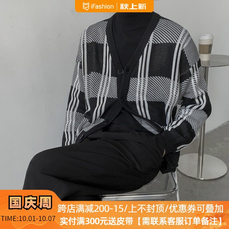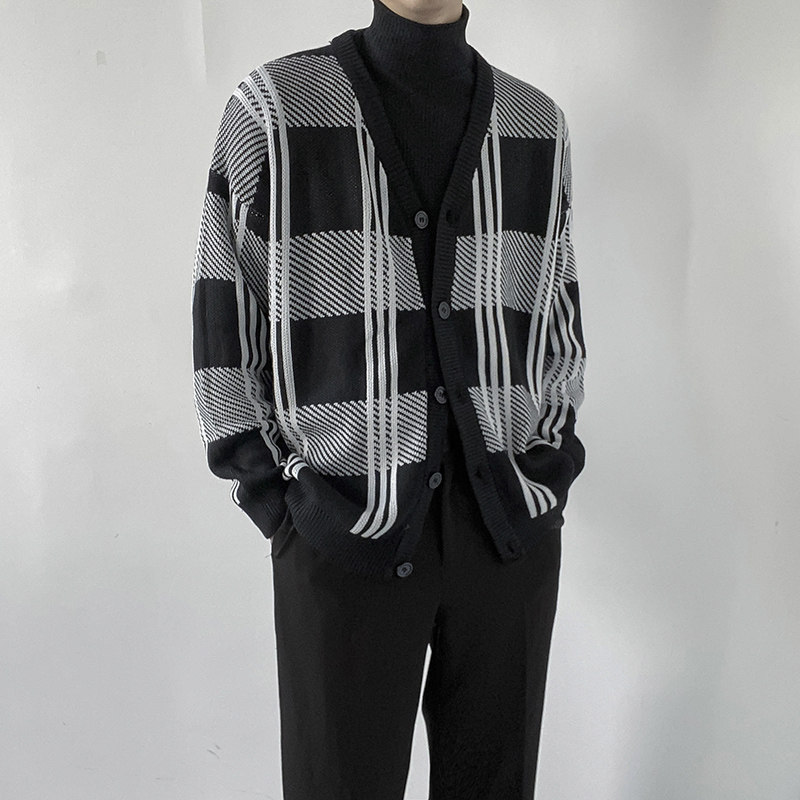 Демисезонный свитер, трендовое термобелье, мужской трикотажный кардиган, подходит для подростков, в корейском стиле, оверсайз, увеличенная толщина, V-образный вырез
