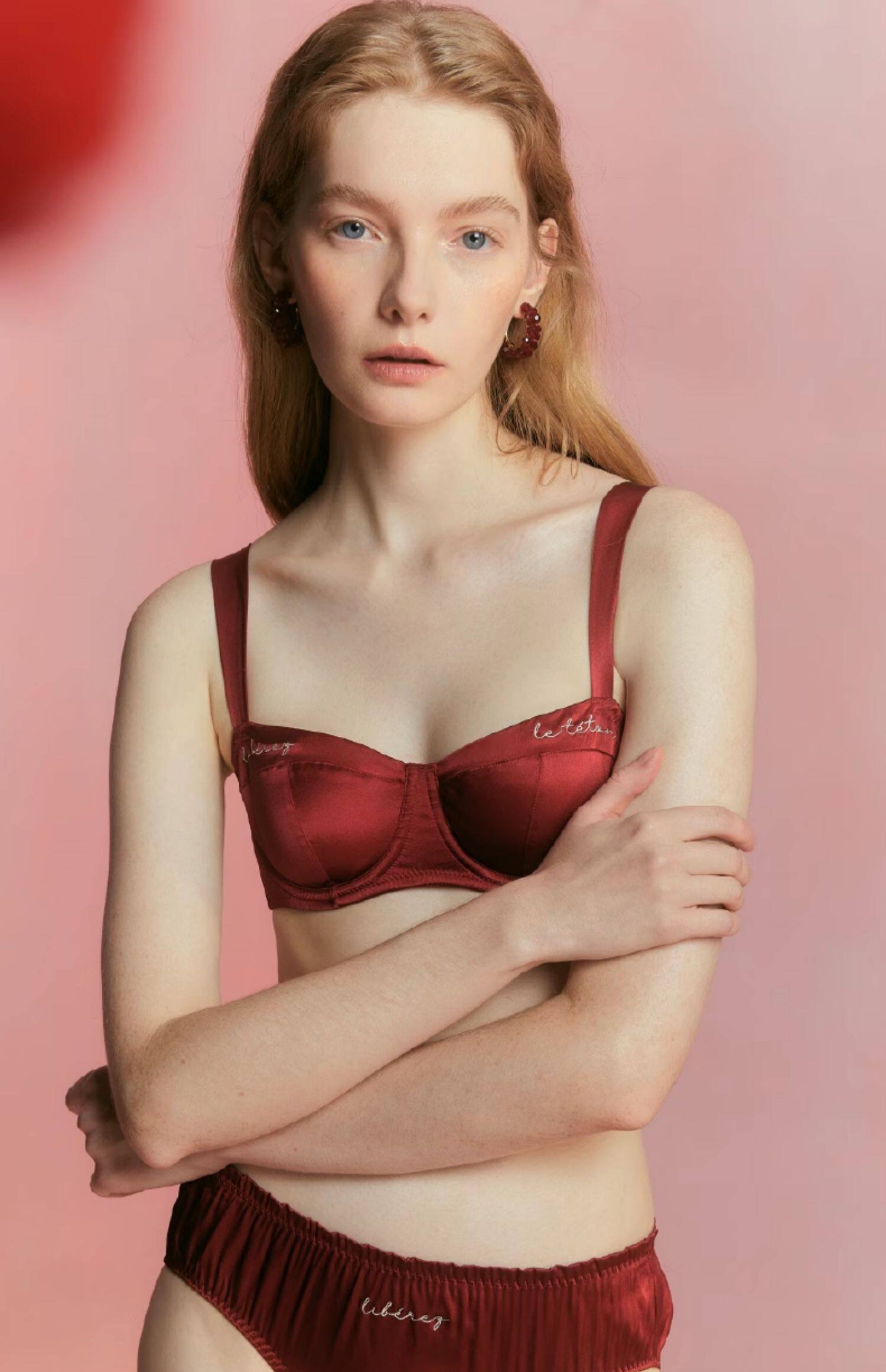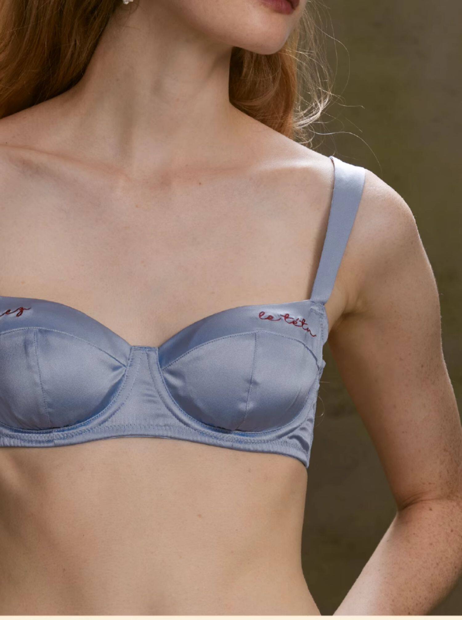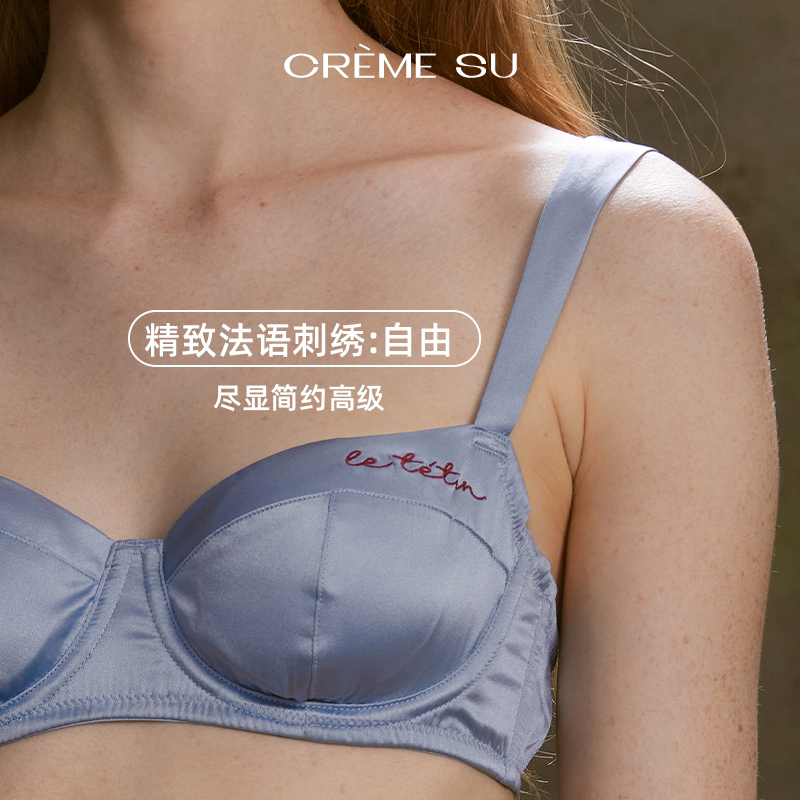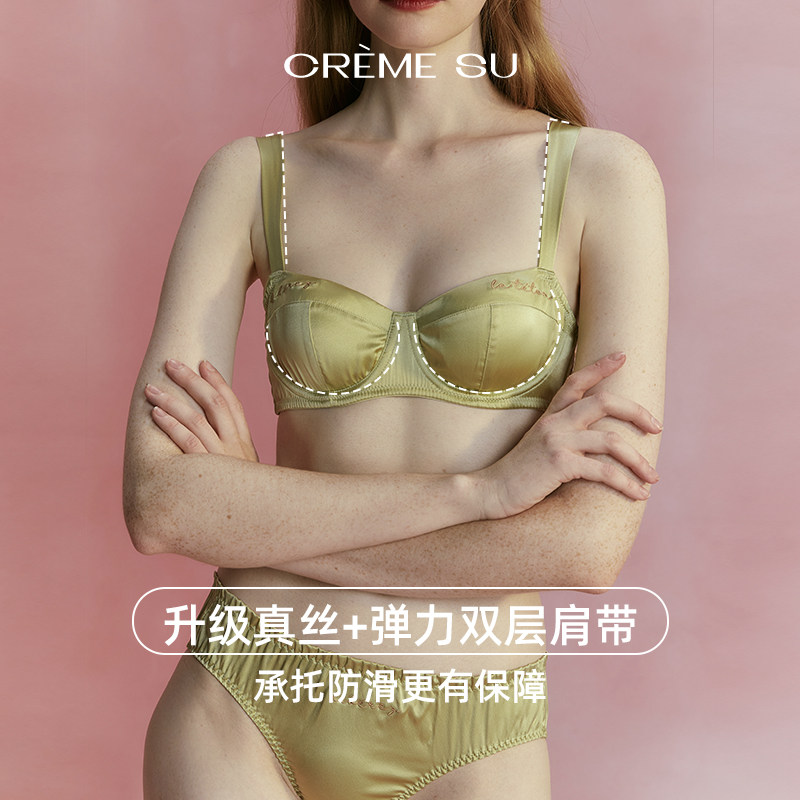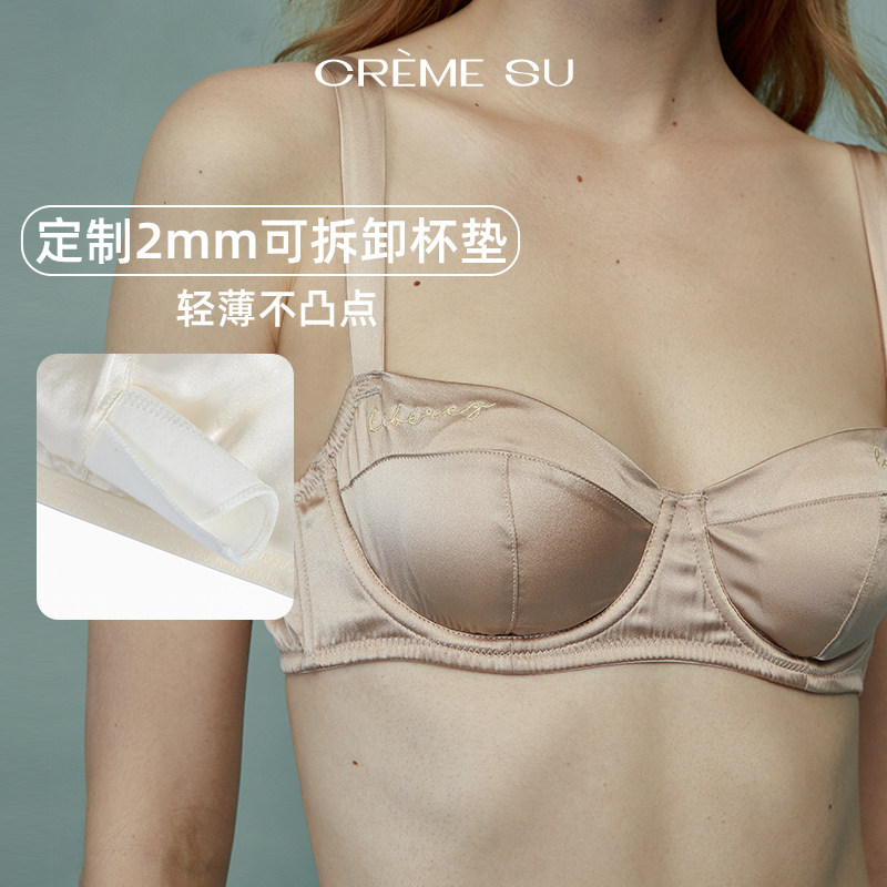 CremeSu Шелковое противоударное нижнее белье, шелковый комфортный бюстгалтер со стальными косточками, с вышивкой