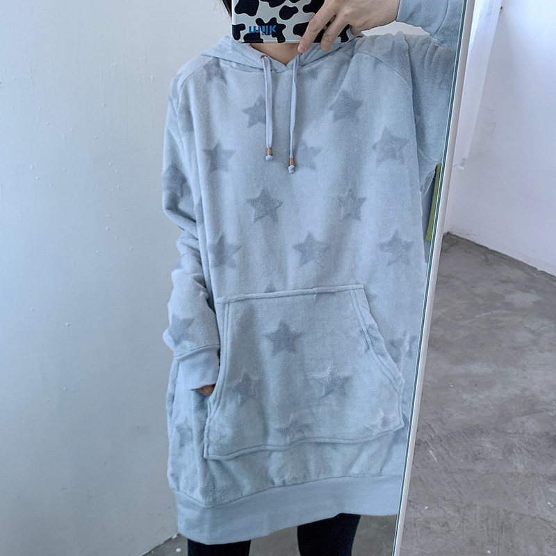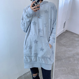 Свитер средней длины с капюшоном и цветочным узором со звездами