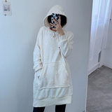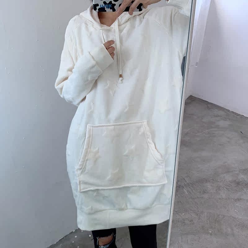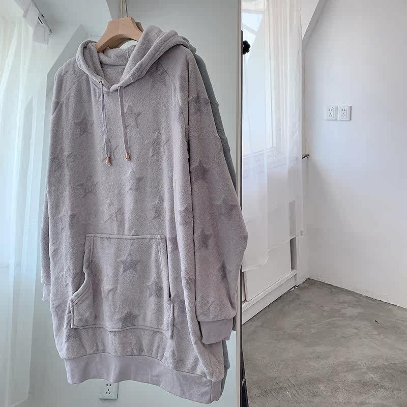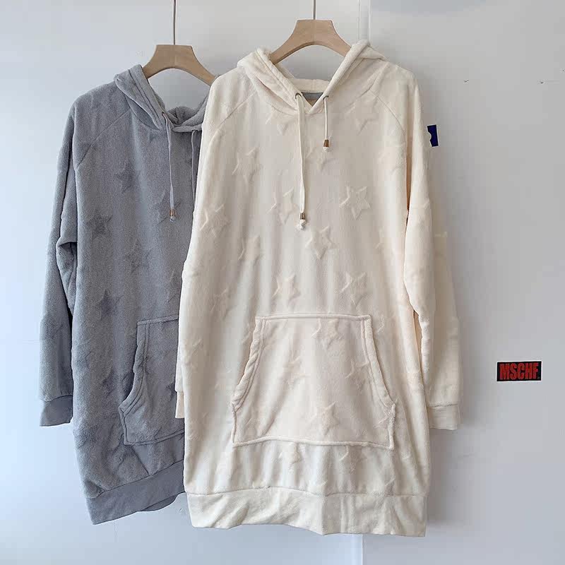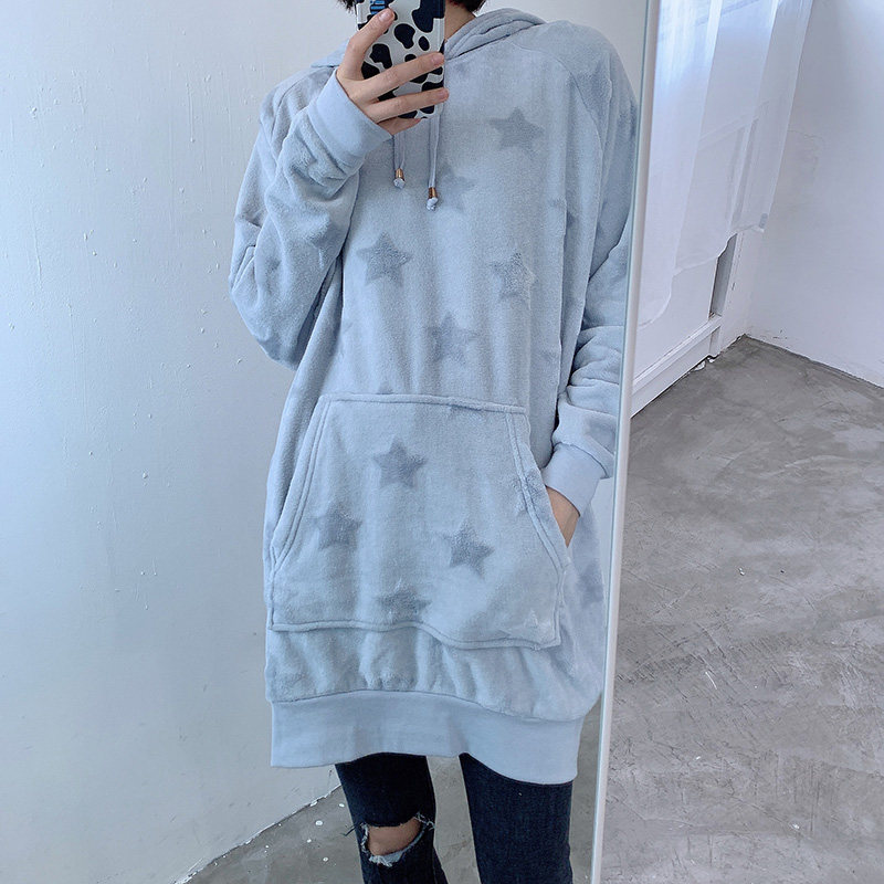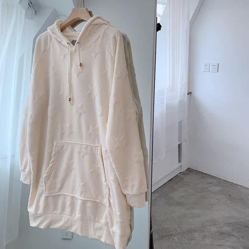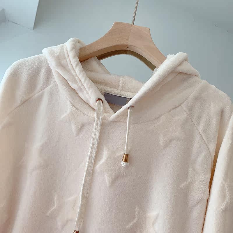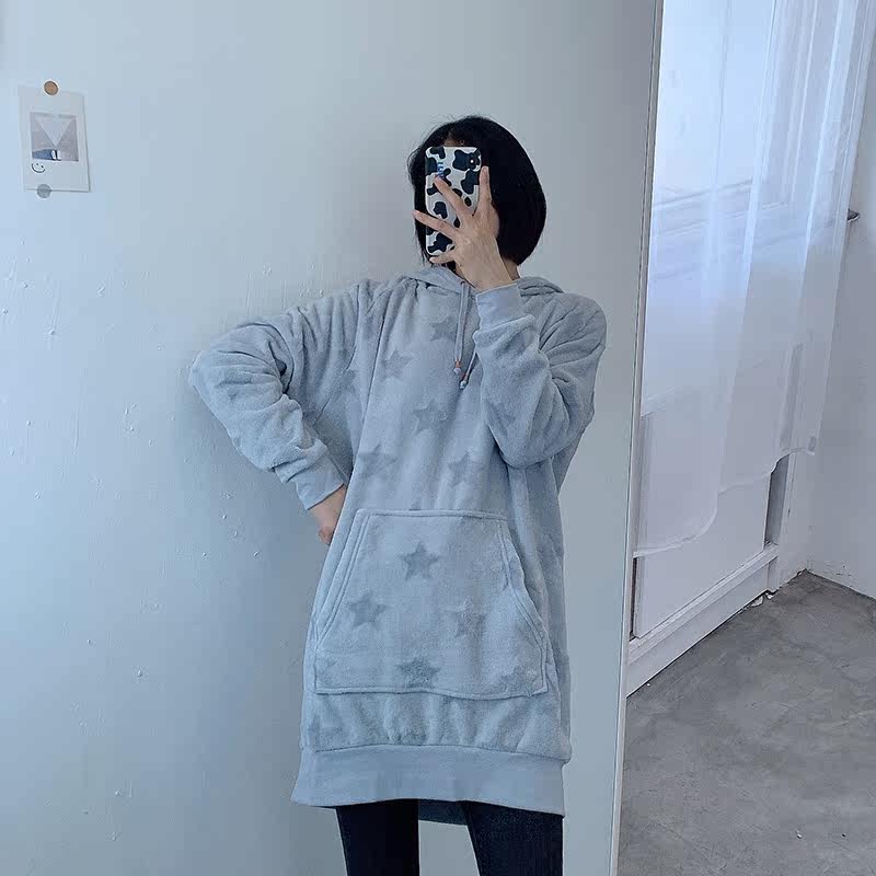 Бархатная демисезонная длинная цветная утепленный лонгслив с капюшоном для отдыха, свободный крой