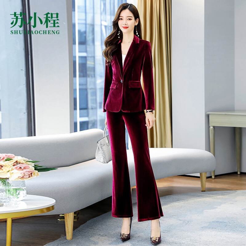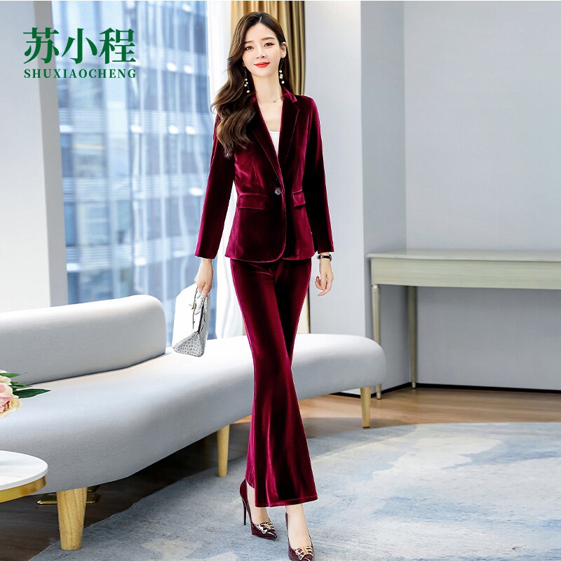 Красный бархатный элитный пиджак классического кроя, модный комплект, 2023