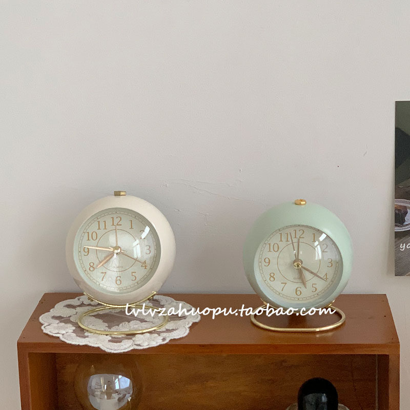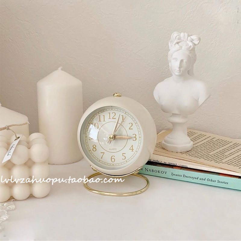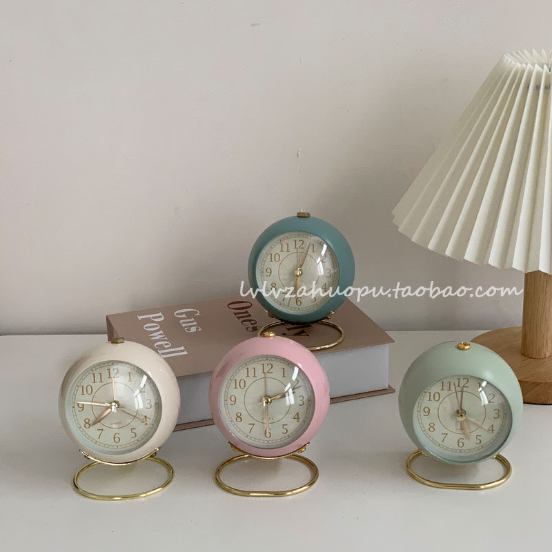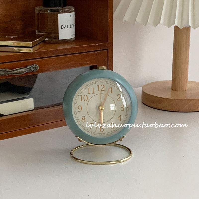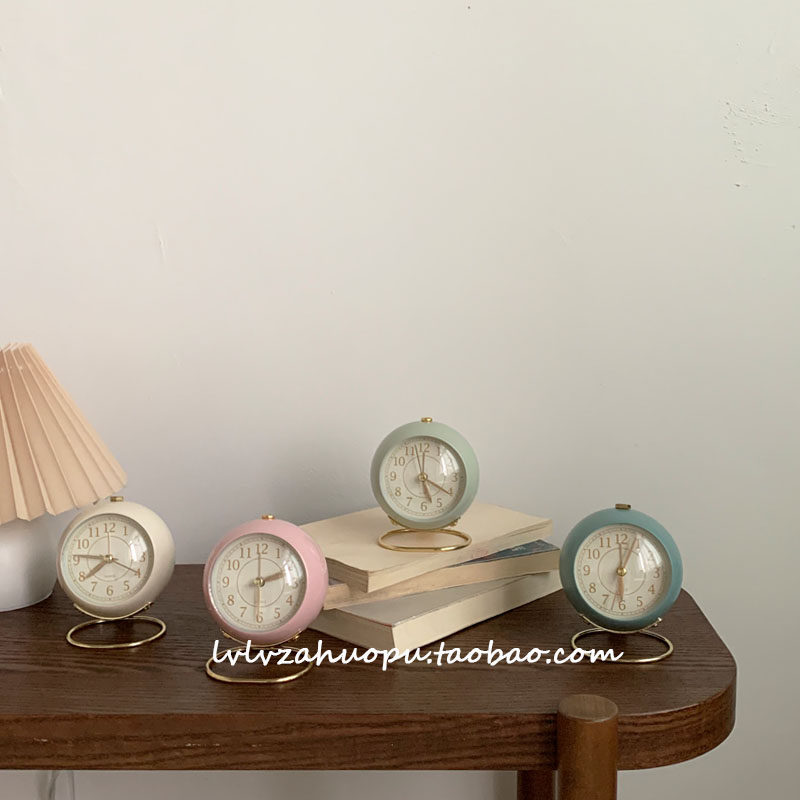 Retro Clock Corea ins работоспособность настольного настольного будильника Кругковые настольные часы с ночным светом винтажные домашние украшения