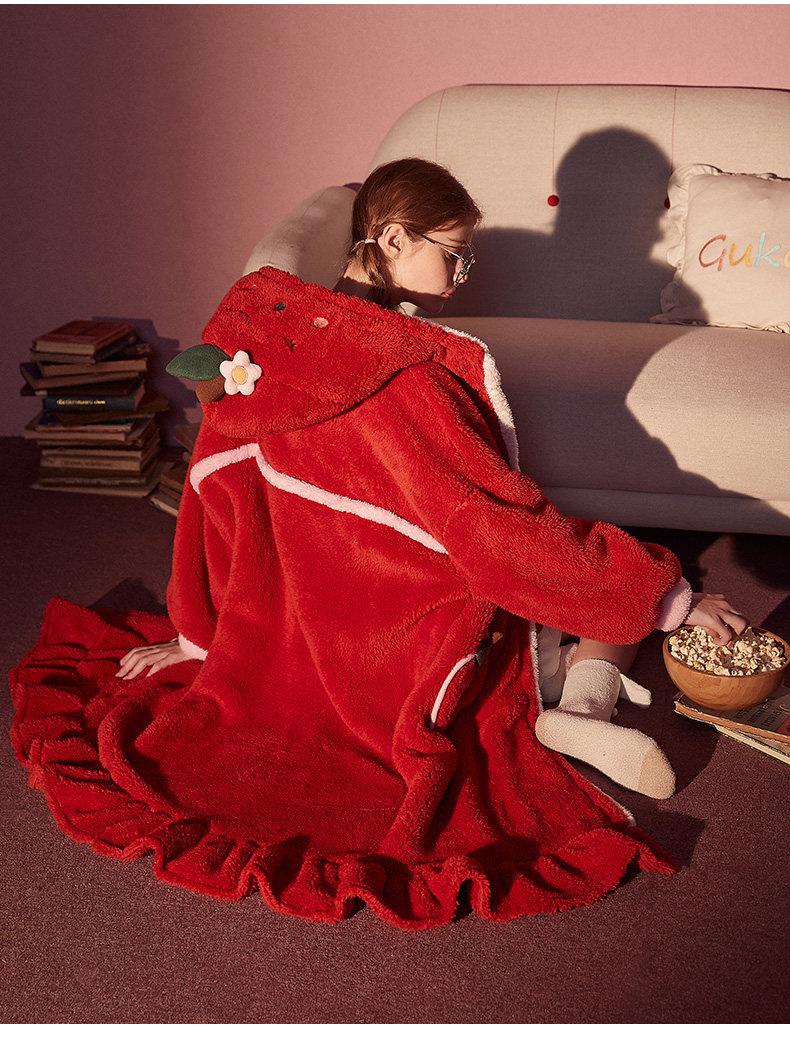 Gukoo/果壳 Apple, демисезонная коралловая пижама, бархатный банный халат для отдыха