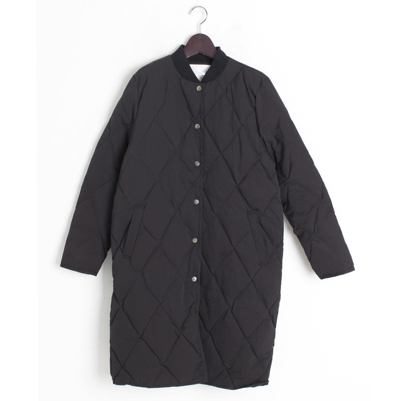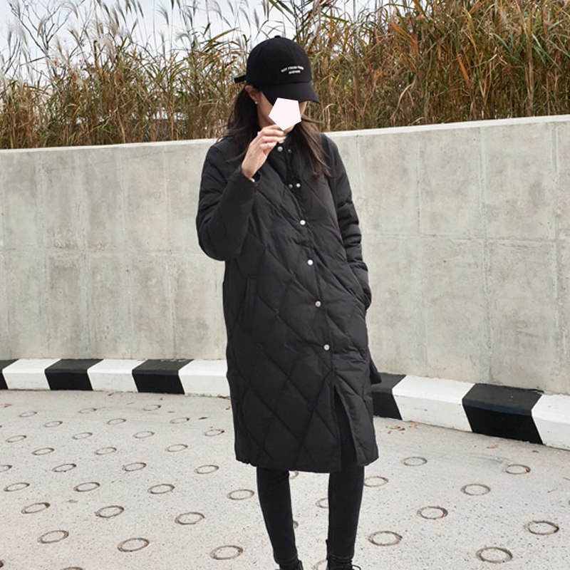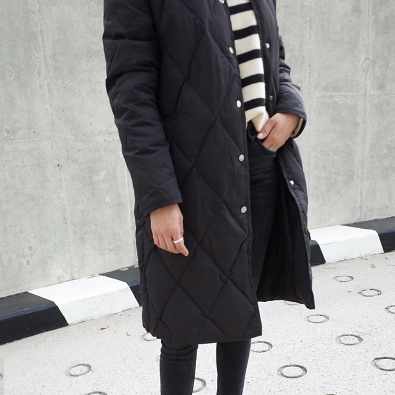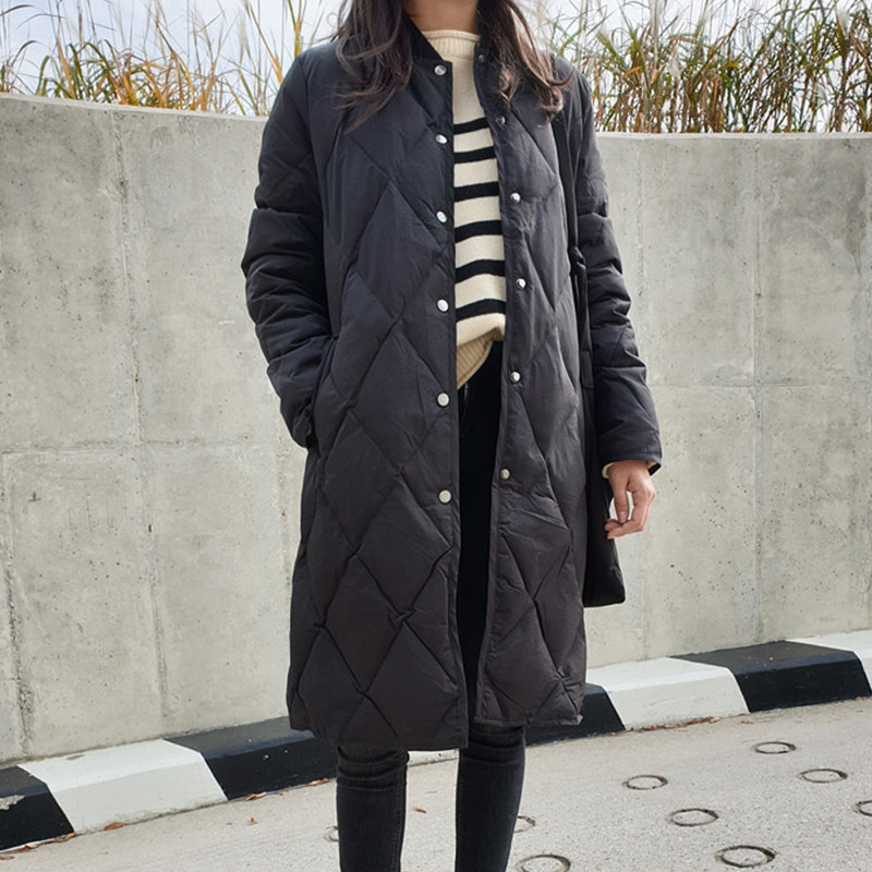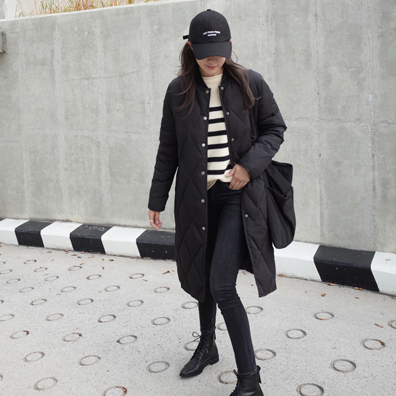Черная длинная бейсбольная форма с ромбовидным узором, зимняя куртка, свободный крой, увеличенная толщина