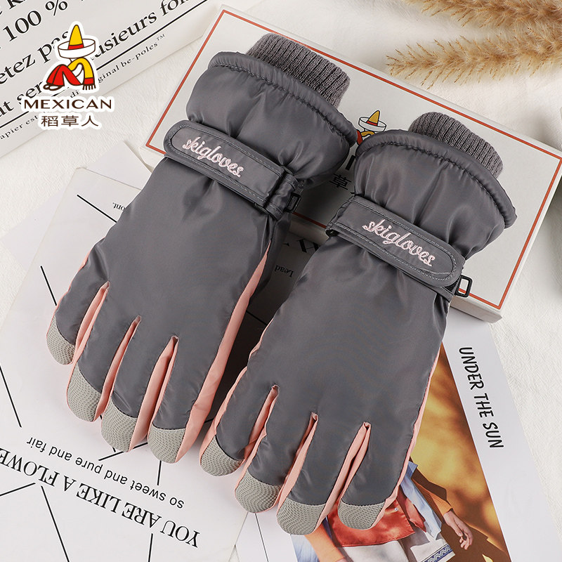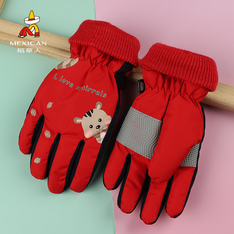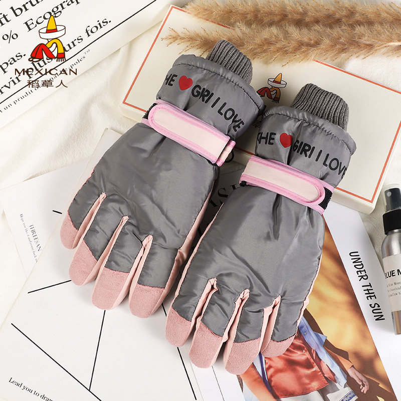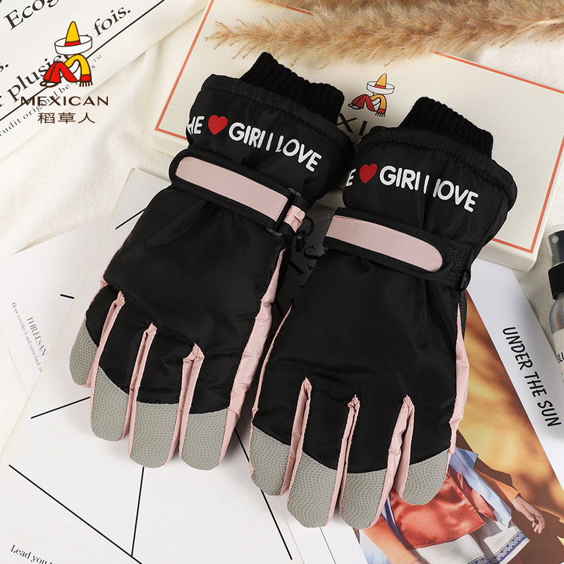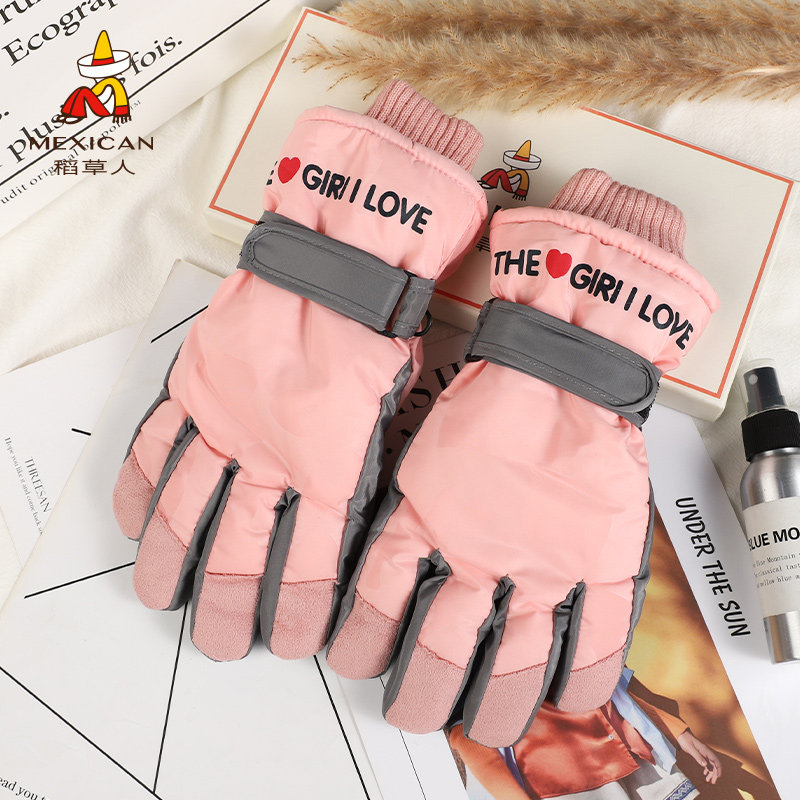 Лыжные демисезонные перчатки, удерживающий тепло милый утепленный ветрозащитный комплект