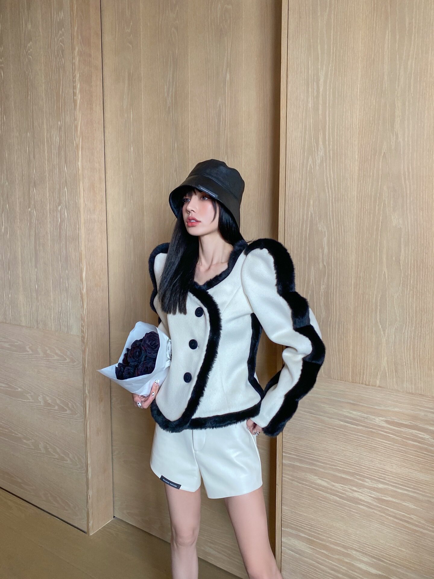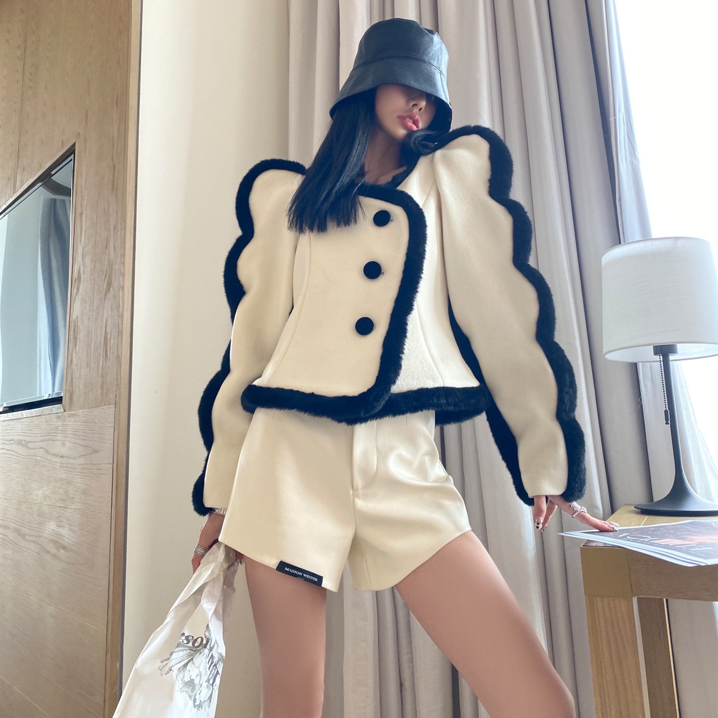 Masion.w20 Осень и зима знаменитость Мао Мао проводка проводка ароматная ароматная шерсть с кожа U U Black Label Short Mulan