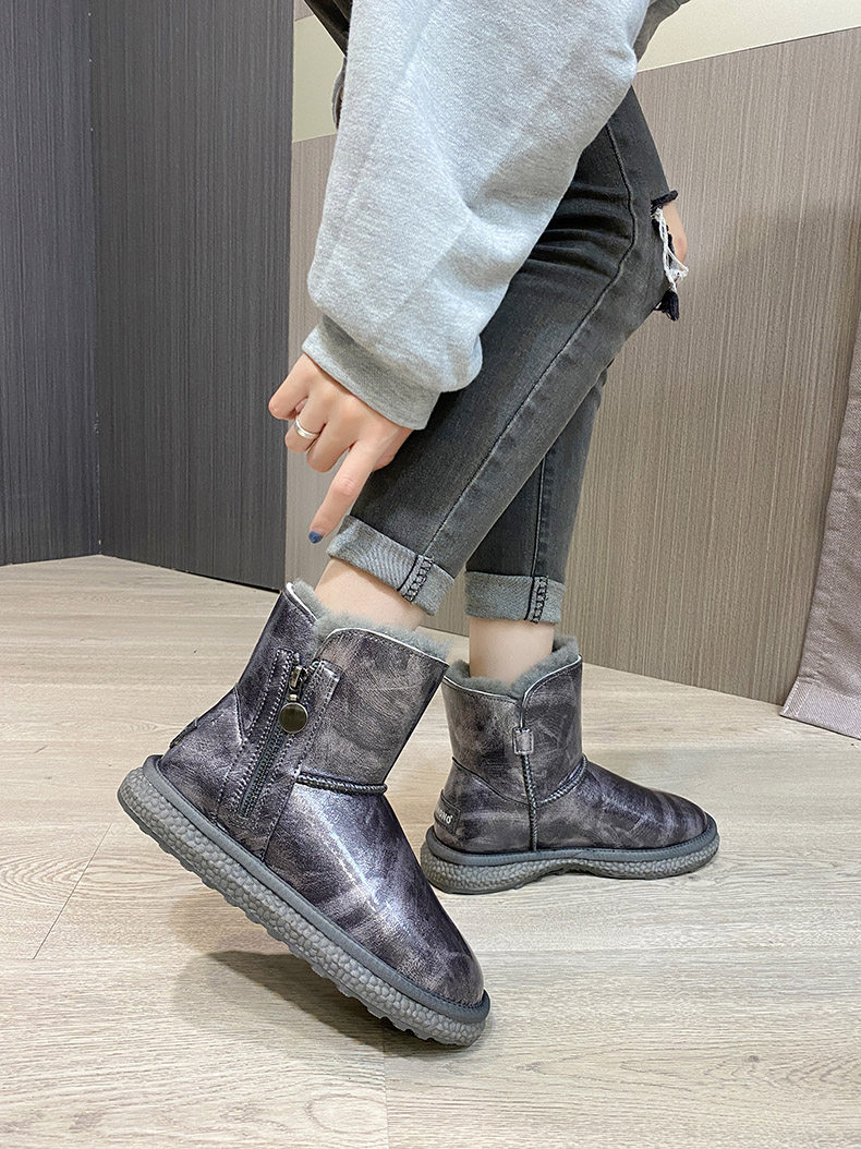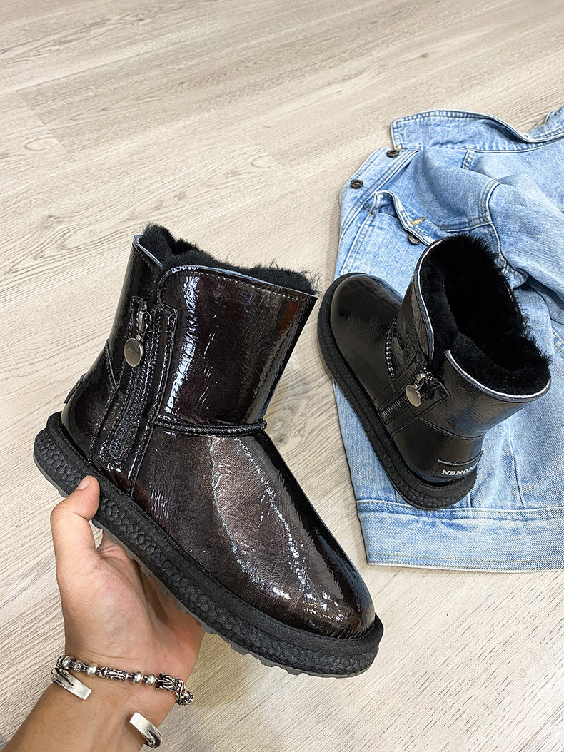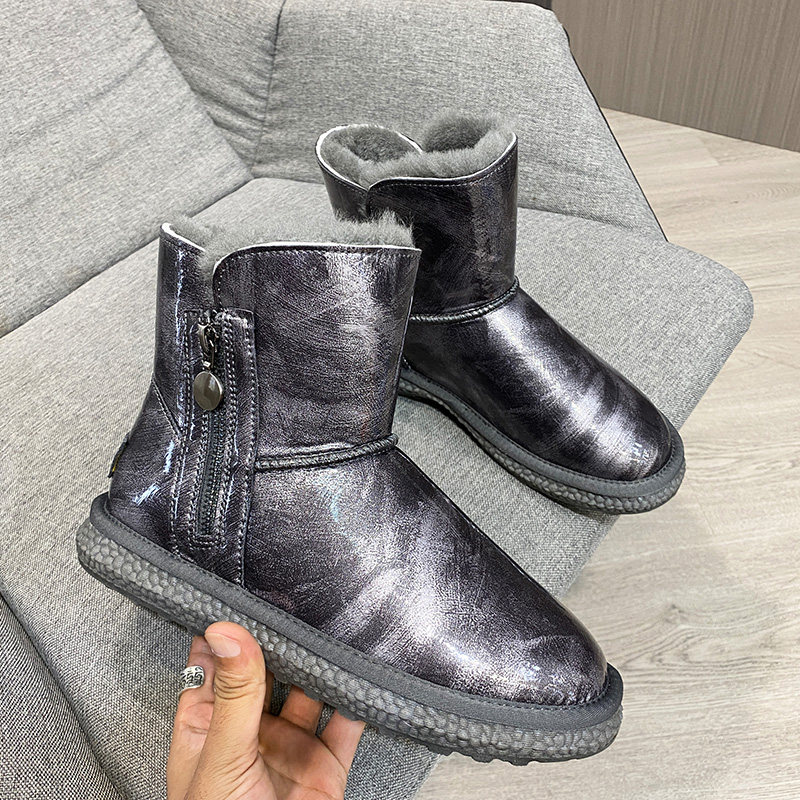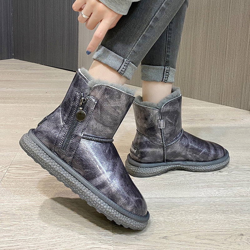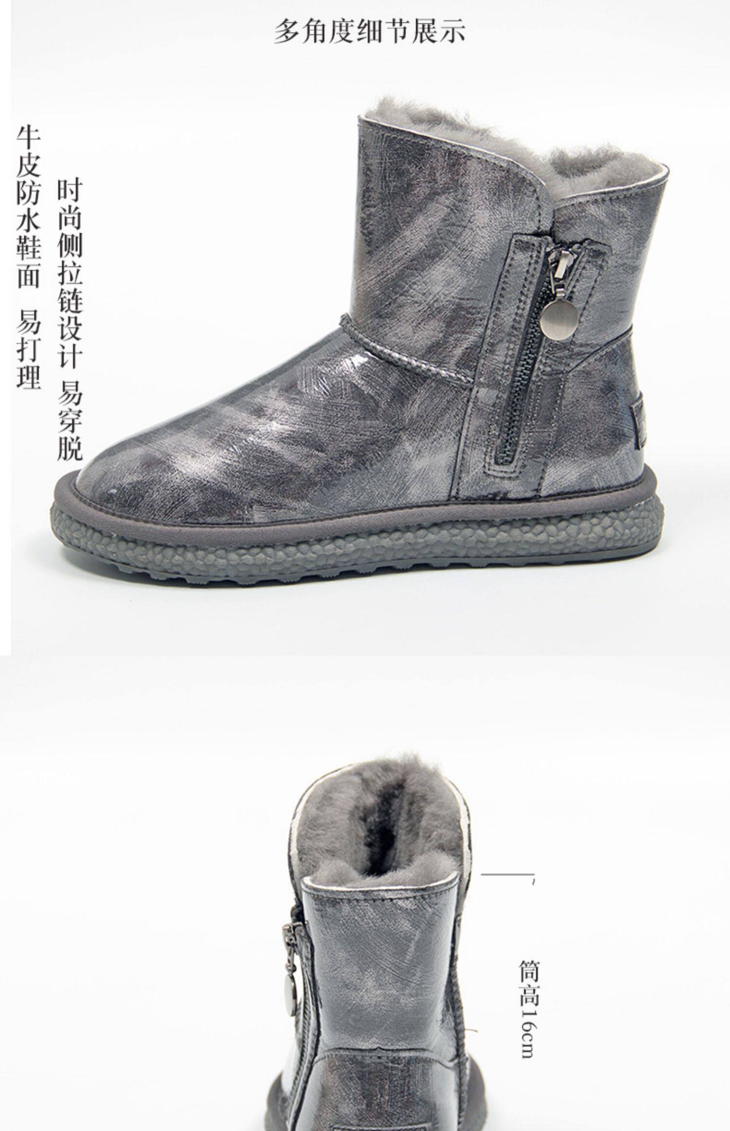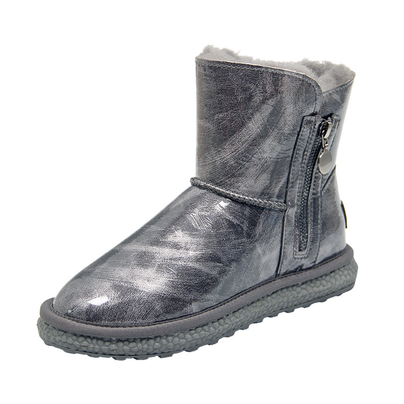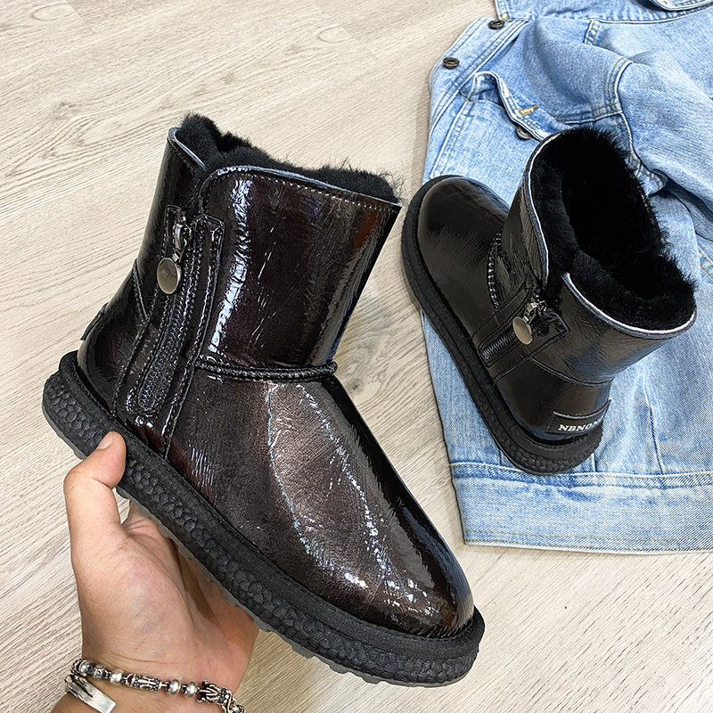 Нескользящие зимние короткие сапоги с молнией, из натуральной кожи, средней длины