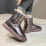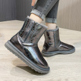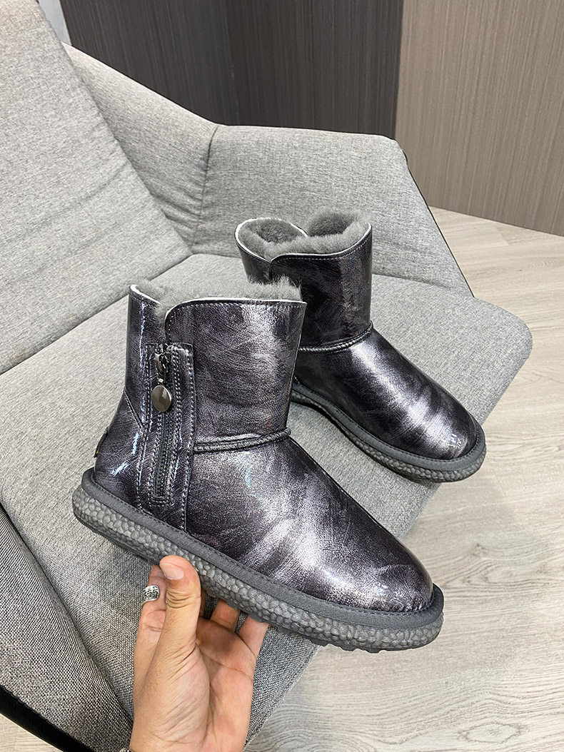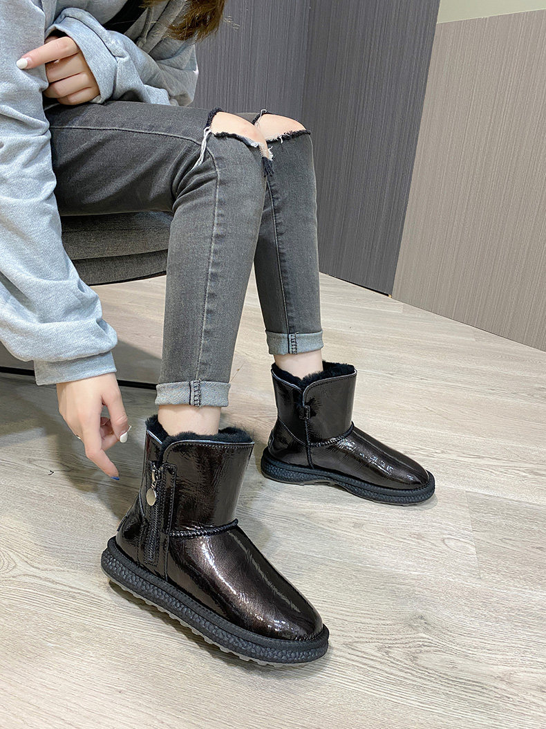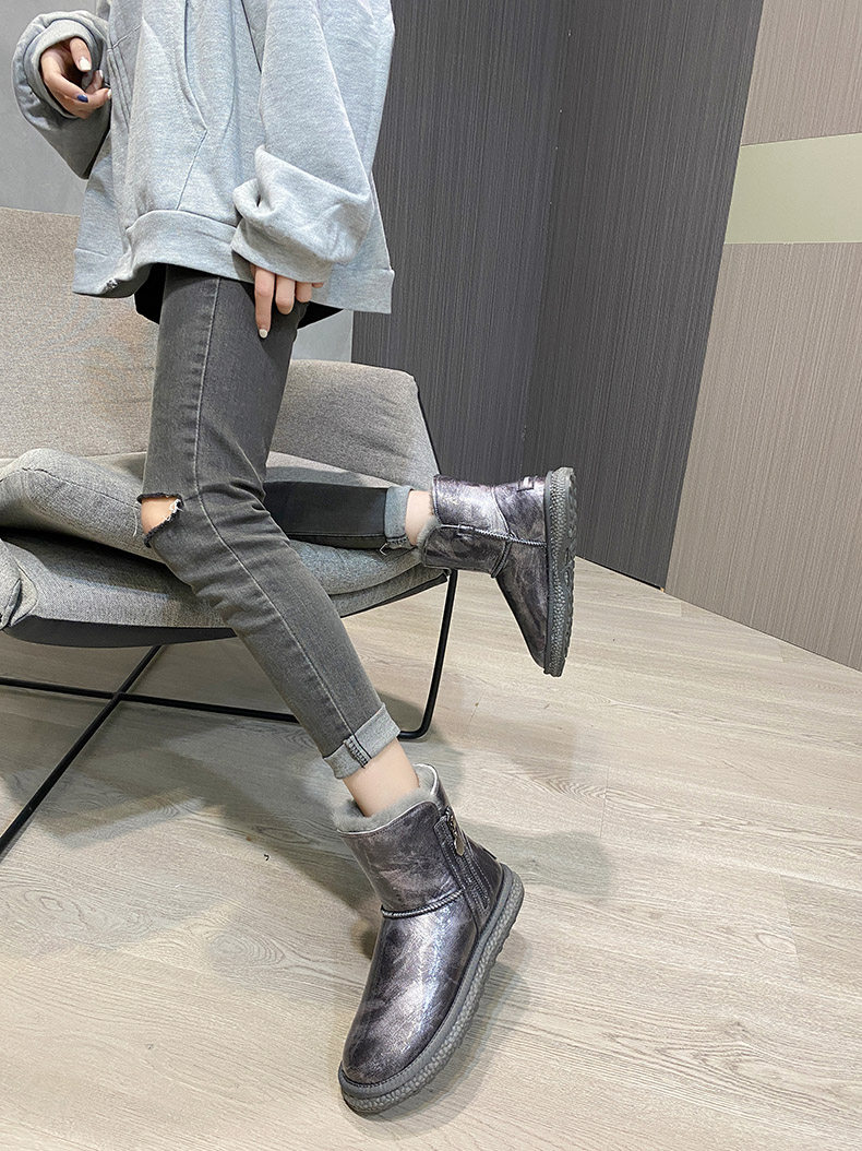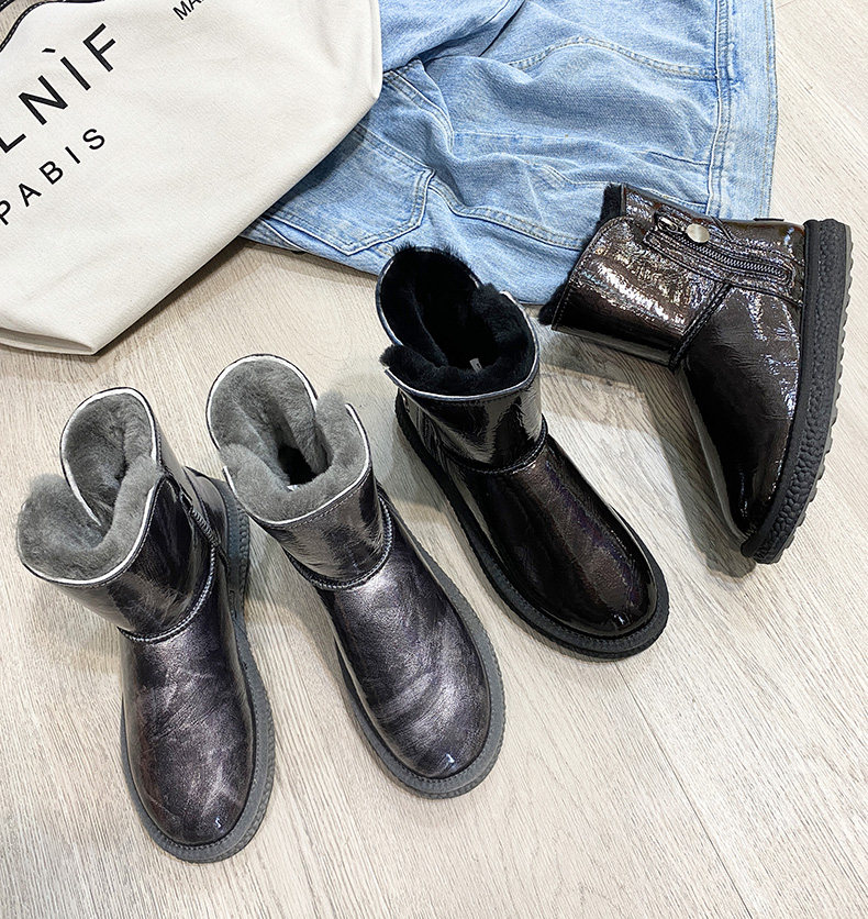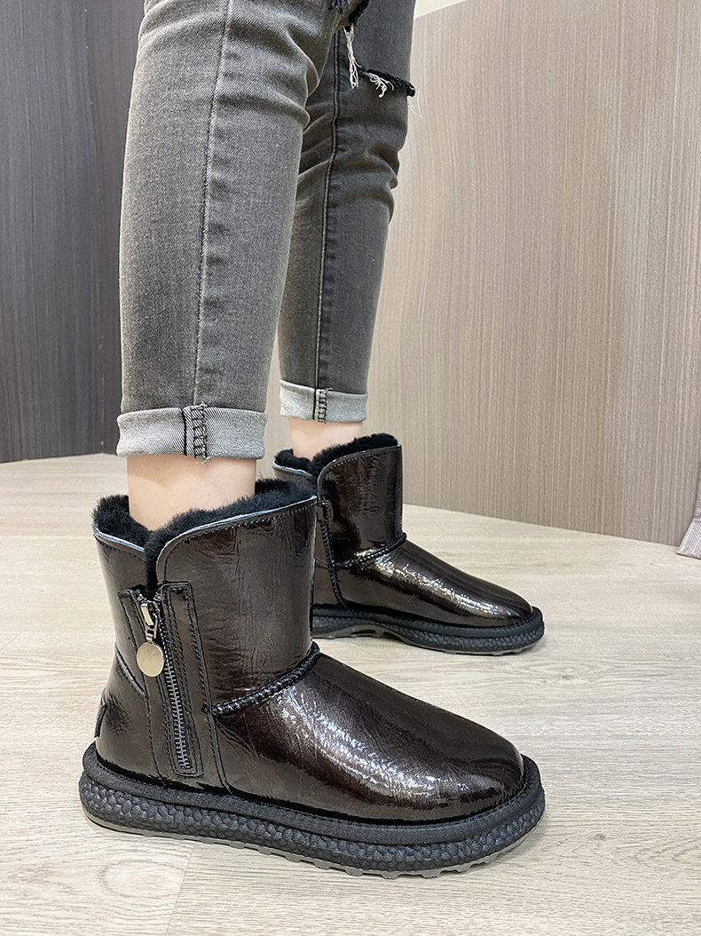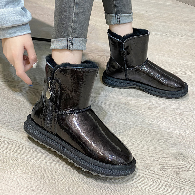 Нескользящие зимние короткие сапоги с молнией, из натуральной кожи, средней длины