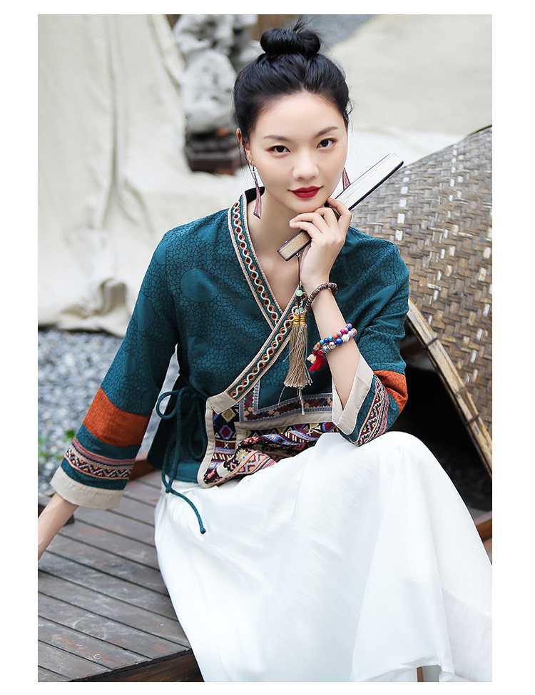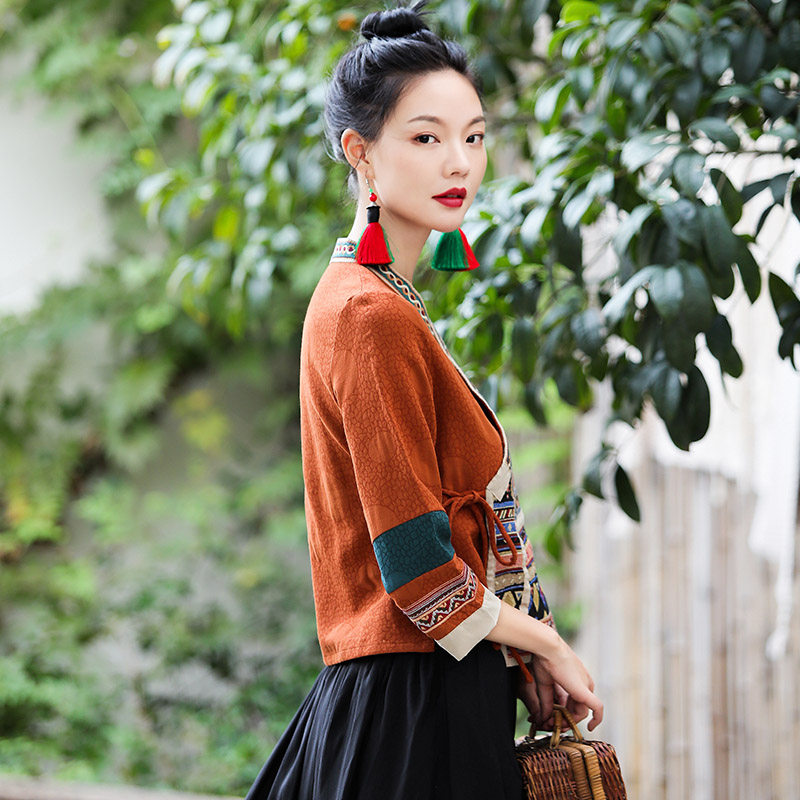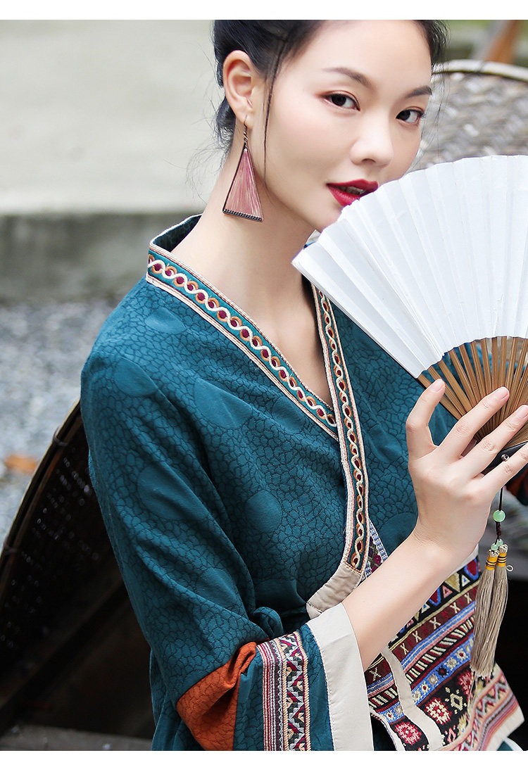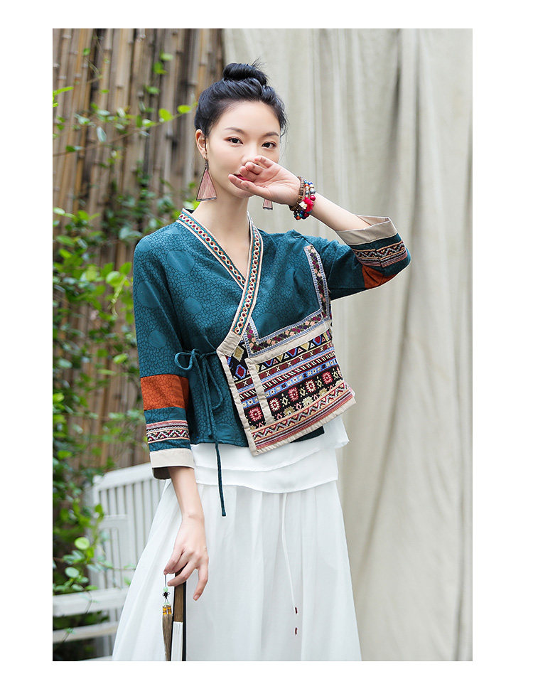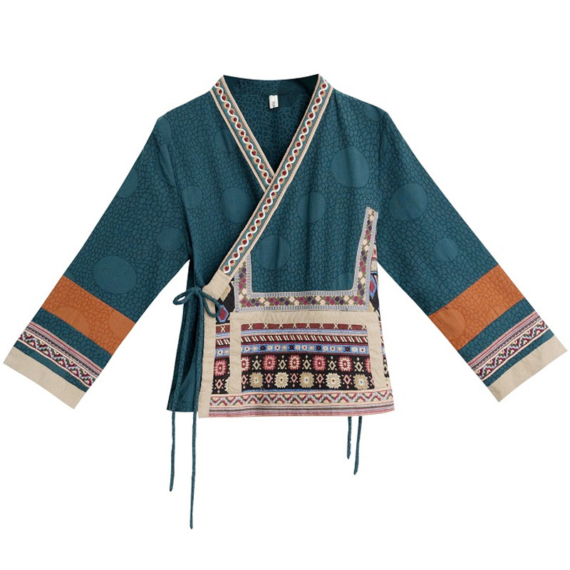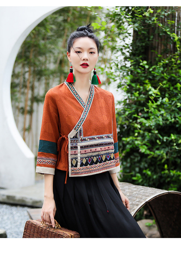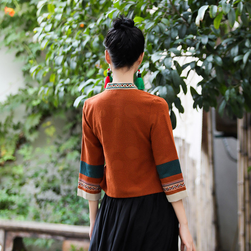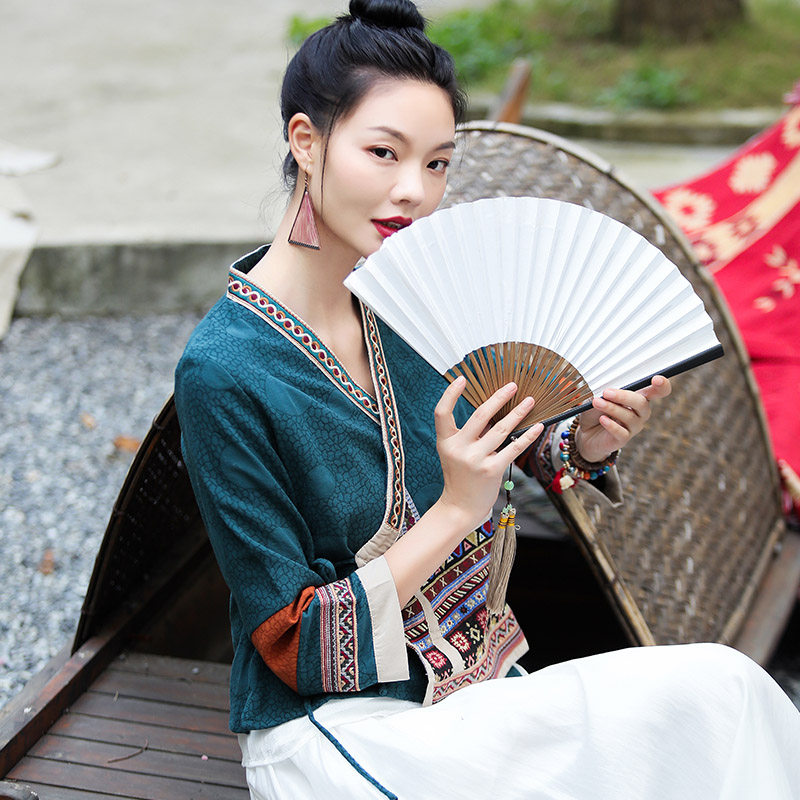 Ханьфу, куртка, из хлопка и льна, с вышивкой