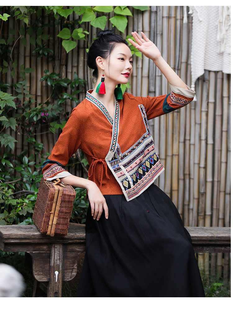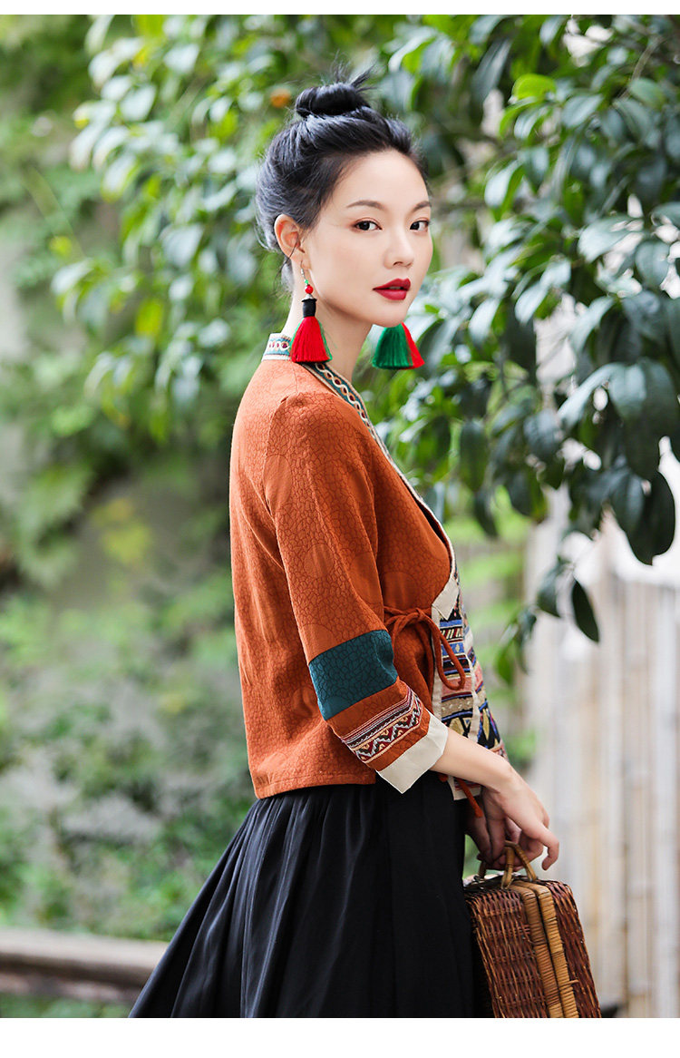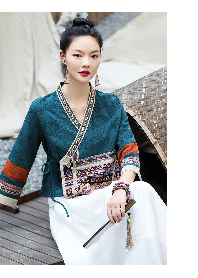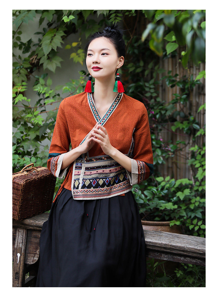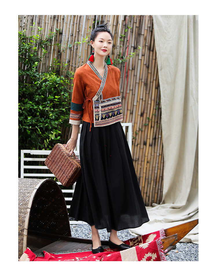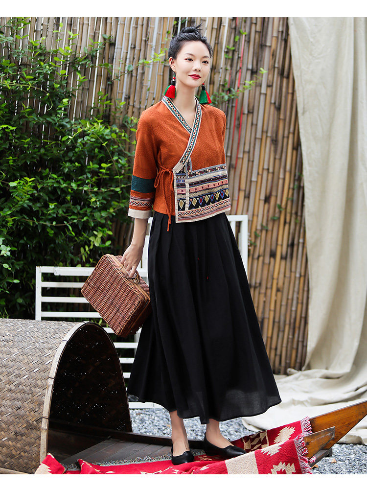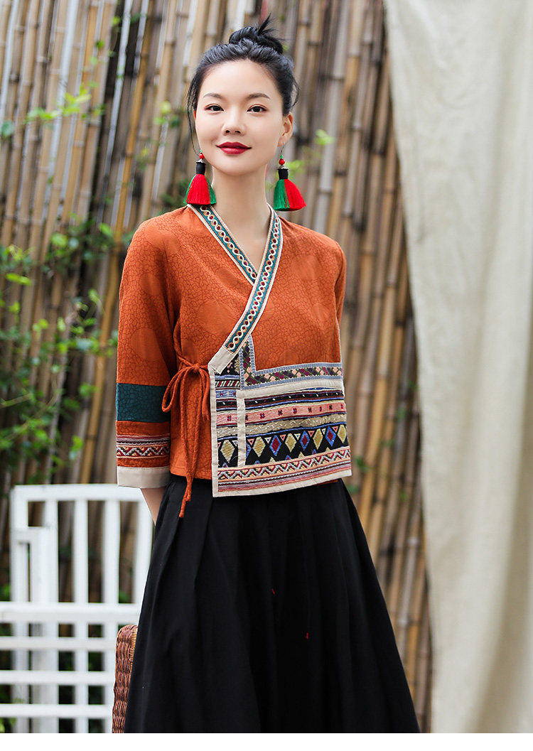 Ханьфу, куртка, из хлопка и льна, с вышивкой