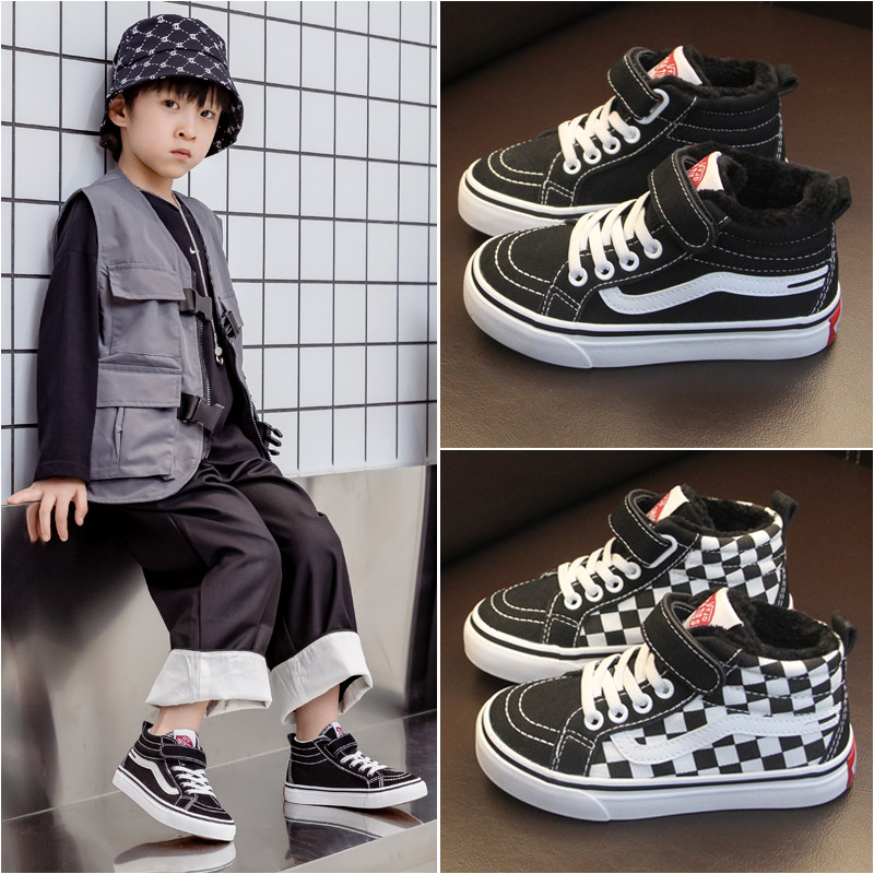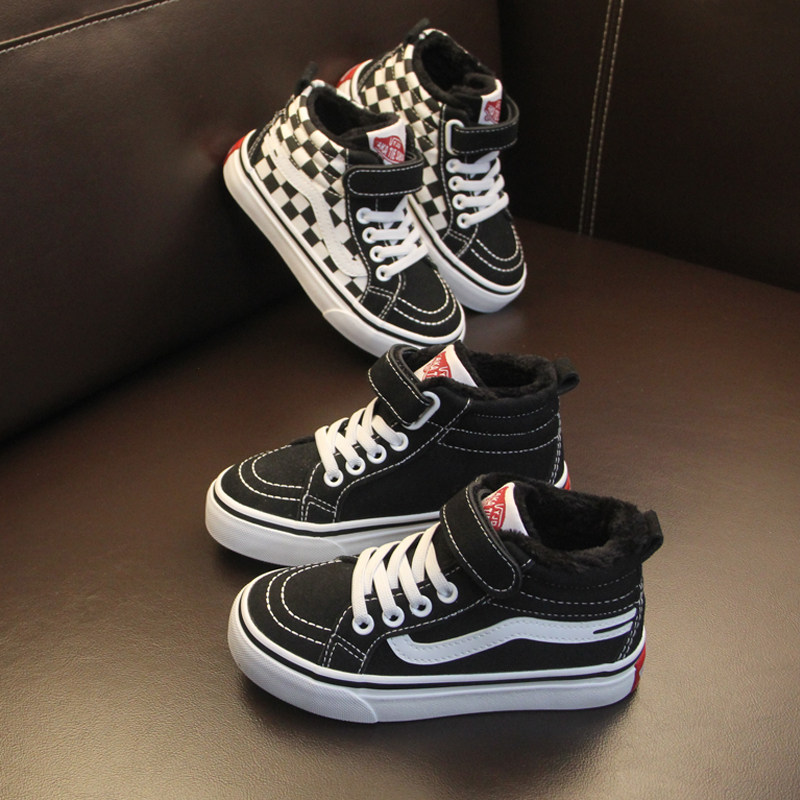 Детская хлопчатобумажная обувь, зимняя обувь для мальчиков, утолщенная и теплая, бархатная обувь для девочек среднего и большого размера, студенческие зимние повседневные кроссовки, модные.