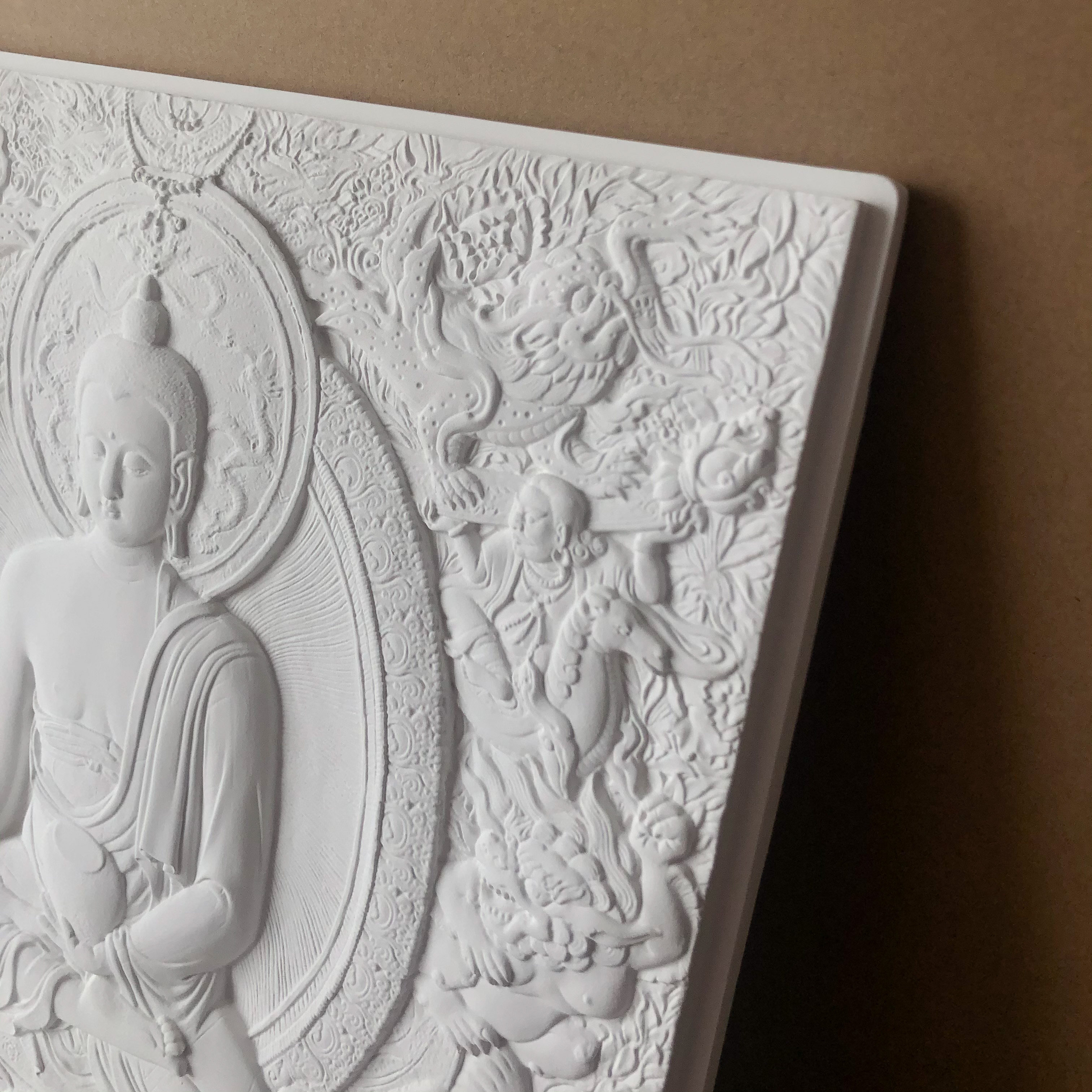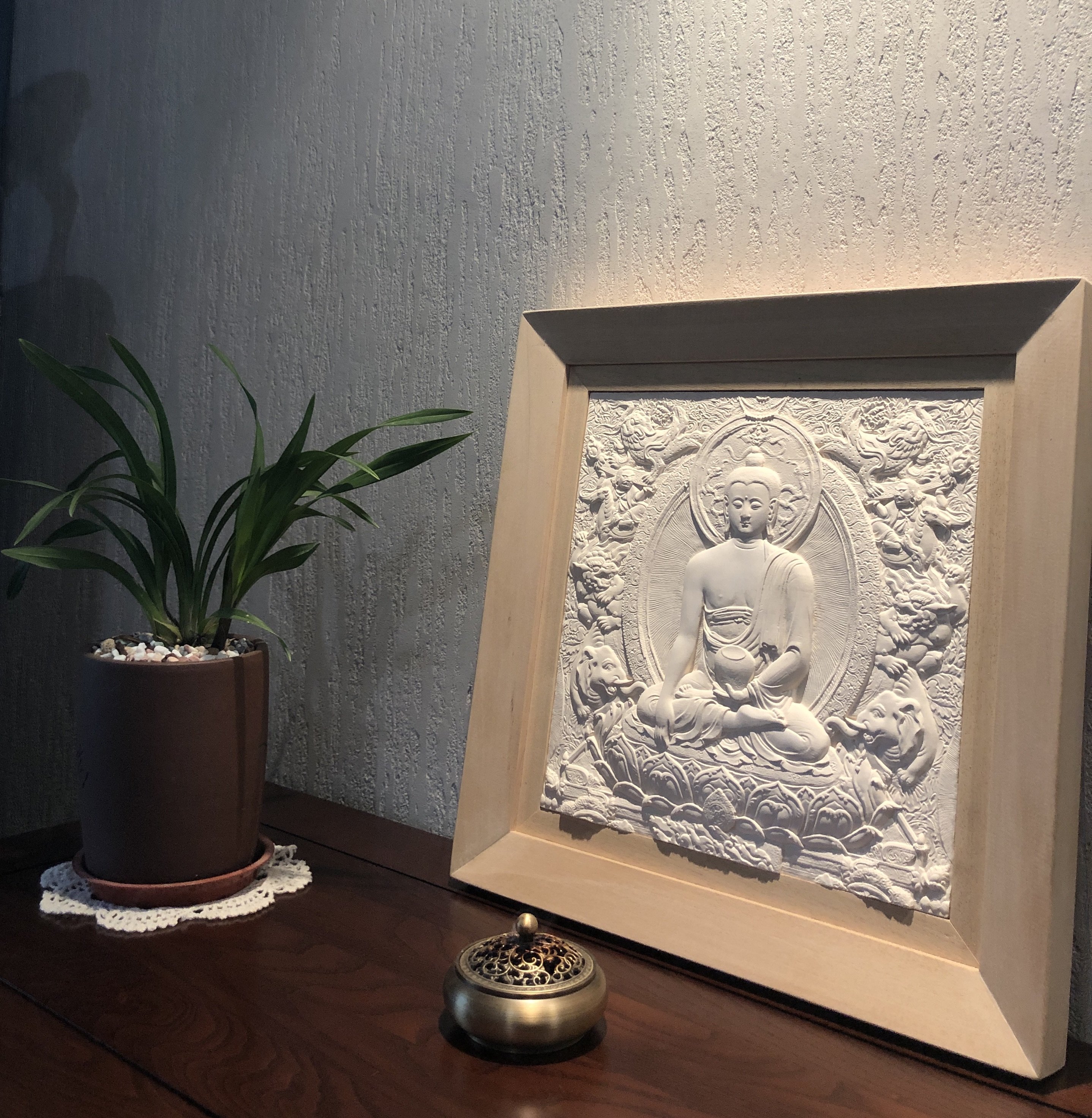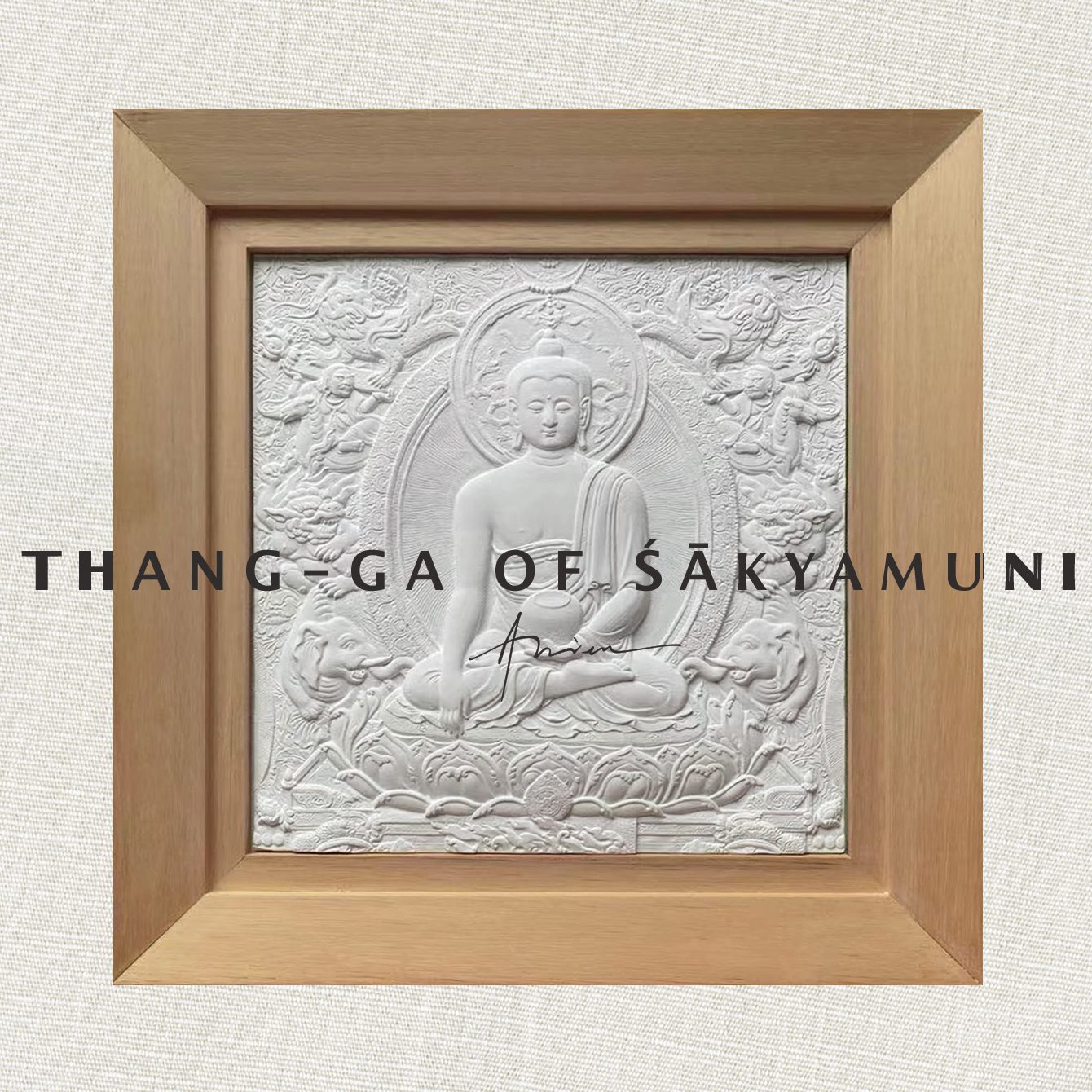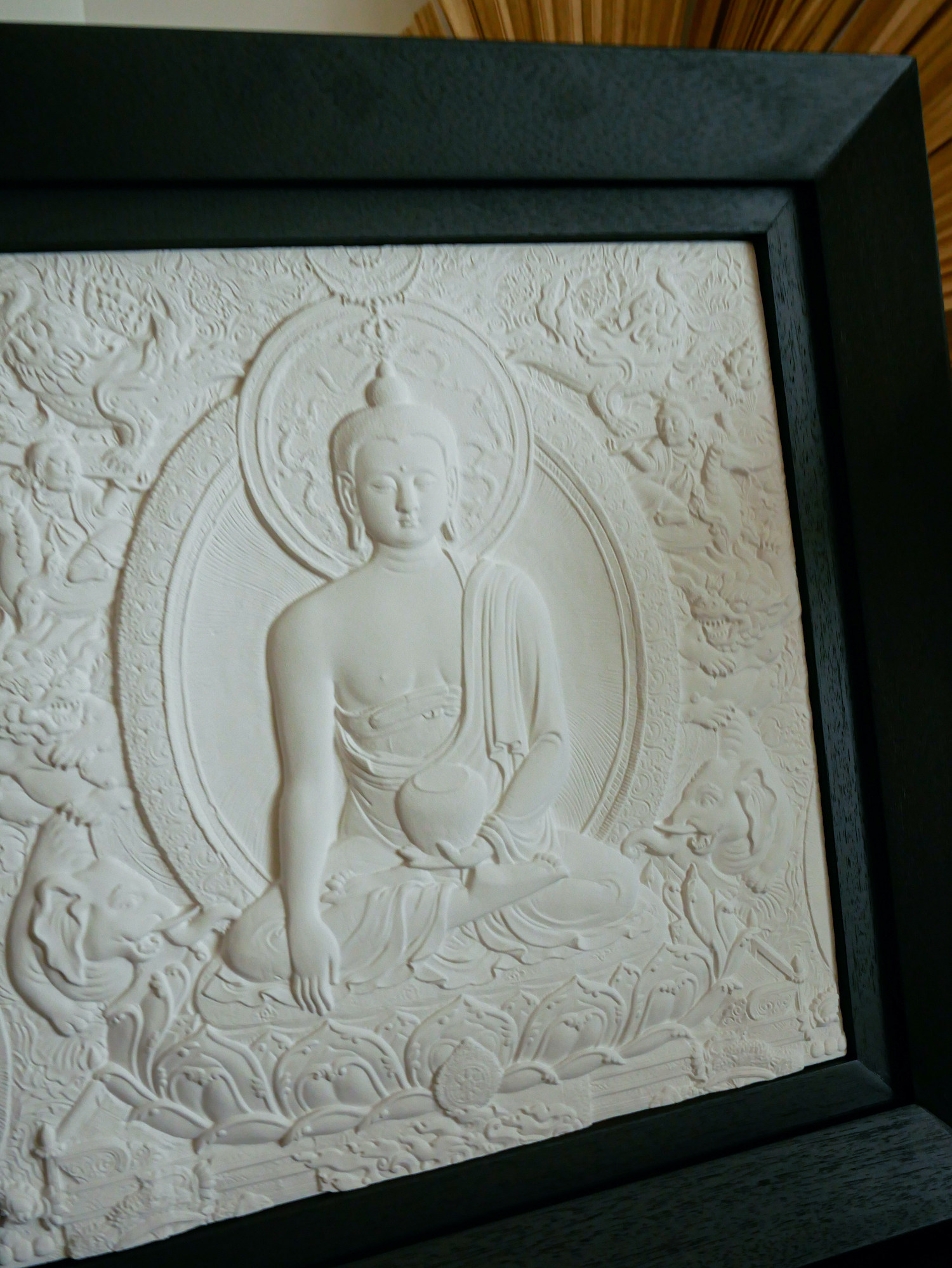 Патентный дизайн Ариэна 感 Статуя немой Восточной Будды Тэнгка Рельеф деревянная рама висящая картина (Шакьямуни Будда)