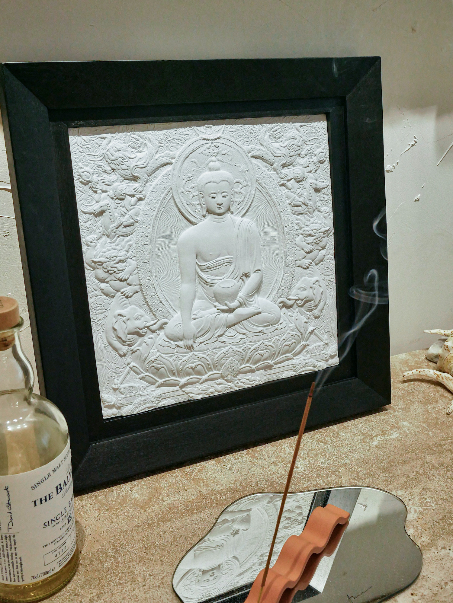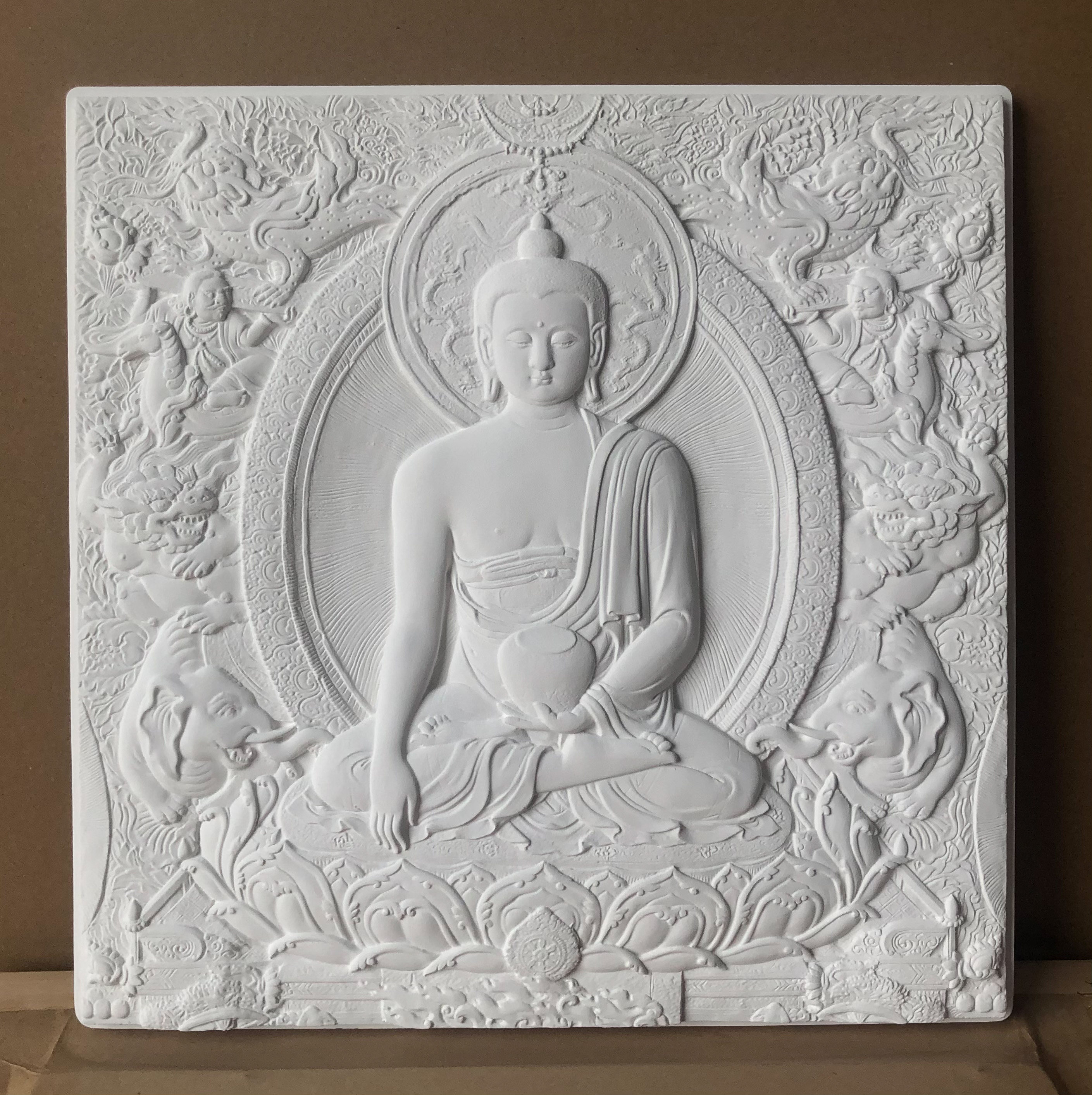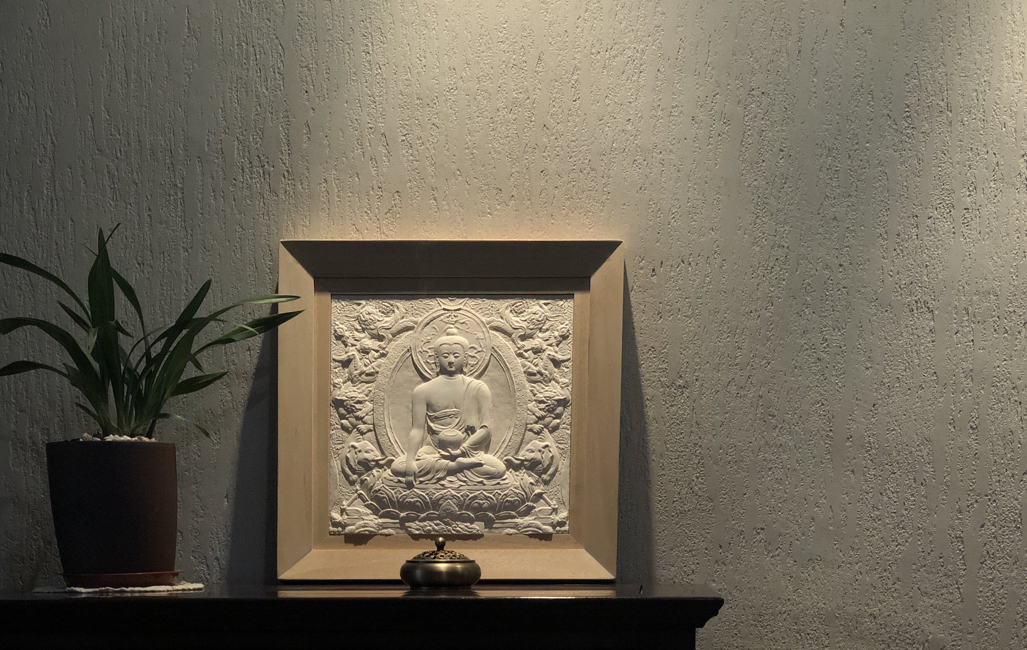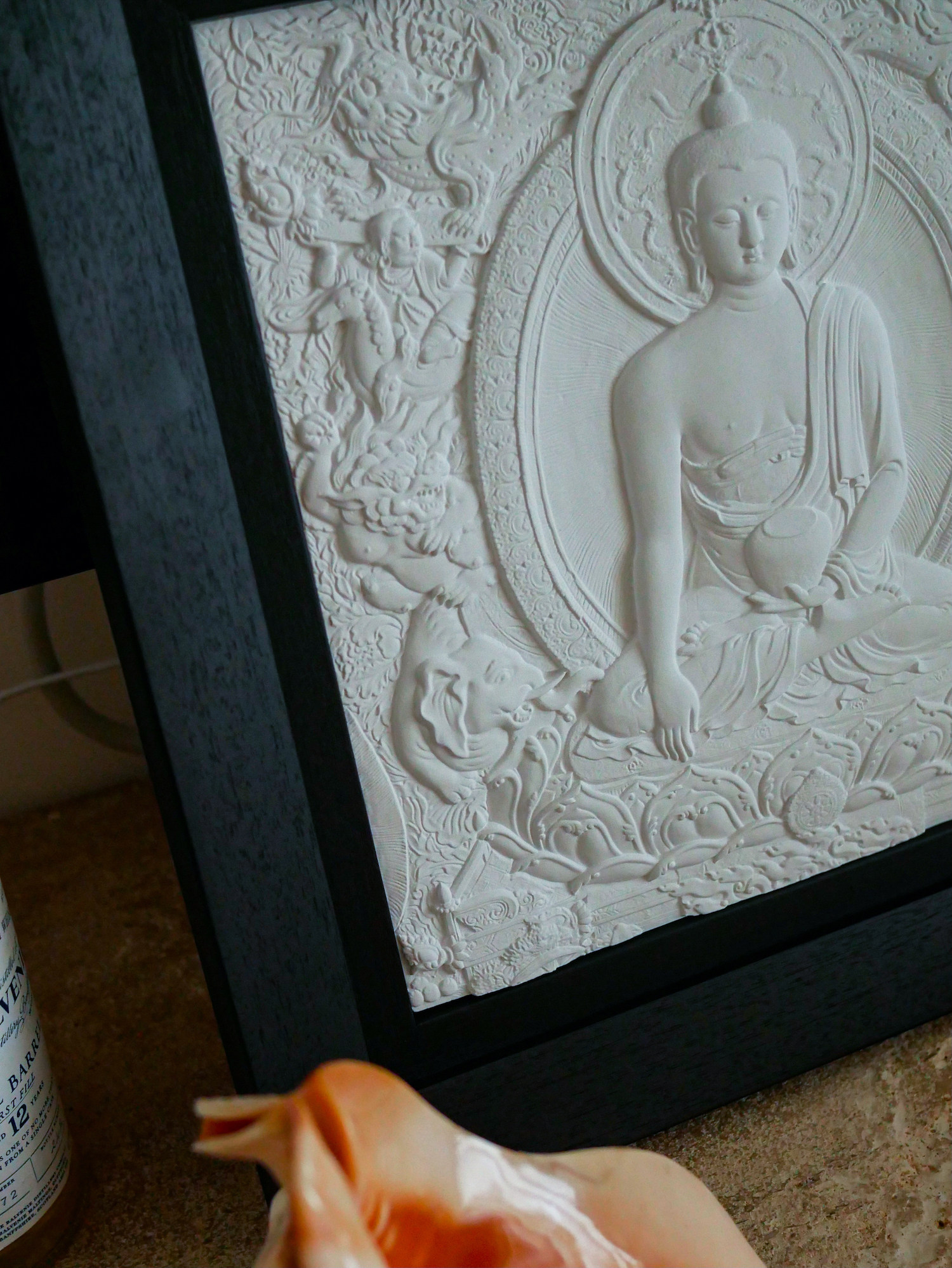 Патентный дизайн Ариэна 感 Статуя немой Восточной Будды Тэнгка Рельеф деревянная рама висящая картина (Шакьямуни Будда)