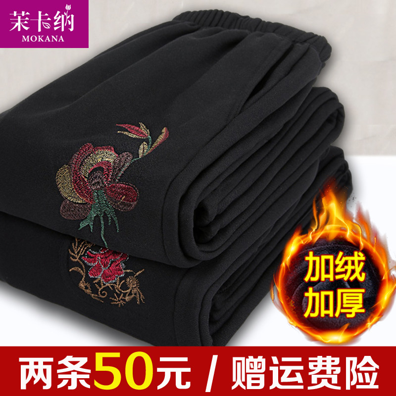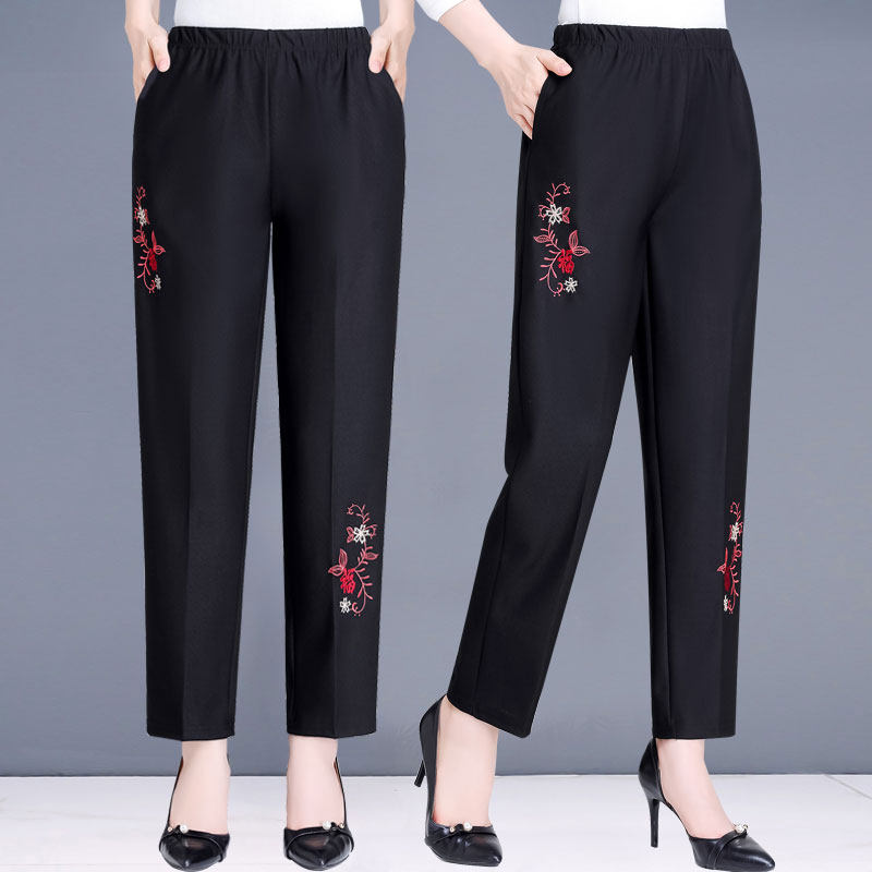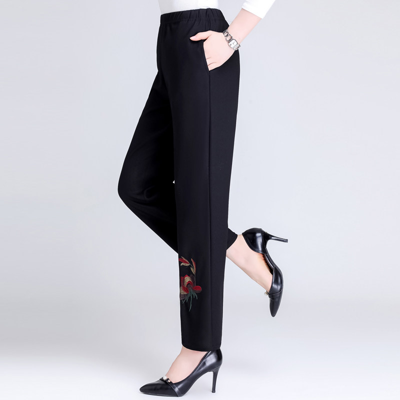 Демисезонные утепленные штаны для матери, для среднего возраста, высокая талия, свободный прямой крой