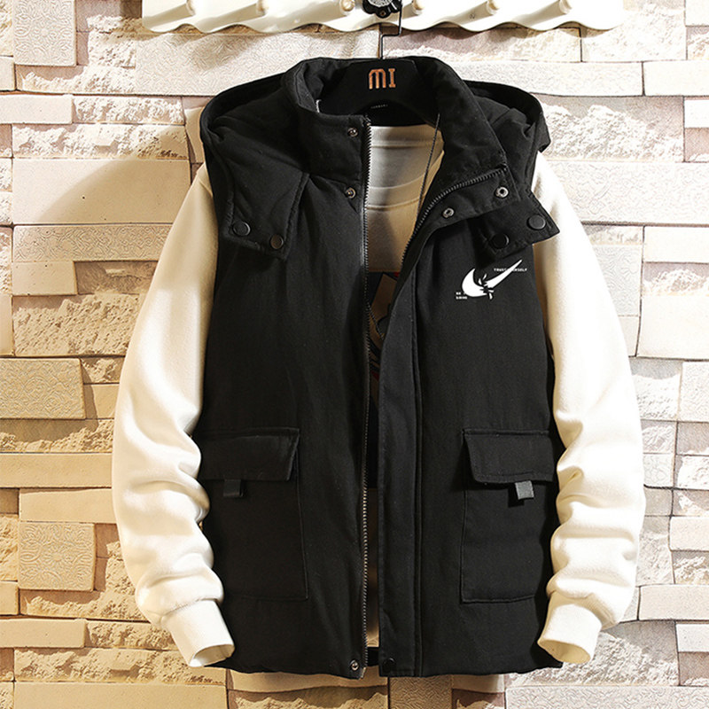 Мужской демисезонный жилет с пухом, трендовая удерживающая тепло толстовка с капюшоном, большой размер, свободный крой