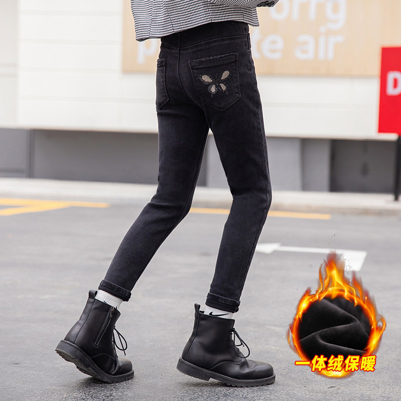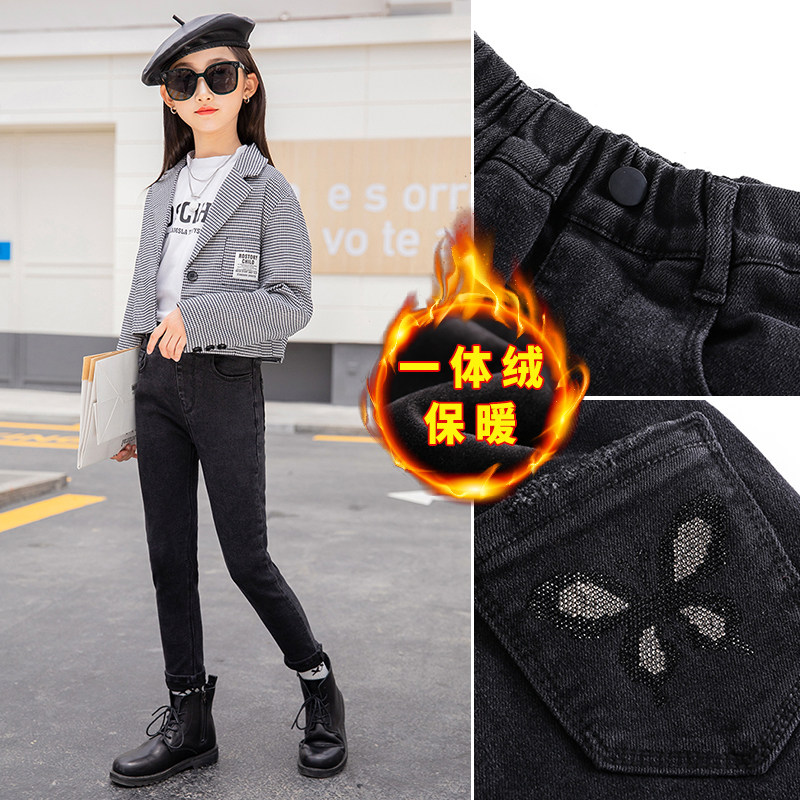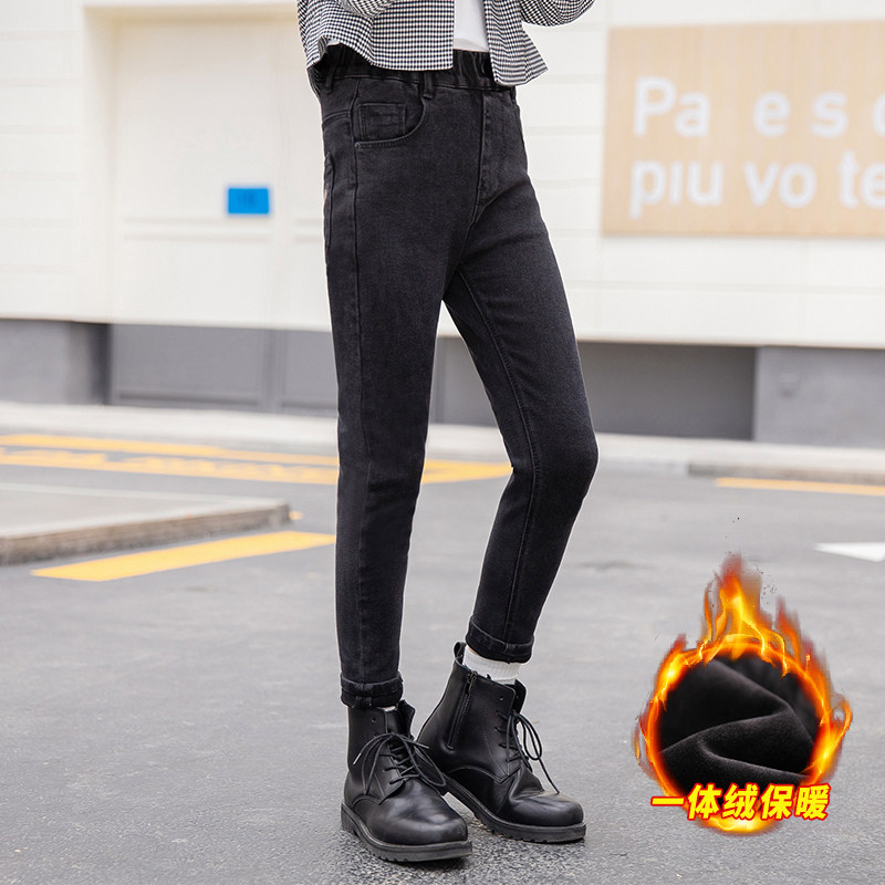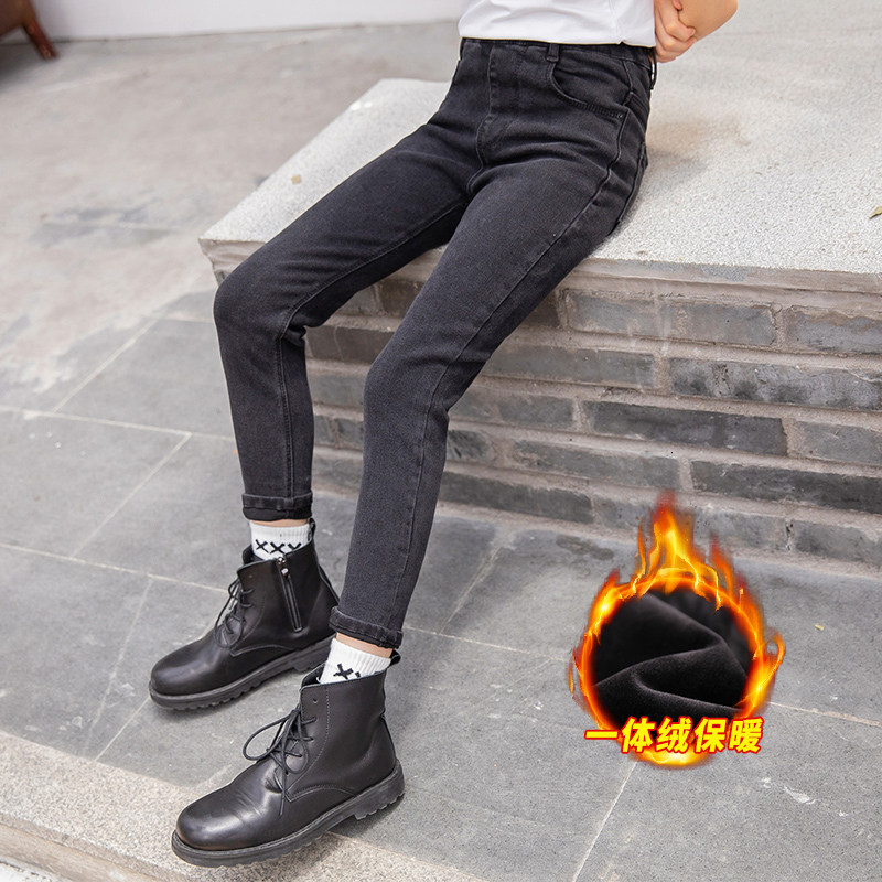 Демисезонный пуховик, детские штаны, удерживающие тепло джинсы с начесом, 2020, в западном стиле, подходит для подростков
