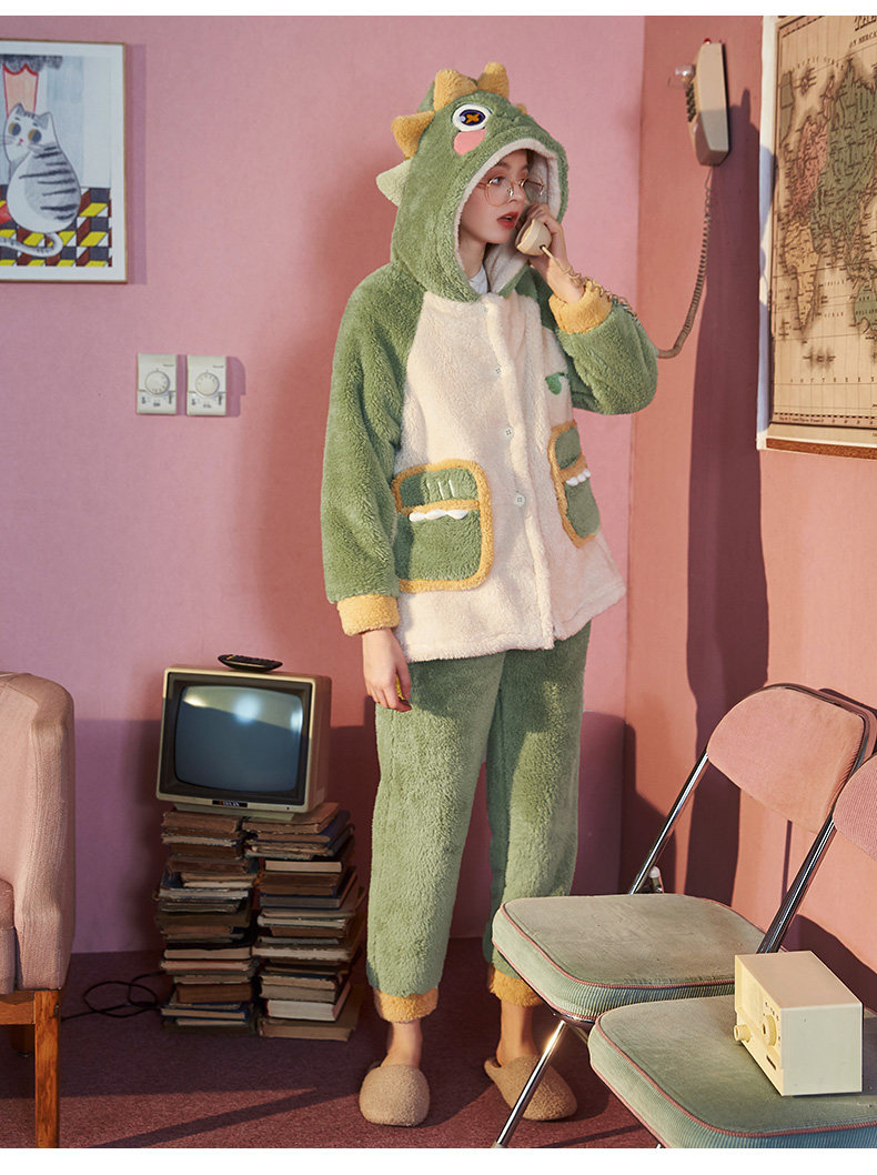 Gukoo/果壳 Демисезонная коралловая пижама, мультяшный бархатный комплект