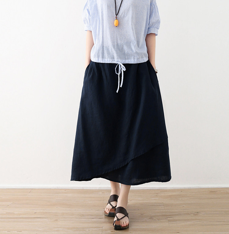 Весенняя оригинальная дизайнерская свежая асимметричная юбка, тренд сезона, оверсайз, большой размер, из хлопка и льна