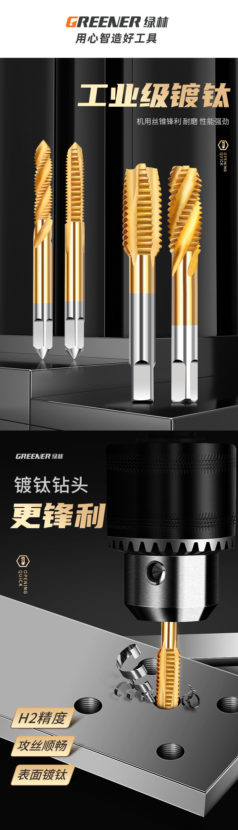 Зеленое лесное винт, буриль буриль бит, проводная проволочная машина. Тяжелая стучащая спираль из нержавеющей стали 58m6 Специальный верхний титан 12