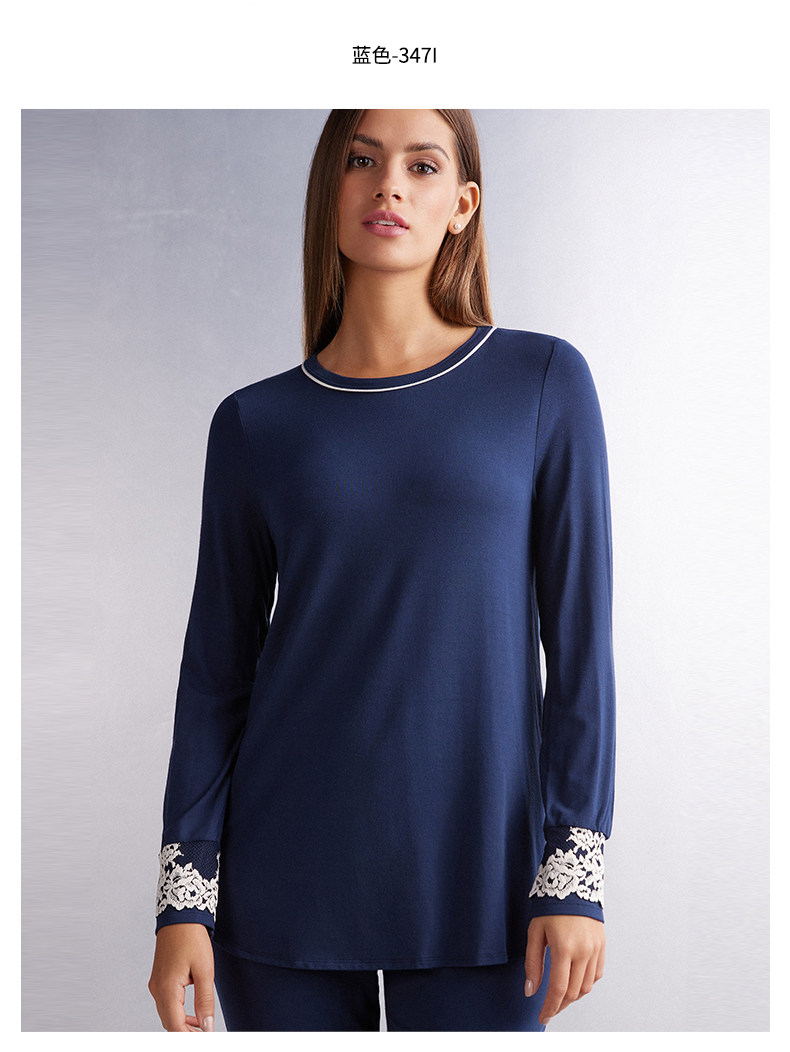 Intimissimi женская мода с цветочным принтом и круглым вырезом, контрастная базовая простая рубашка с длинными рукавами CL1294P