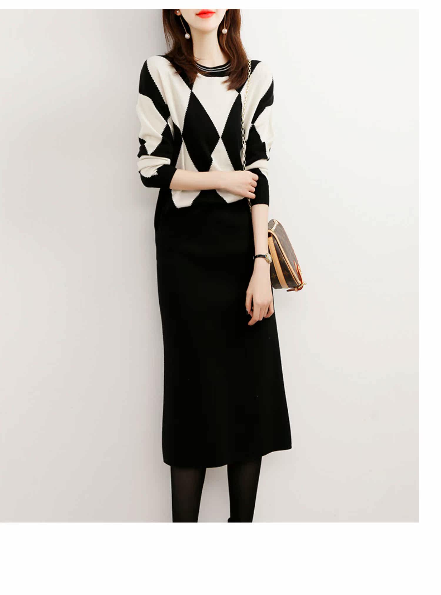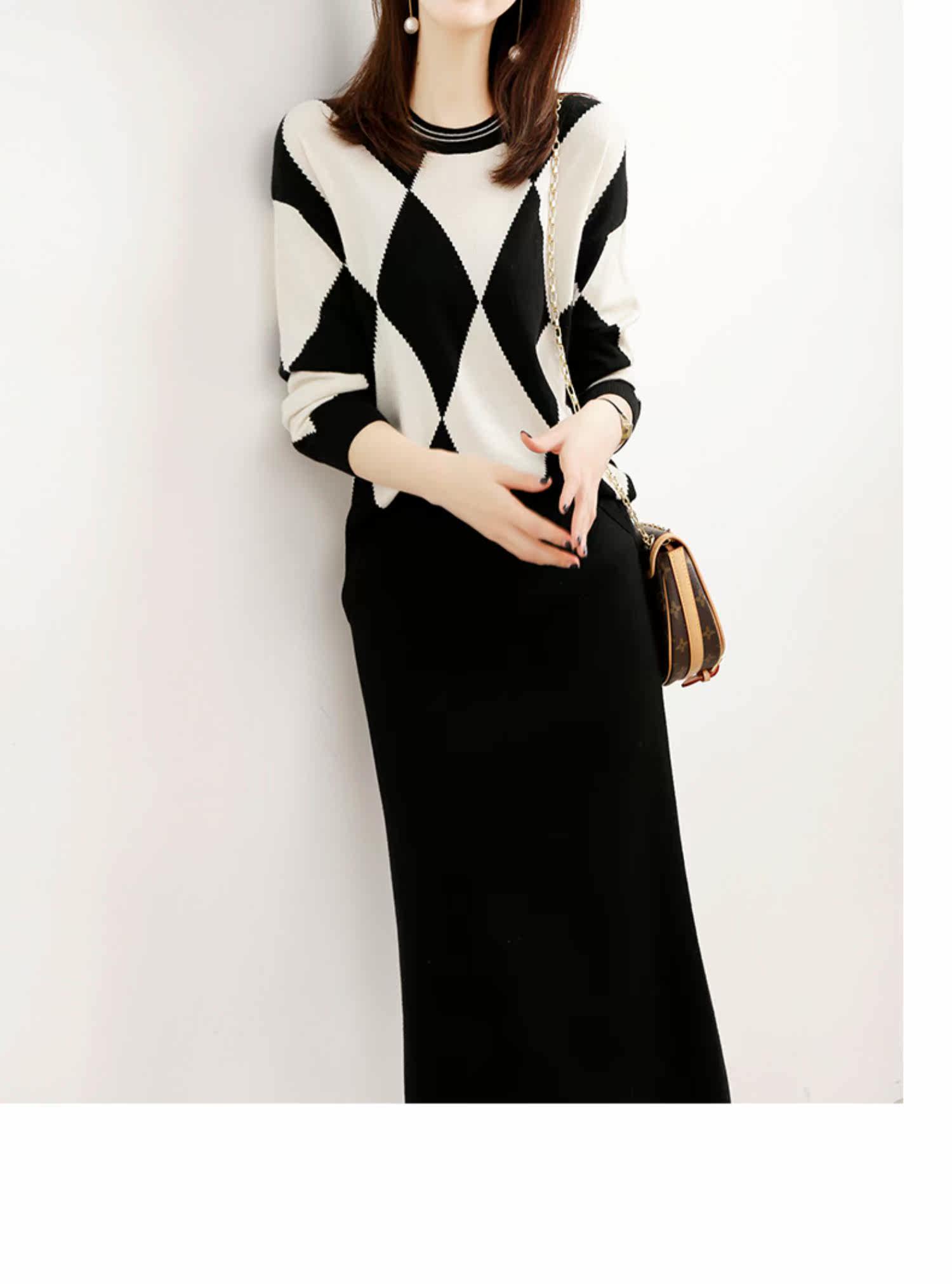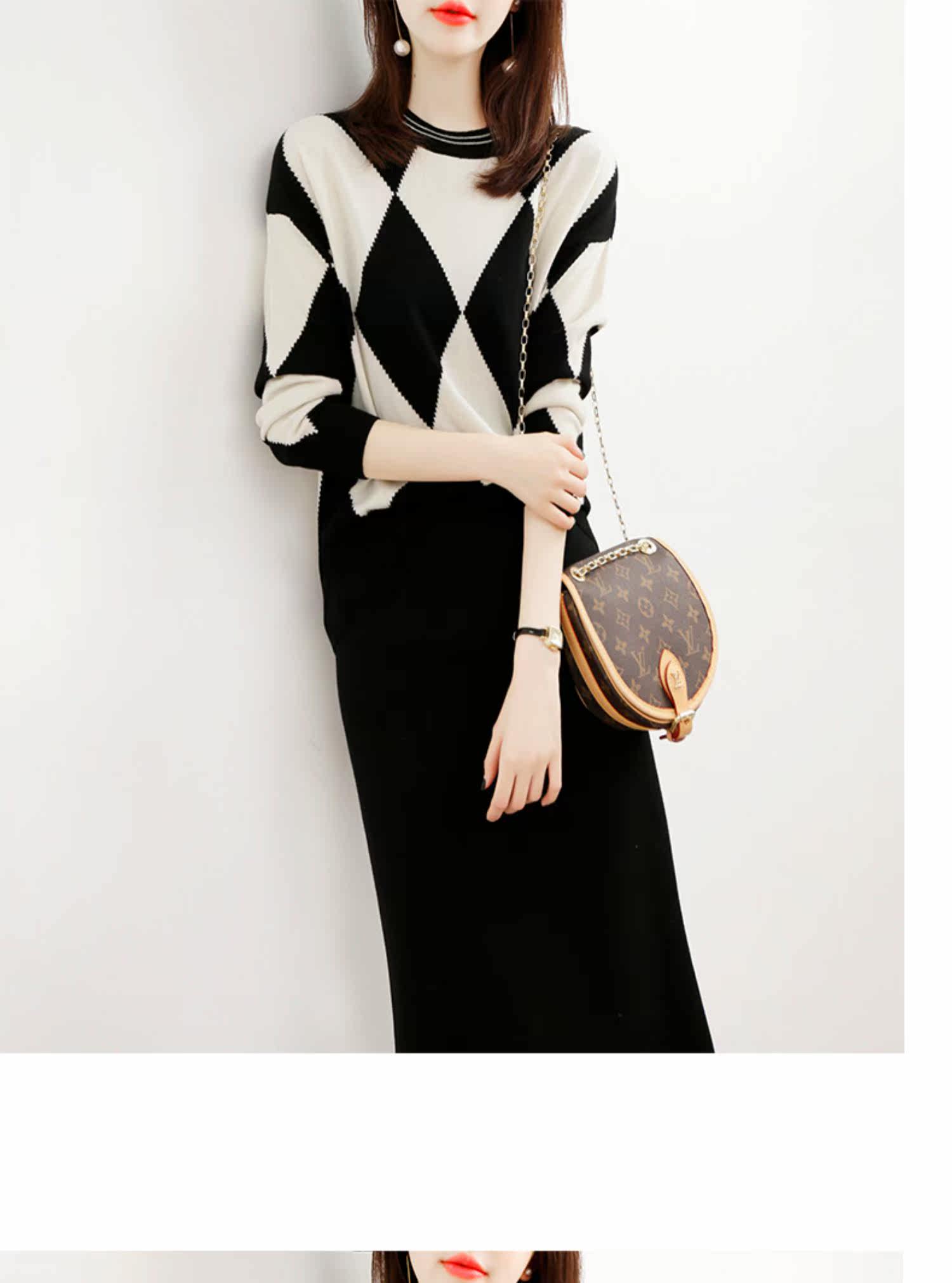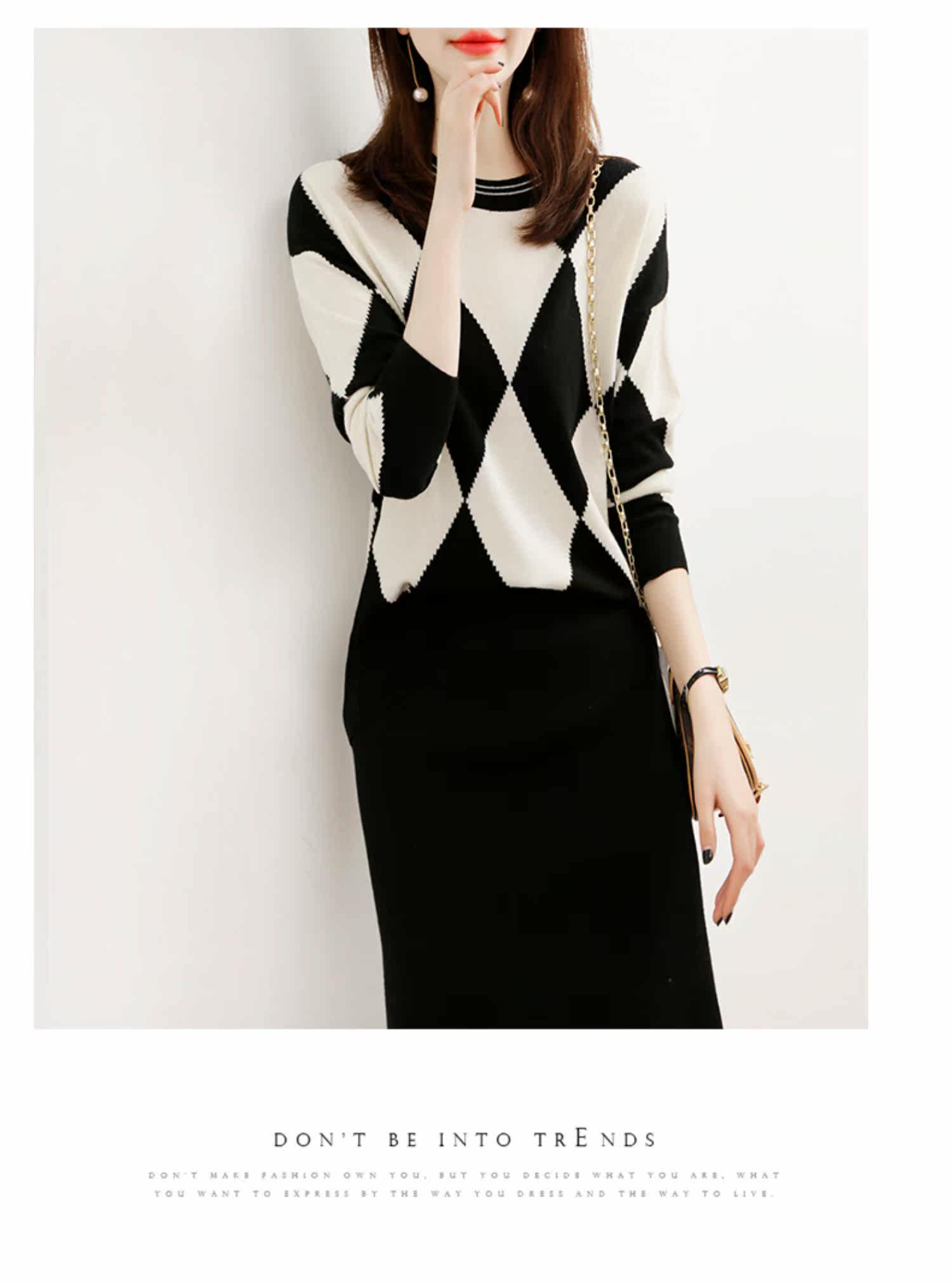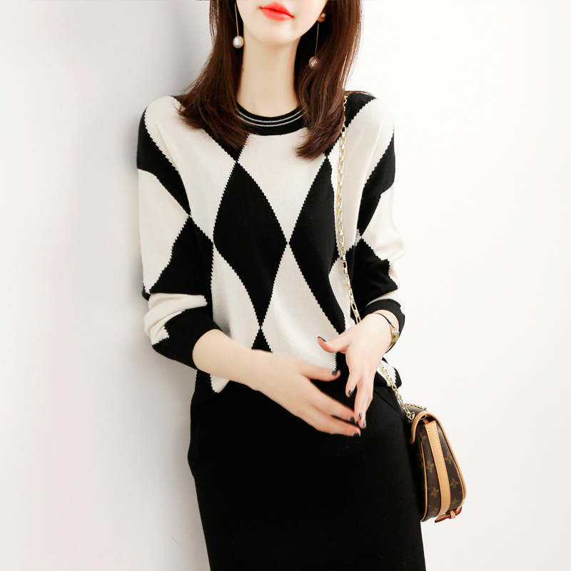 Демисезонный шерстяной трикотажный свитер с ромбовидным узором с круглым воротником, 2021 года, оверсайз