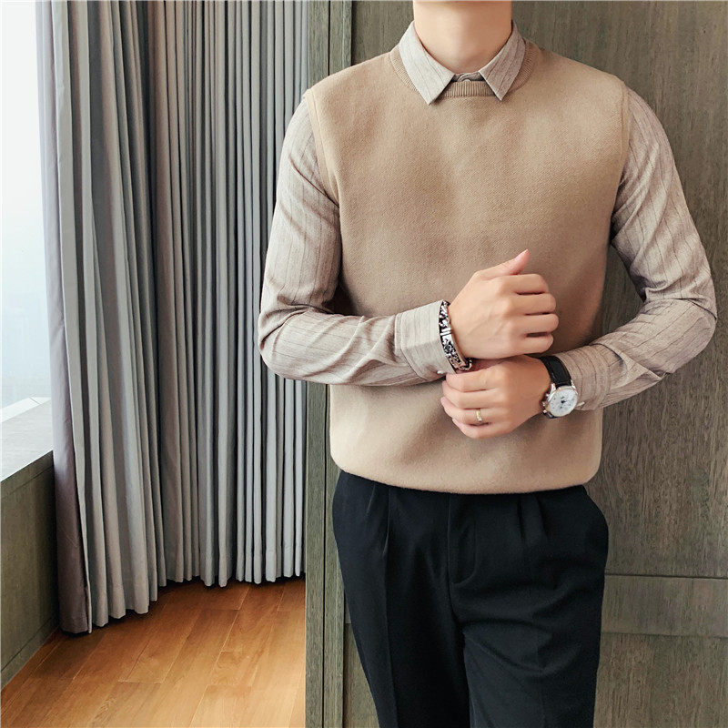 Осенний комплект, трендовый свитер, базовая приятная телу трикотажная рубашка, в корейском стиле, облегающий крой, высокий воротник
