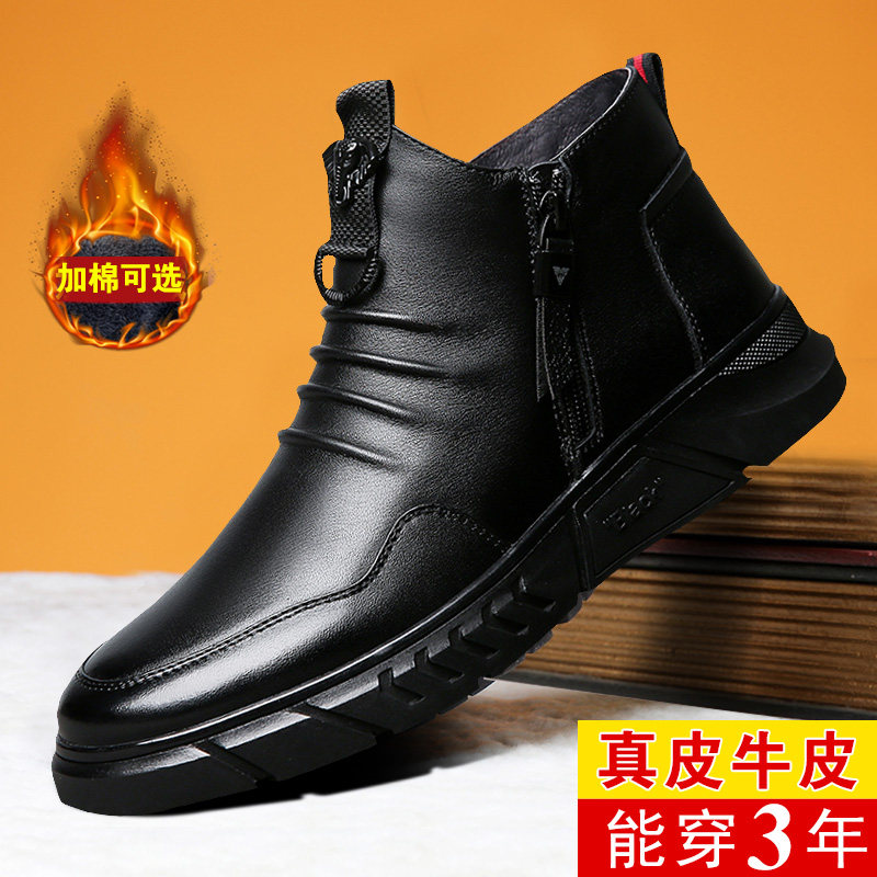 Сапоги «мартенки» мужские высокие весенние бархатные мужские повседневные кожаные туфли из натуральной кожи утепленные теплые хлопковые туфли мужская универсальная модная обувь