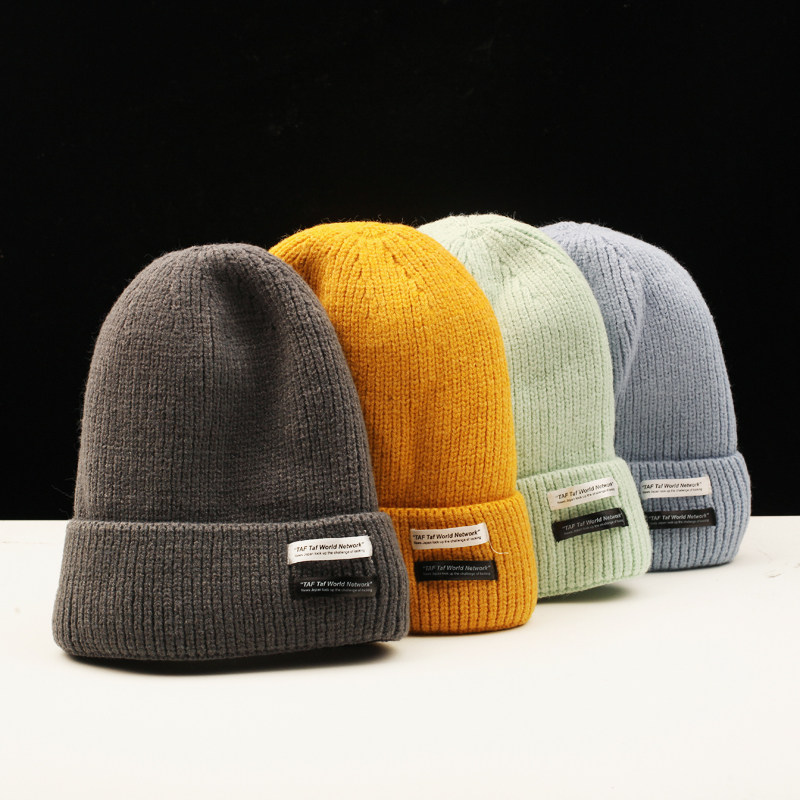 Трикотажная шерстяная демисезонная шапка, милый шерстяной японский удерживающий тепло пластырь, в корейском стиле