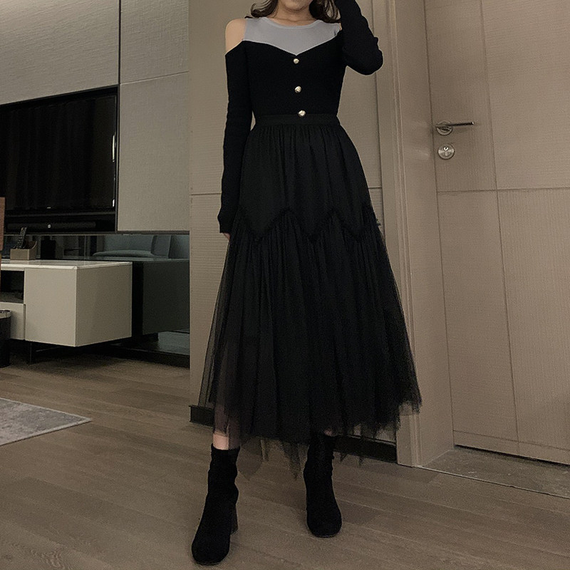 Черная цветная приталенная демисезонная длинная юбка, средней длины, оверсайз, юбка-пачка