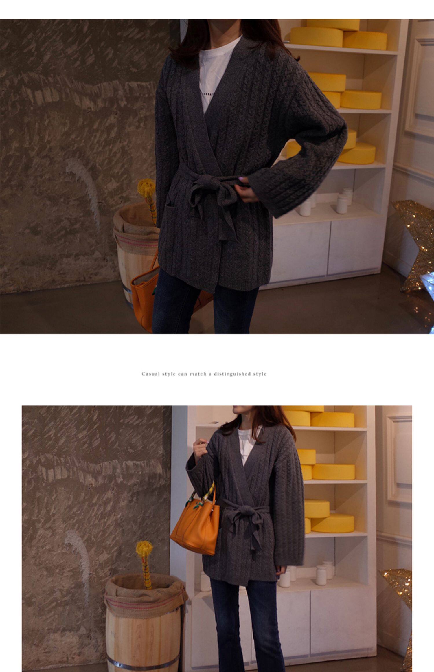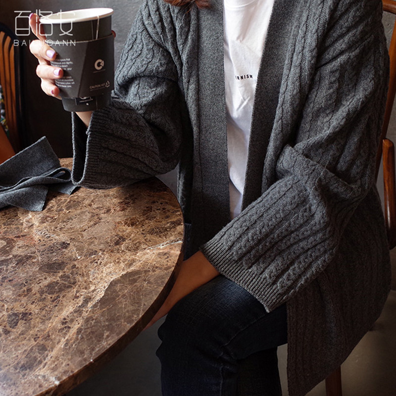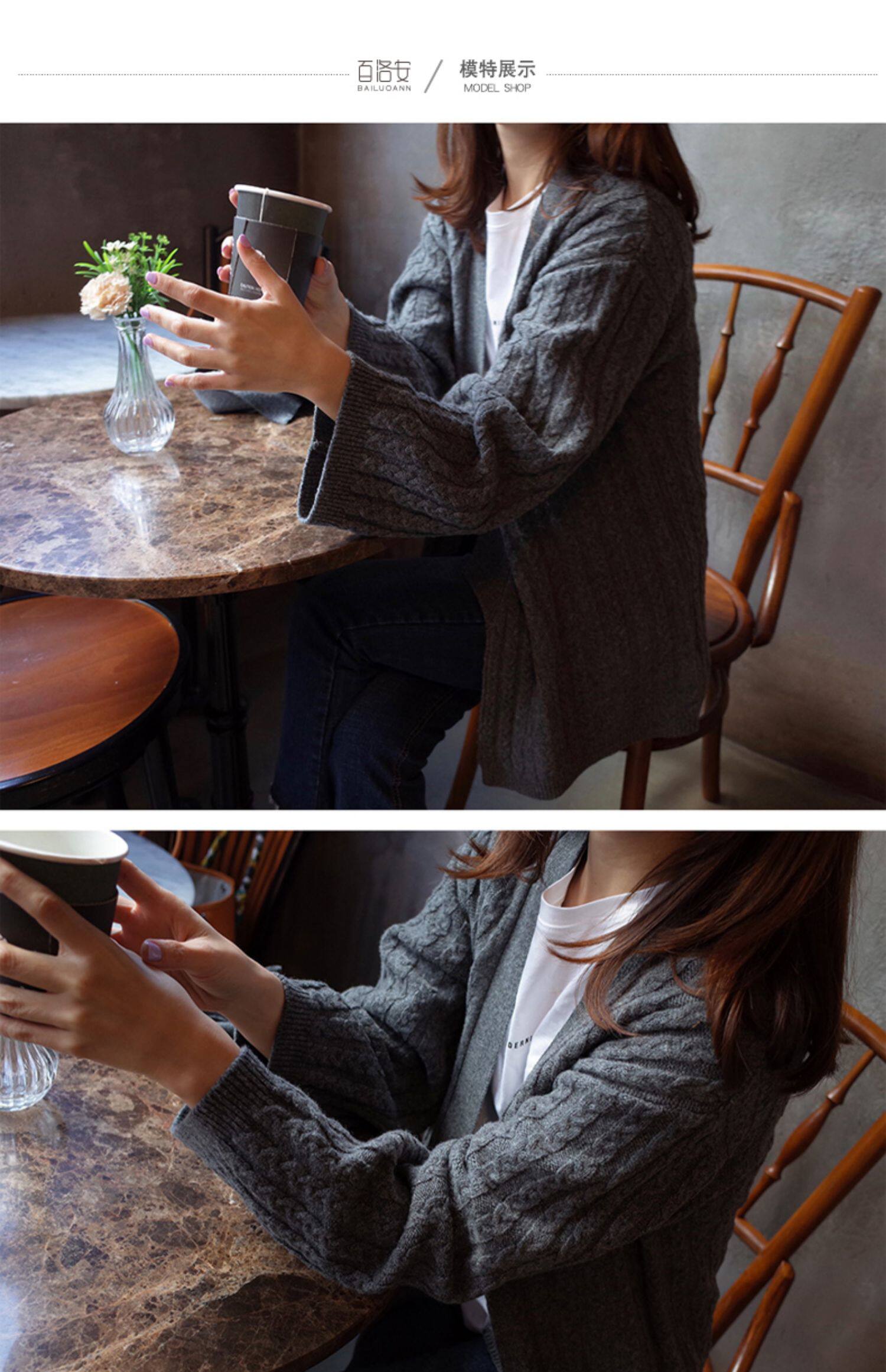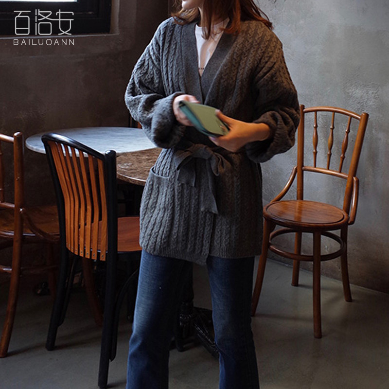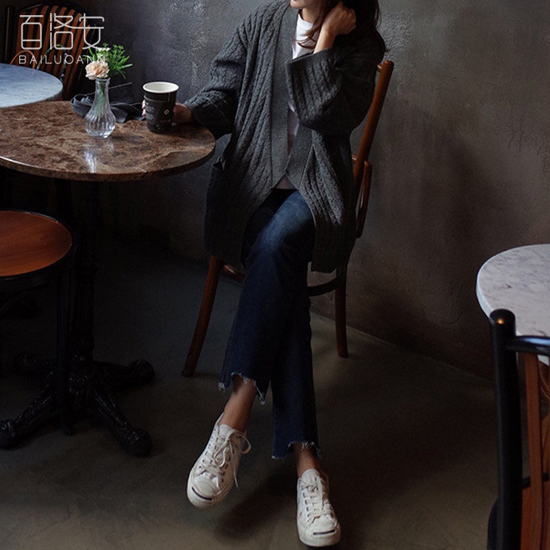 百洛安 Осенний свитер, осенняя куртка, трикотажный кардиган, свободный крой, в корейском стиле, яркий броский стиль
