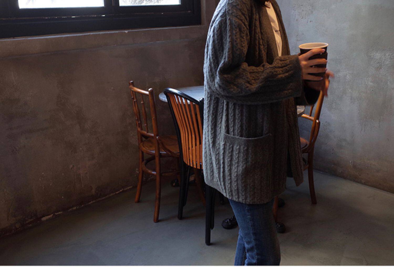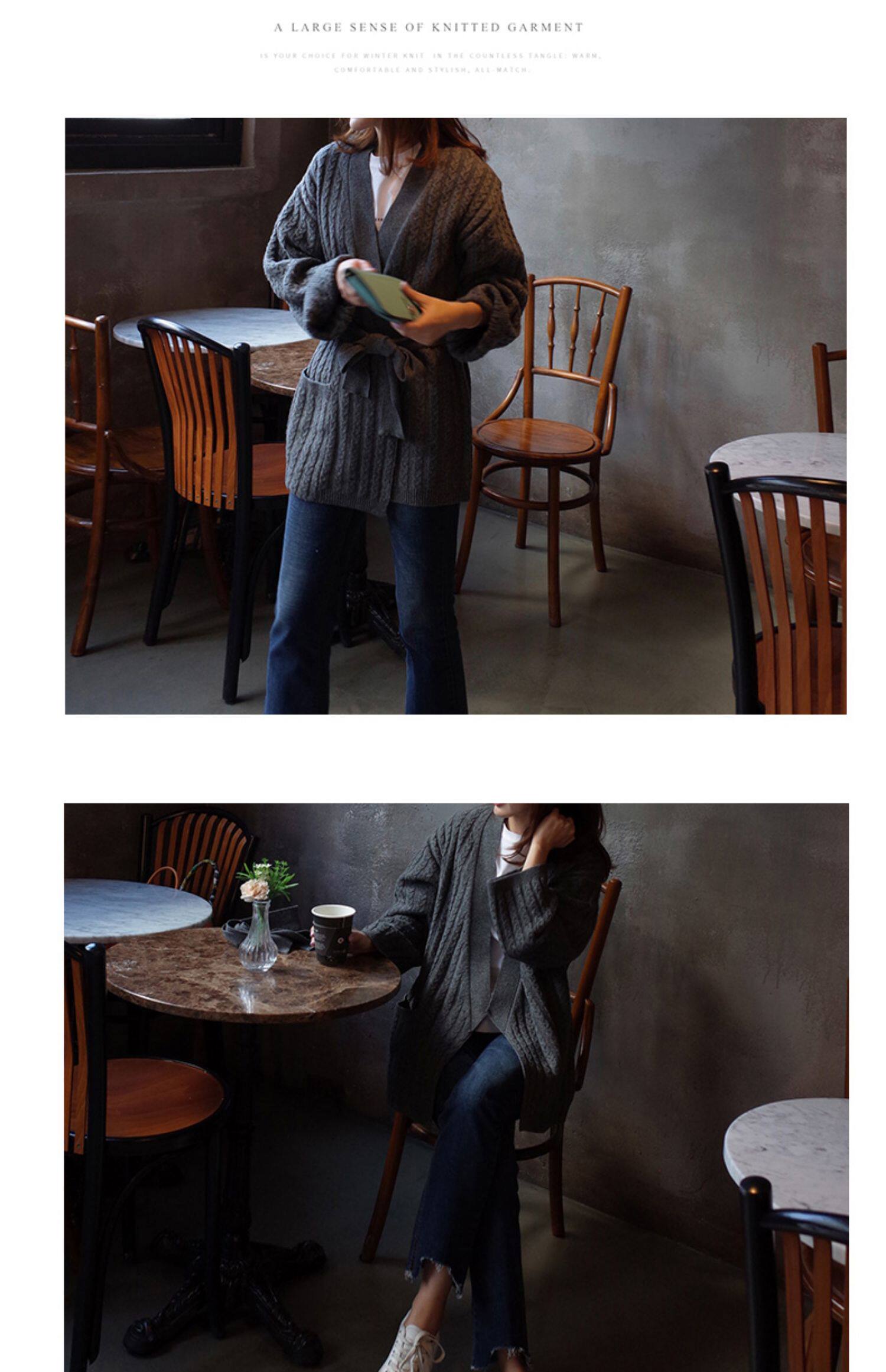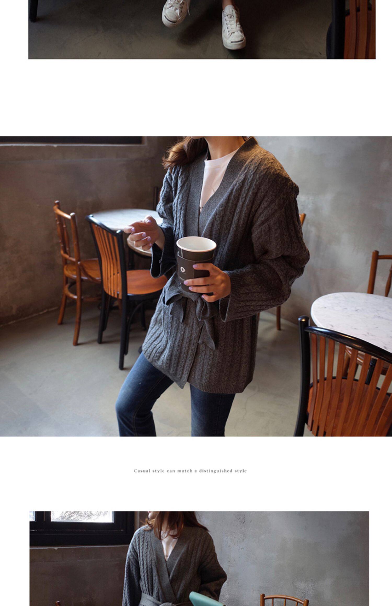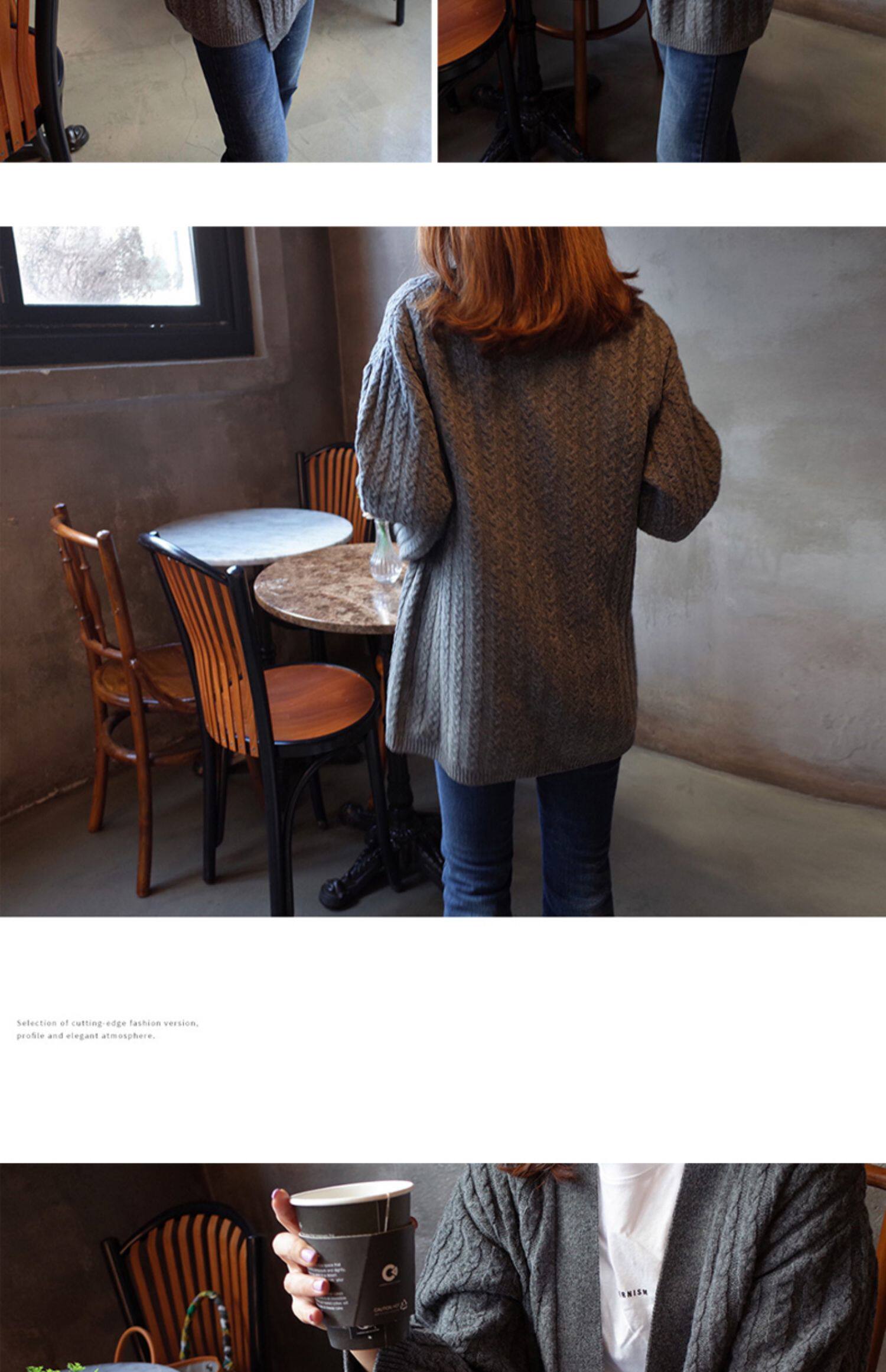 百洛安 Осенний свитер, осенняя куртка, трикотажный кардиган, свободный крой, в корейском стиле, яркий броский стиль