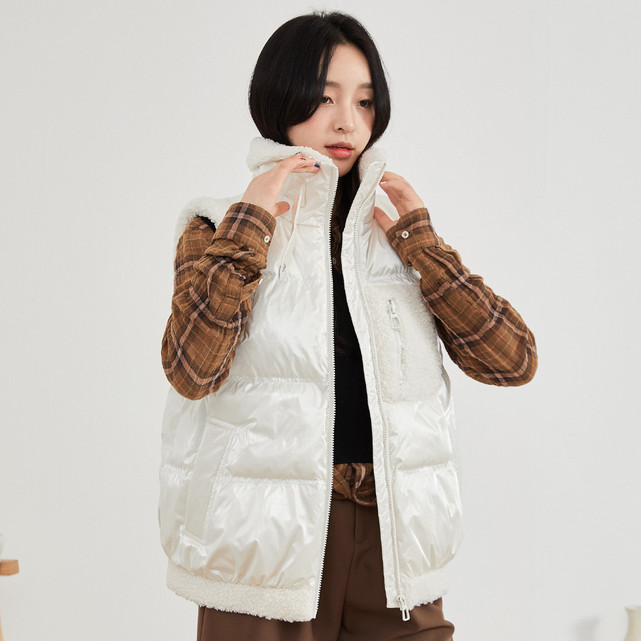 Демисезонный бархатный глянцевый модный жилет с пухом, 2021 года, материал