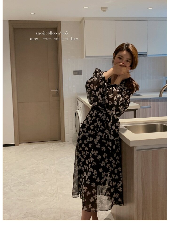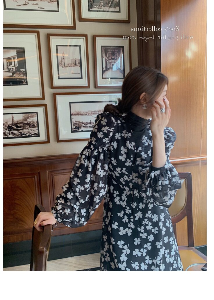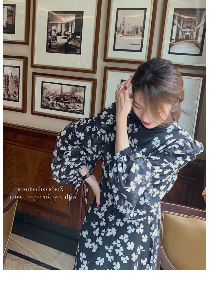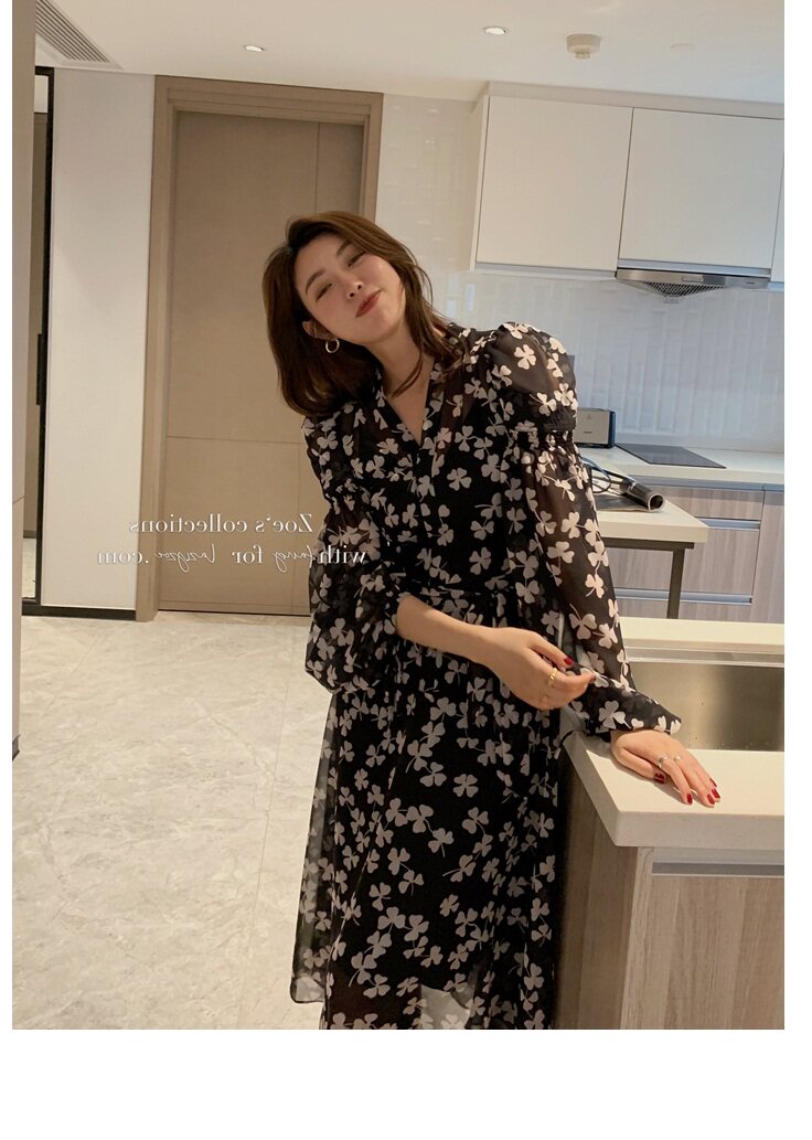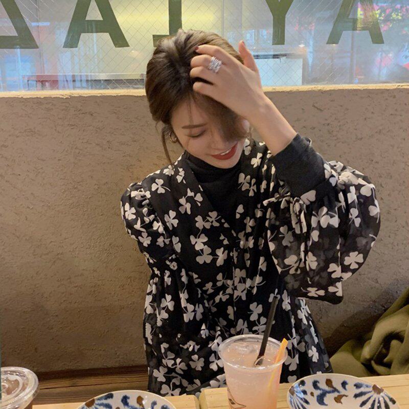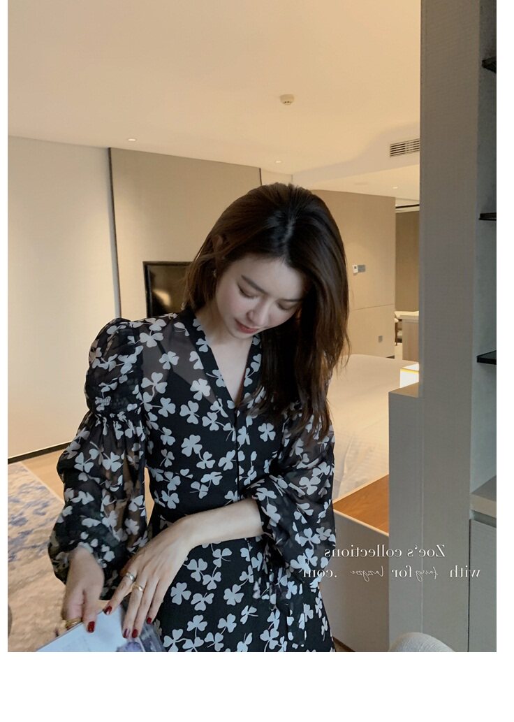 Элитное черное демисезонное платье, приталенная юбка, французский стиль, подходит для подростков, в цветочек