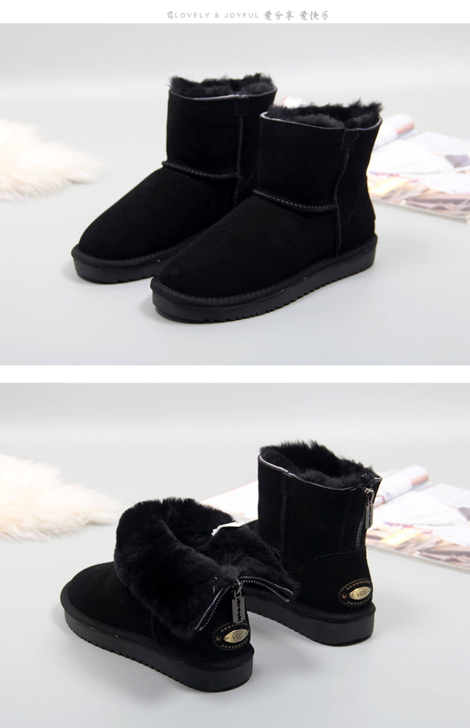 Зимние утепленные короткие сапоги с молнией для влюбленных, средней длины, из натуральной кожи