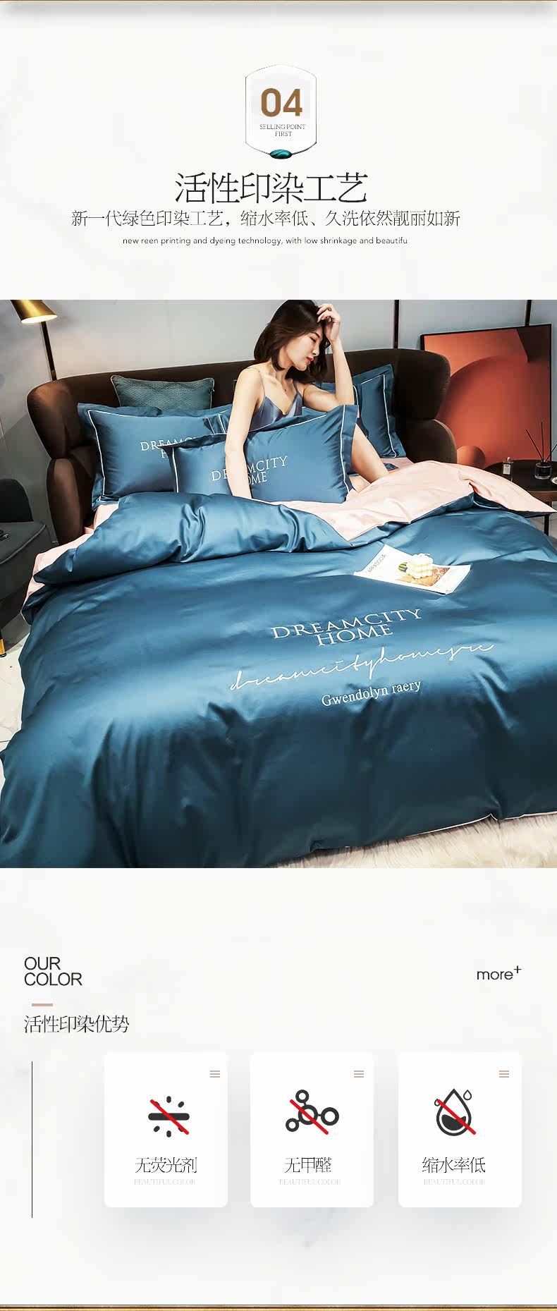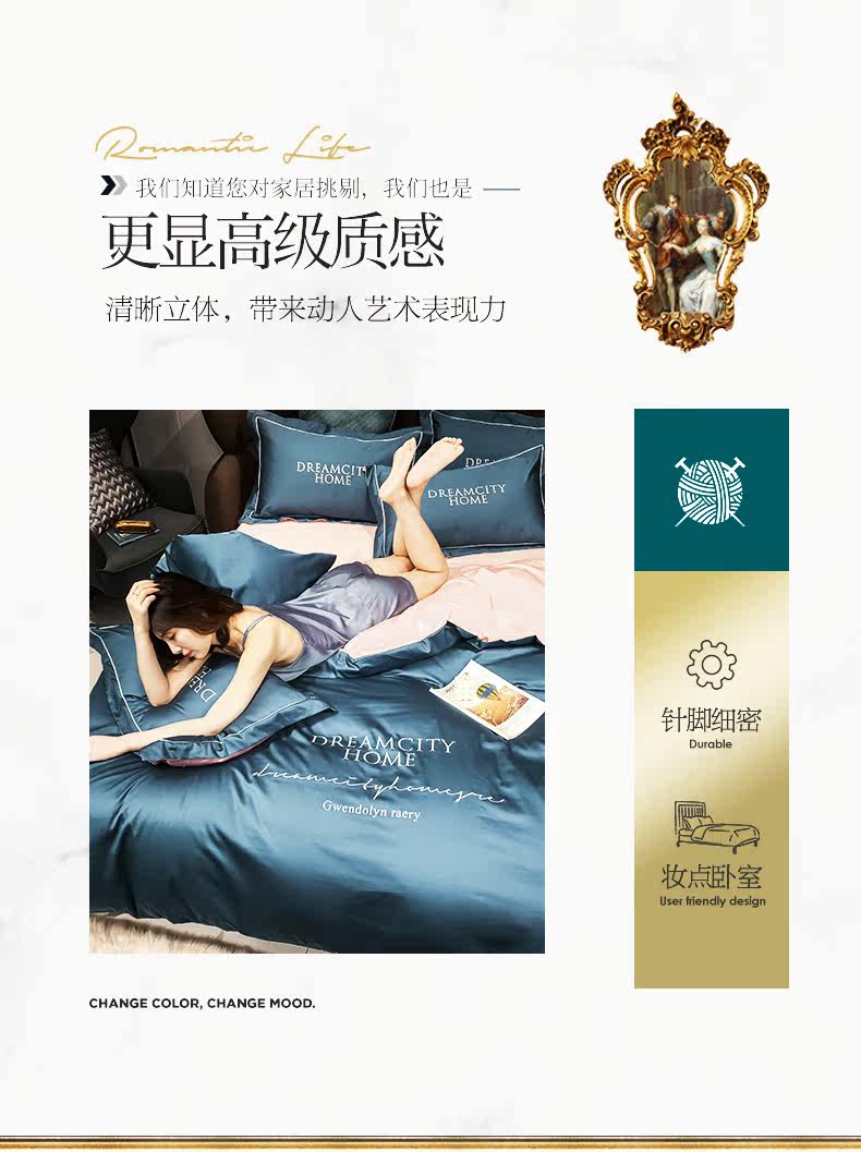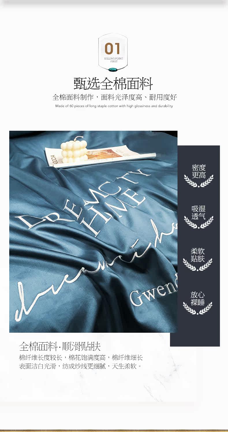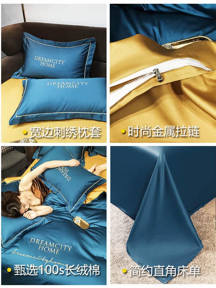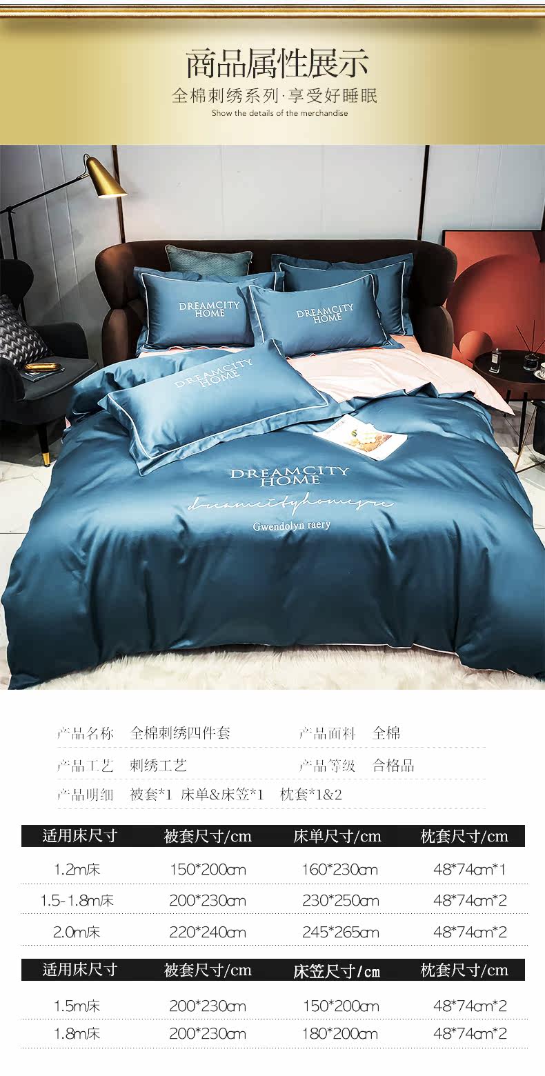坤诗兰 Хлопковый комплект, простыня, пододеяльник, покрывало для отеля, 4 предмета, простой и элегантный дизайн, европейский стиль