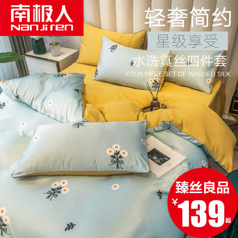 南极人 Шелковый комплект, шелковистое покрывало, летняя шелковая простыня, пододеяльник, европейский стиль, 4 предмета
