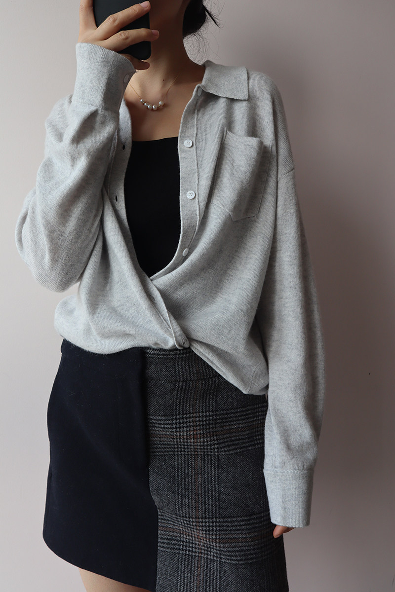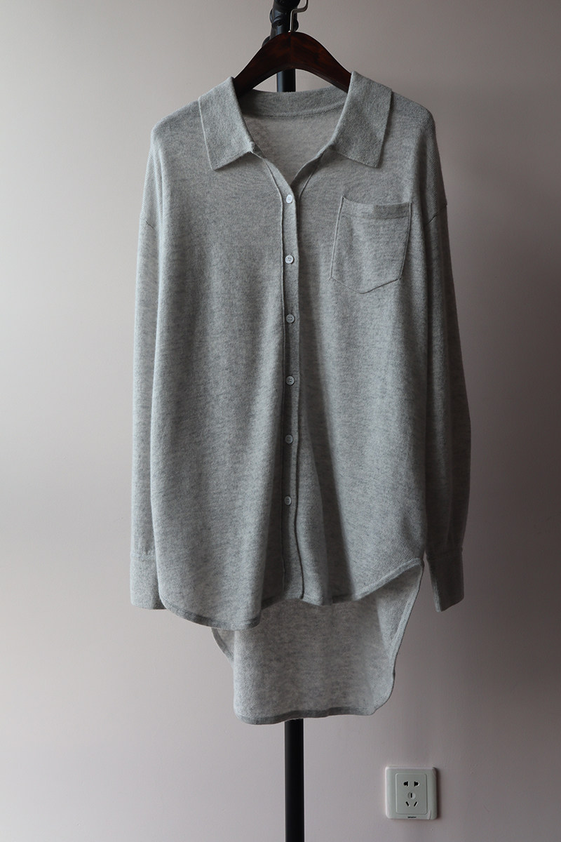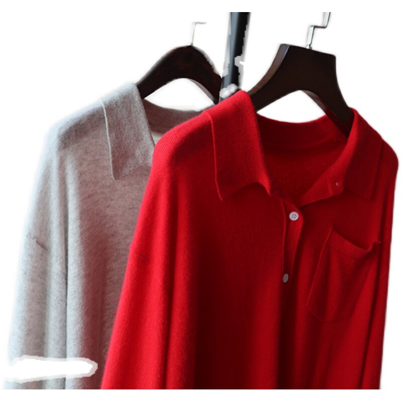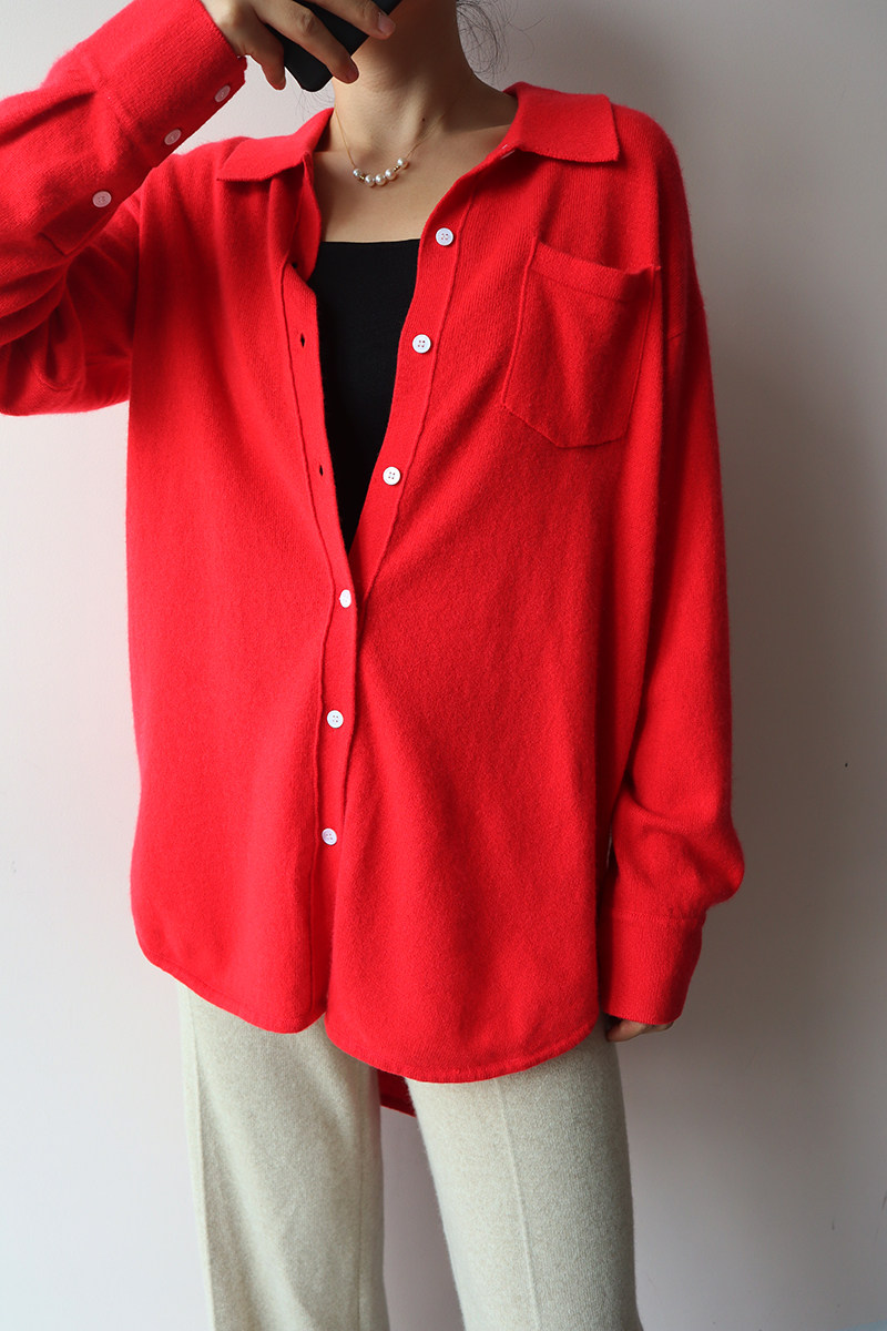 Кашемировая трикотажная рубашка, свитер, кардиган, французский стиль, 2 цветов