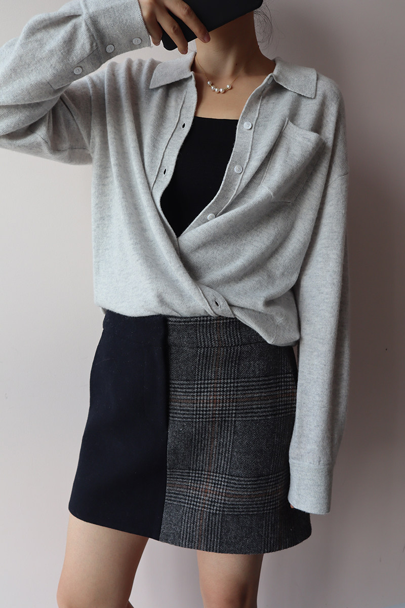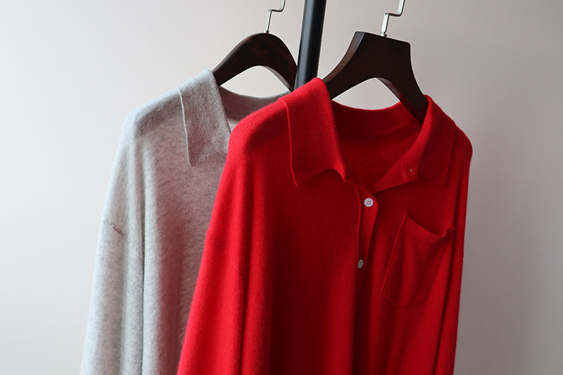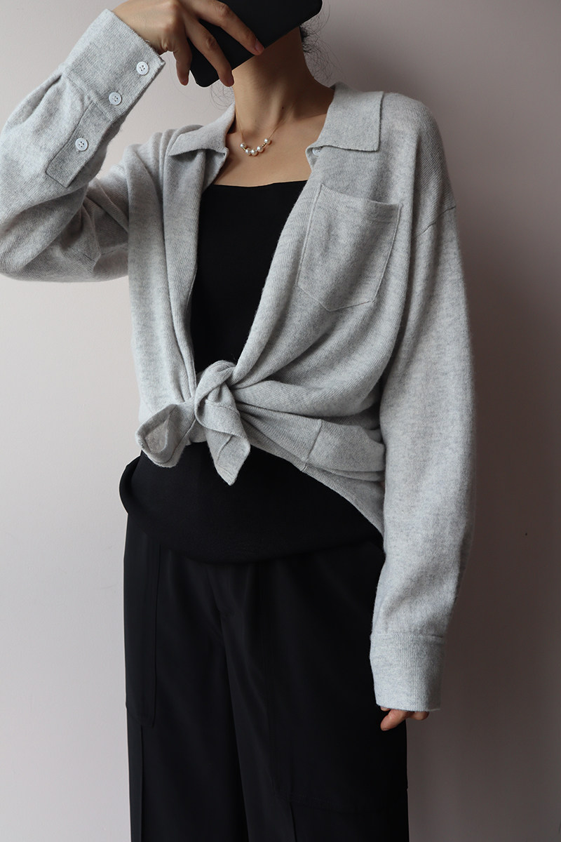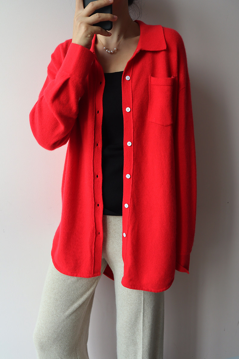 Кашемировая трикотажная рубашка, свитер, кардиган, французский стиль, 2 цветов