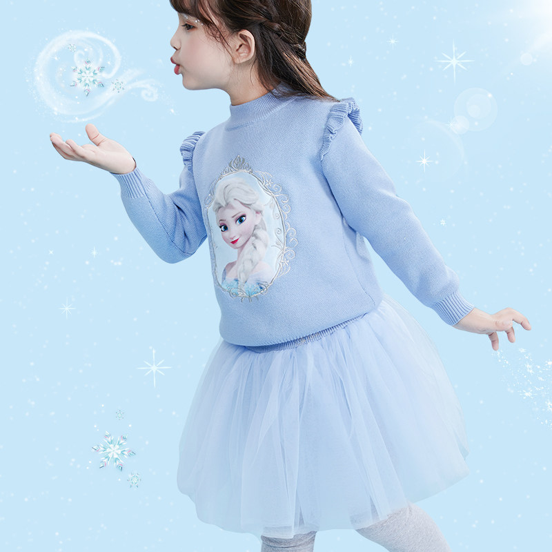 Детский комплект, утепленный свитер, демисезонная юбка, «Холодное сердце», популярно в интернете, в западном стиле, детская одежда