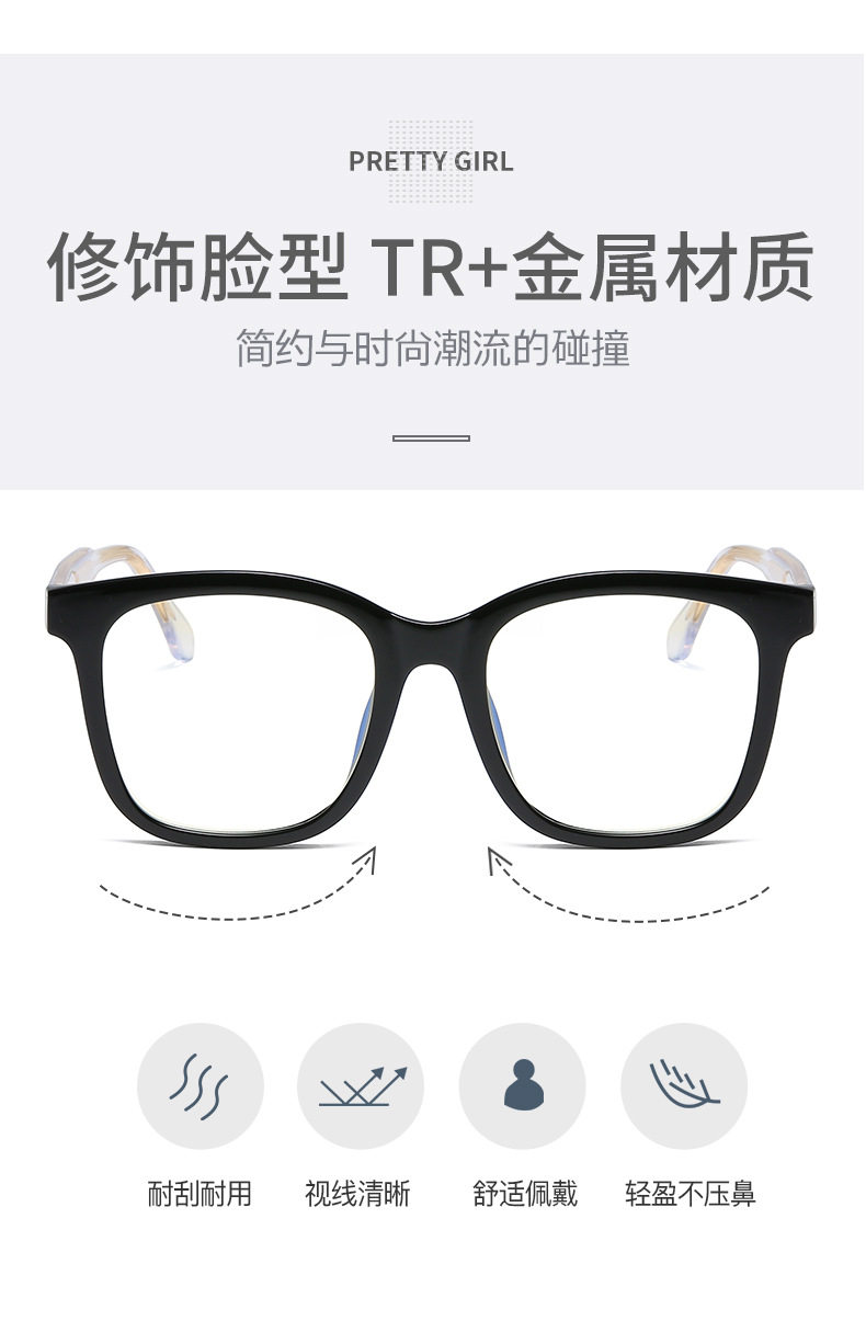 Черная толстая оправа, простые квадратные анти-синие легкие очки в большой оправе, плоское зеркало, женские очки для похудения, близорукость, студенческие очки с круглым лицом