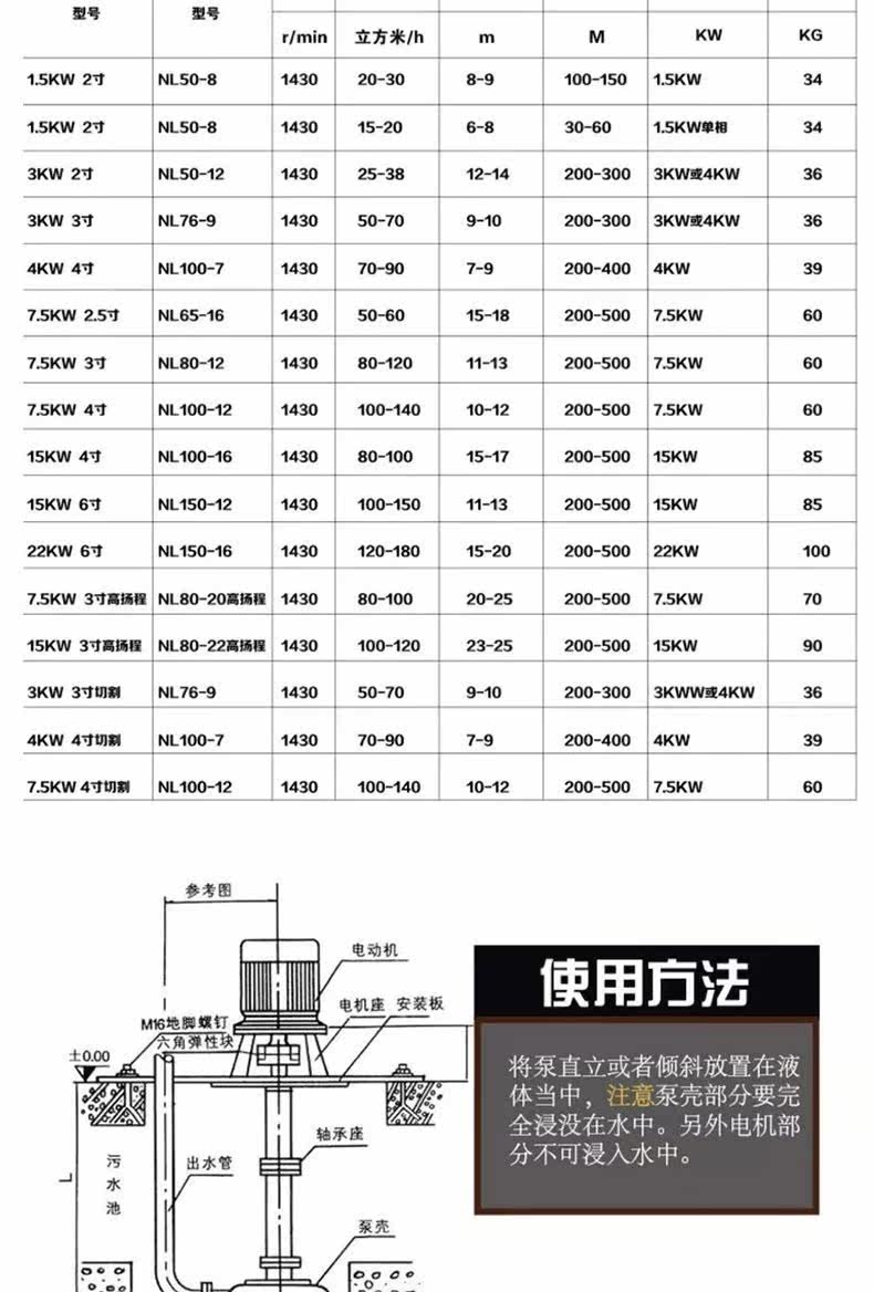 - 2-дюймовый 1-метровый канализационный насос (одиночный насос) 1,5 кВт