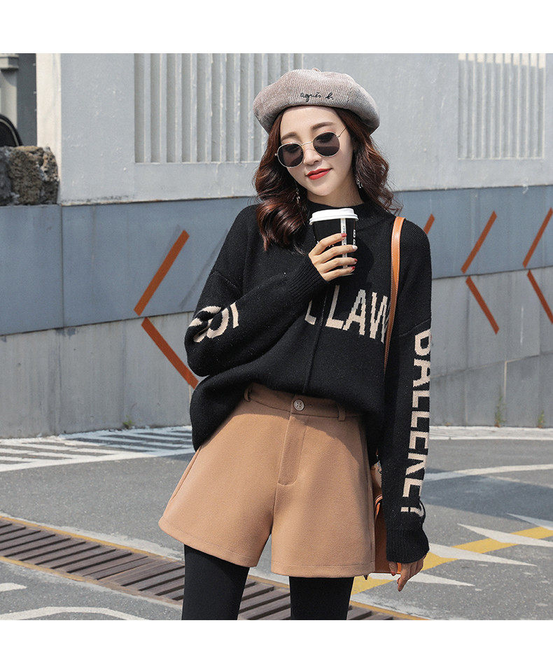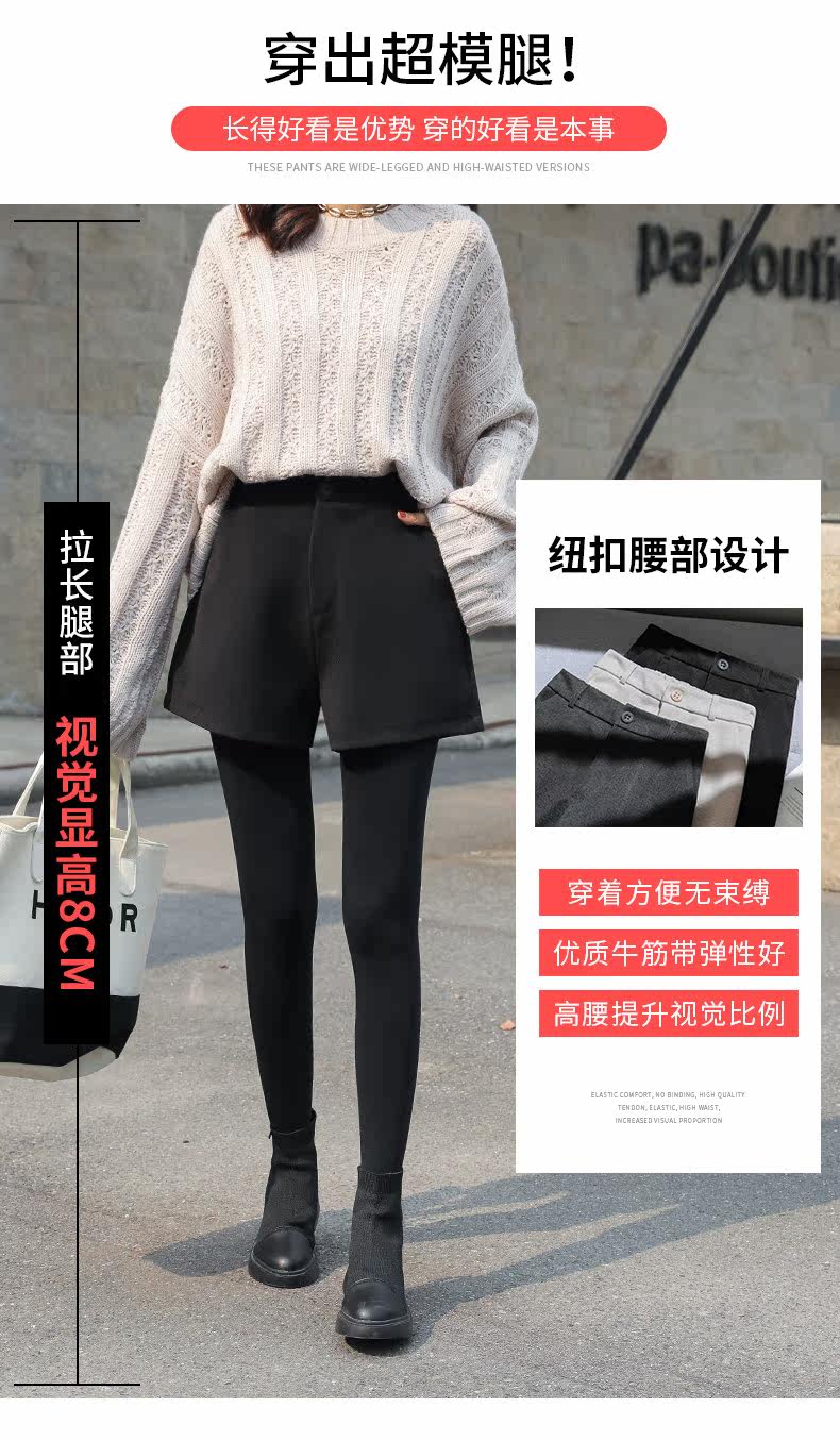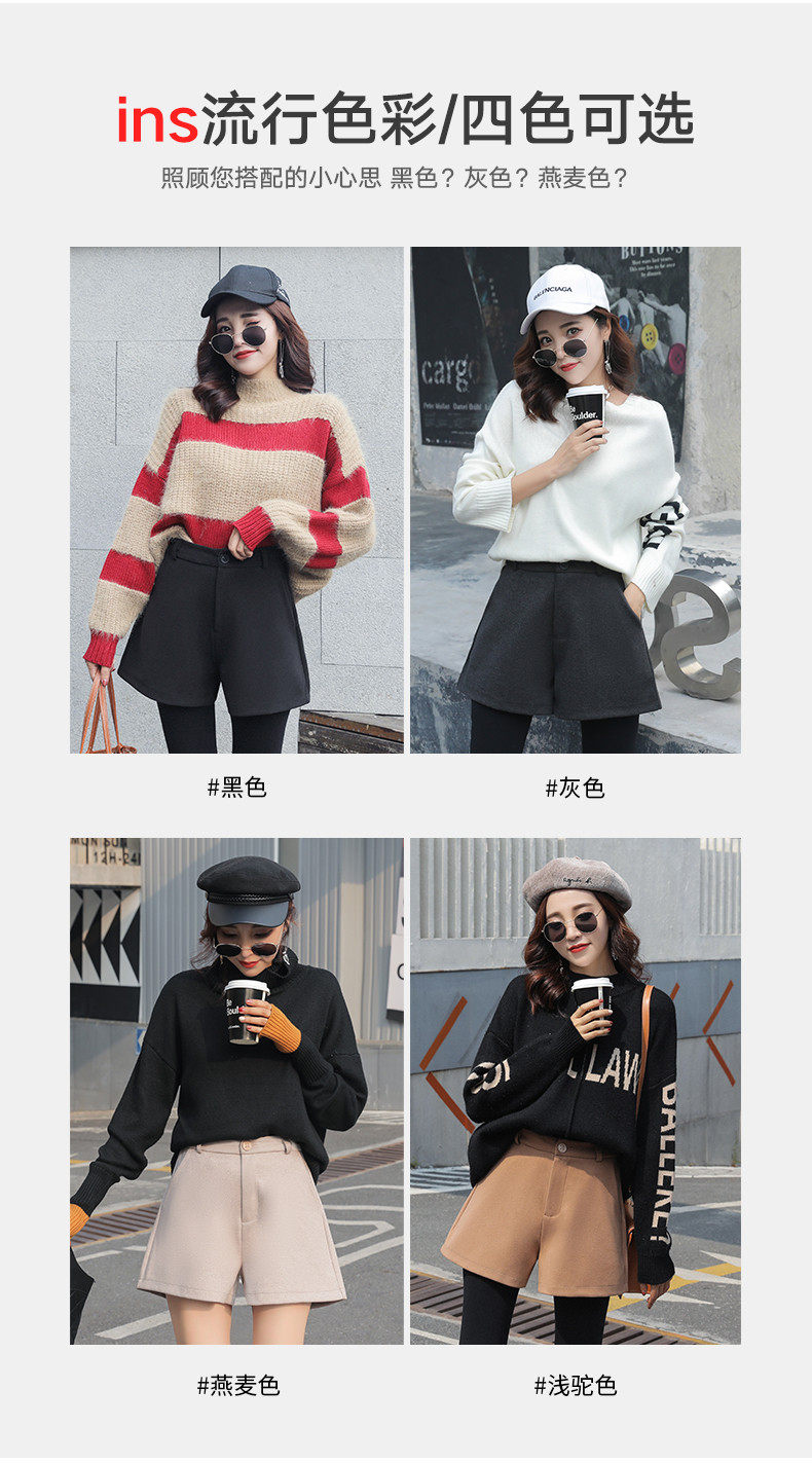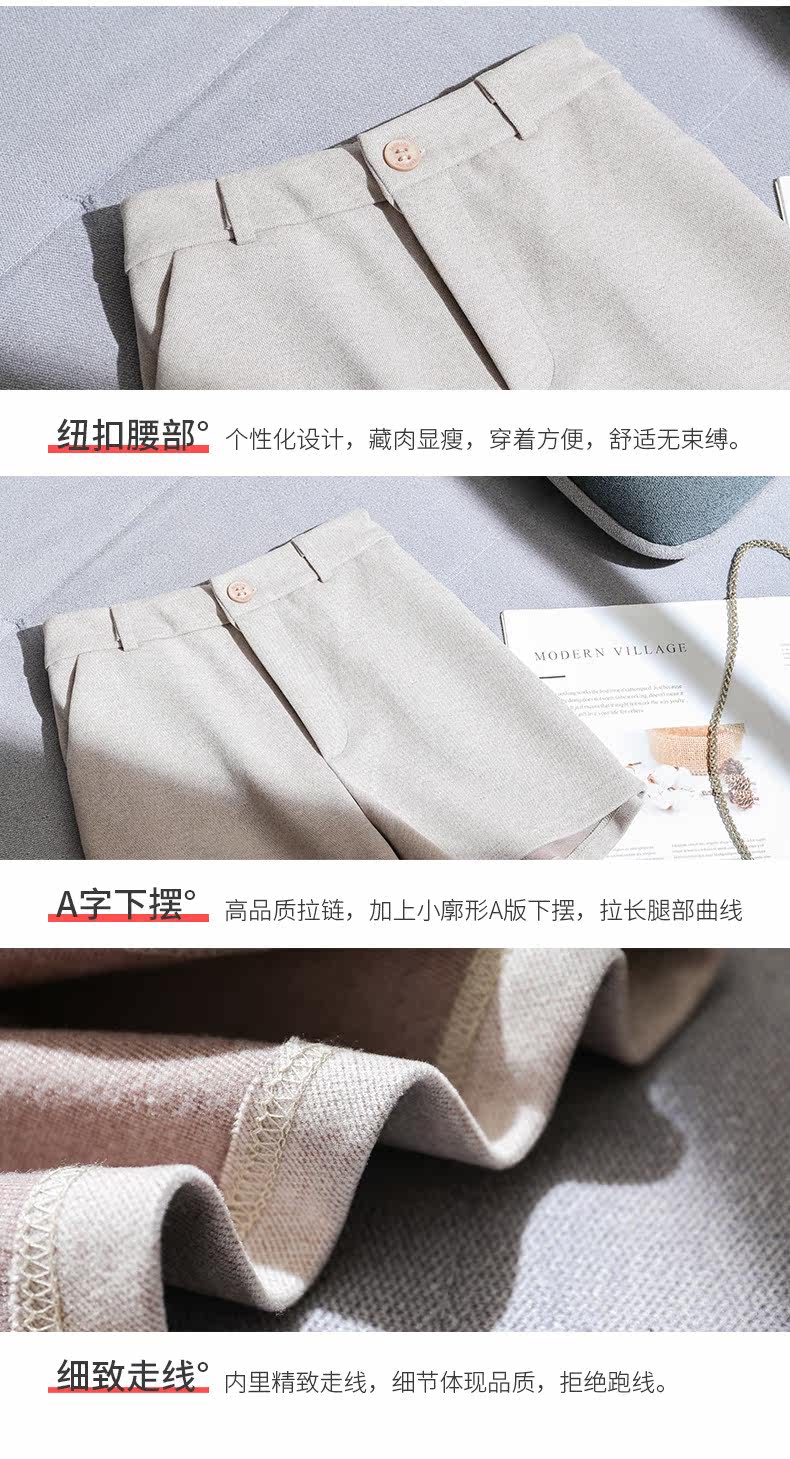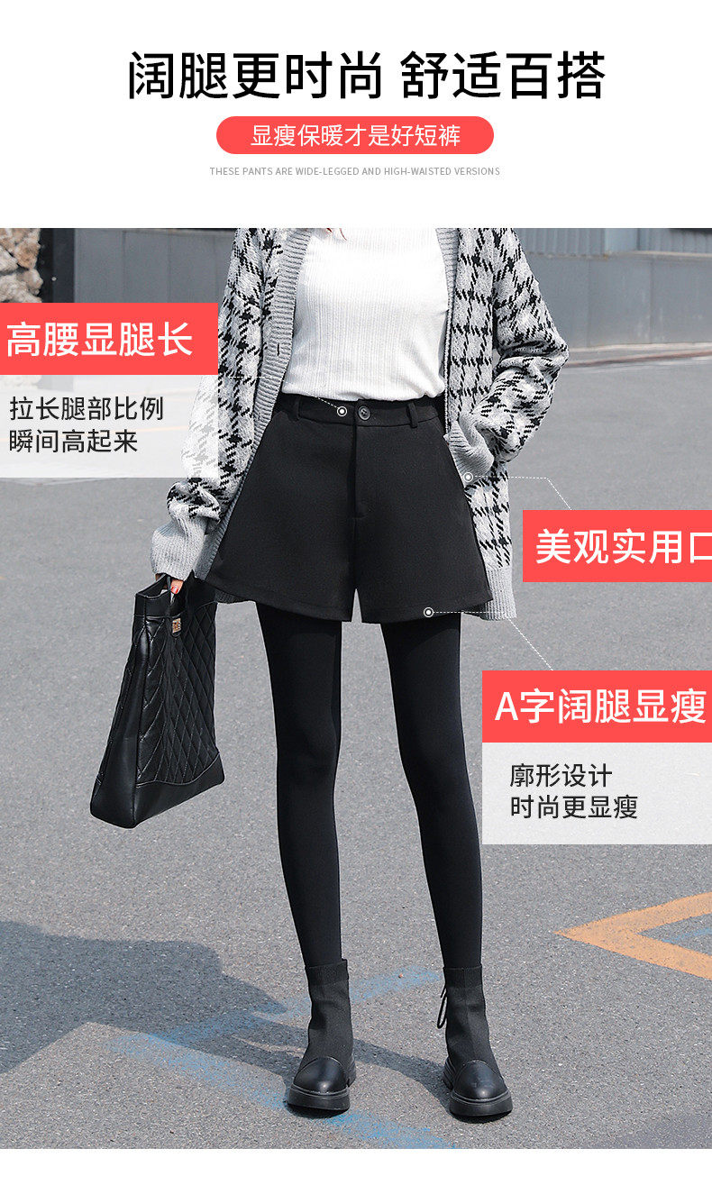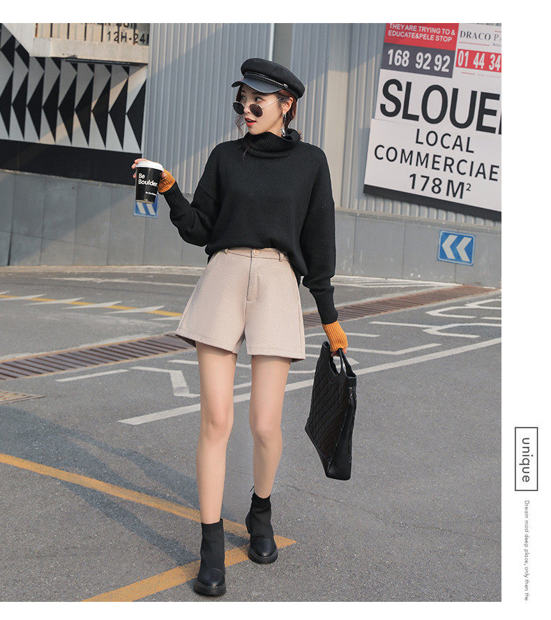Шерстяные шорты, демисезонные базовые штаны, коллекция 2021, в корейском стиле, увеличенная толщина, А-силуэт, свободный крой, высокая талия