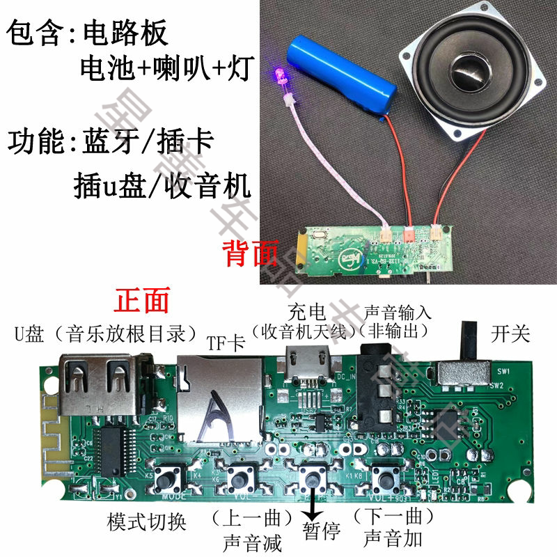DIY Bluetooth -динамик Цвет освещения освещение освещение аудио схемы Bluetooth Power Power Poard Poard Mp3 плата модуля модуля