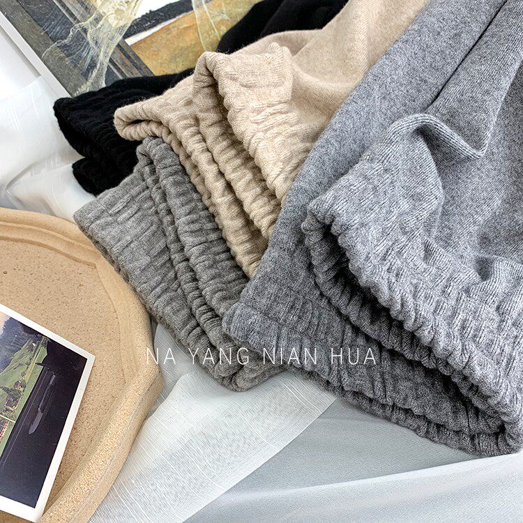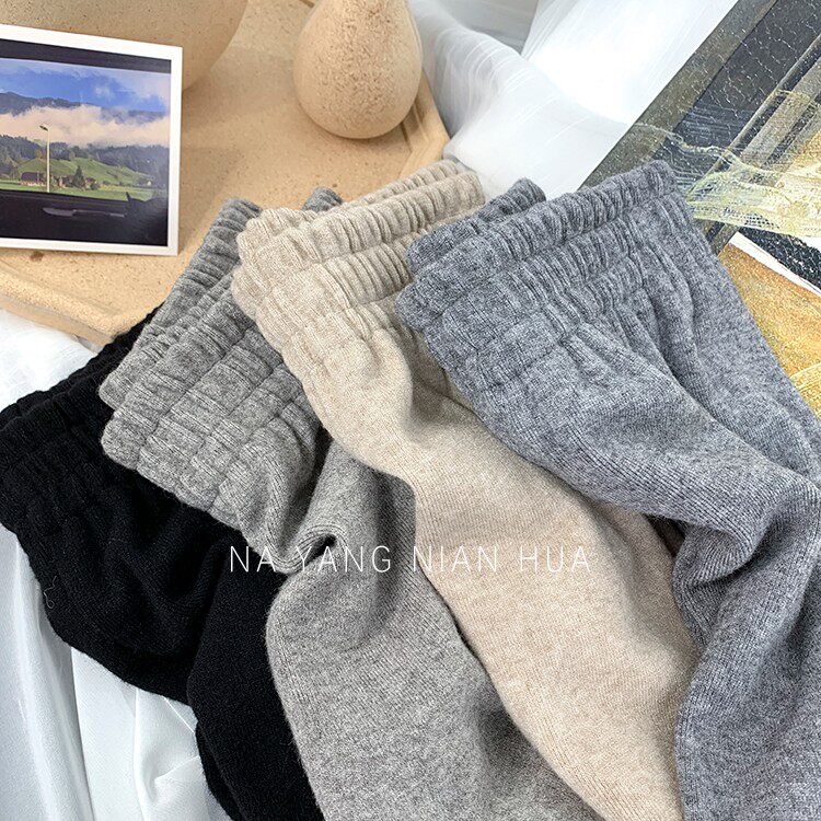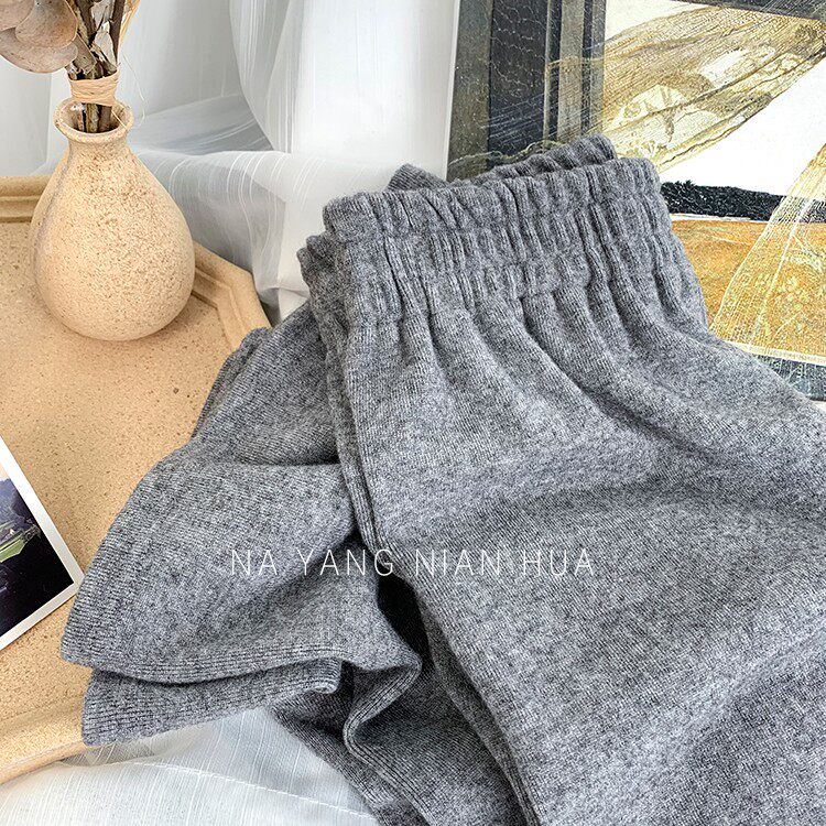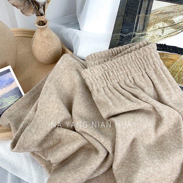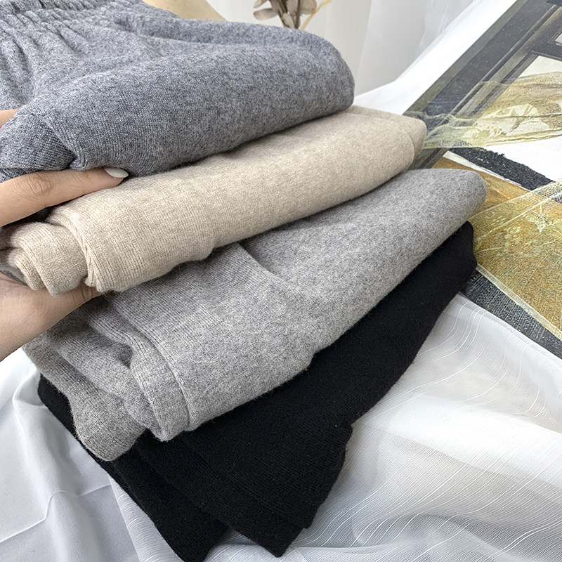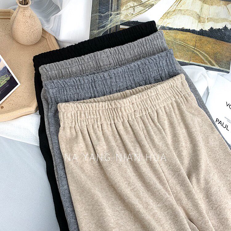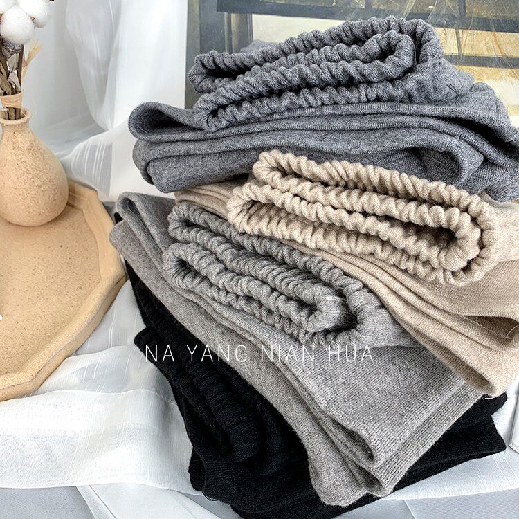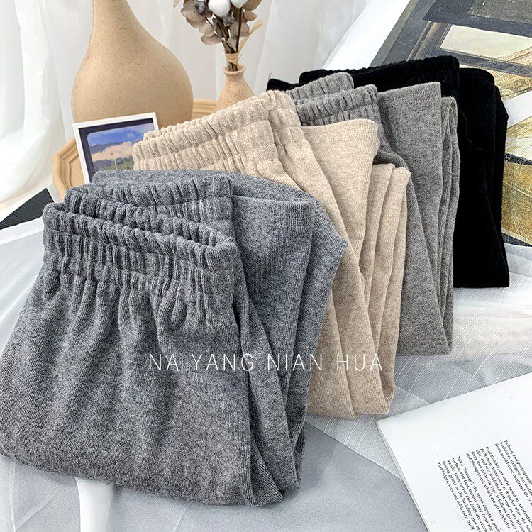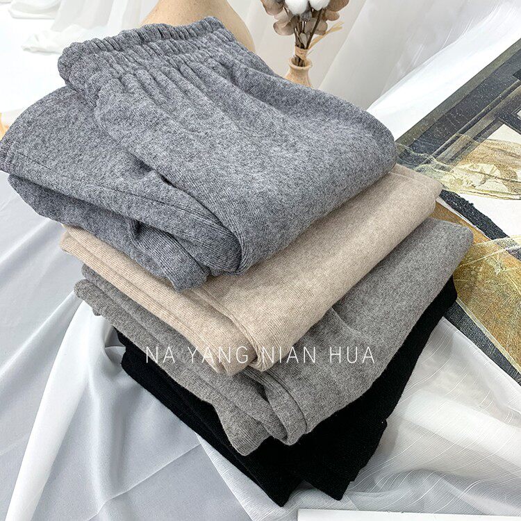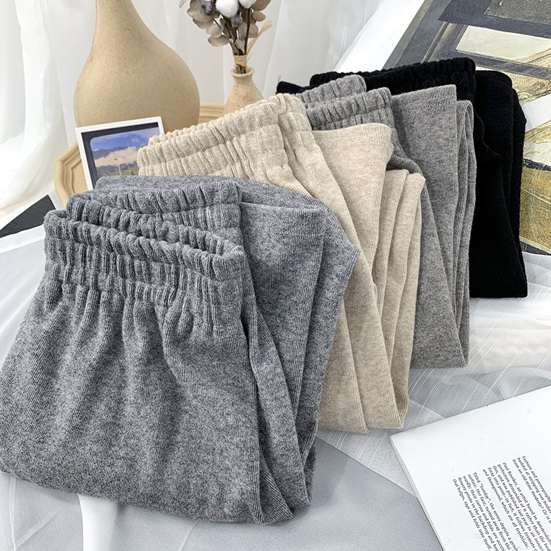 Трикотажные кашемировые демисезонные штаны, леггинсы, в корейском стиле, по фигуре, высокая талия, свободный крой