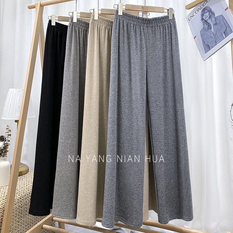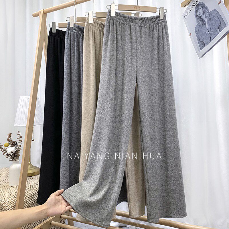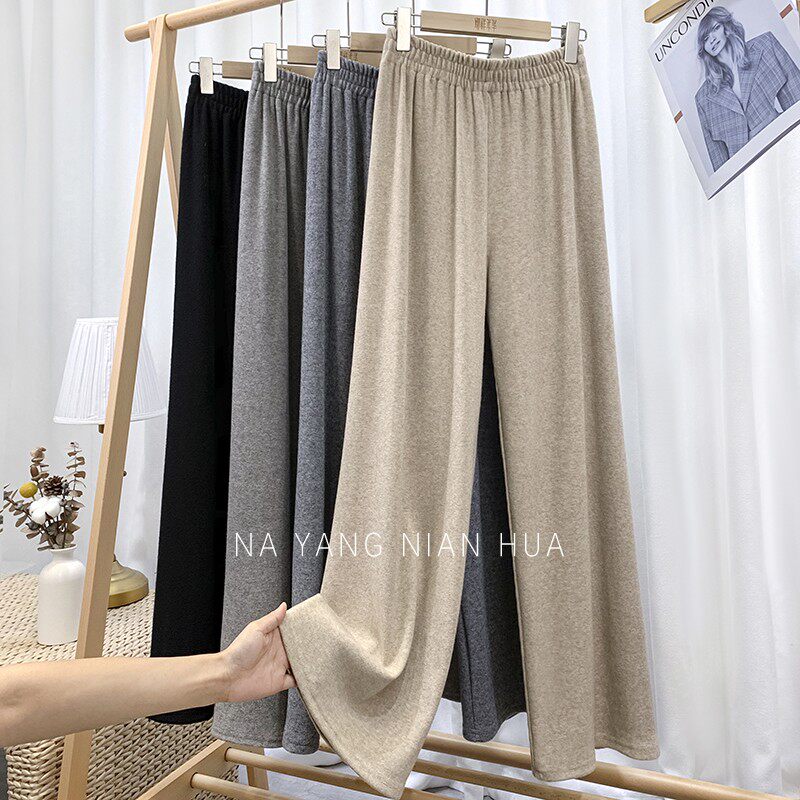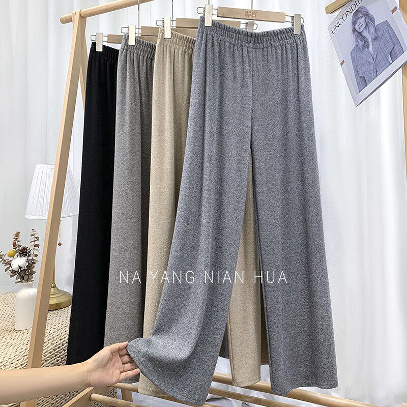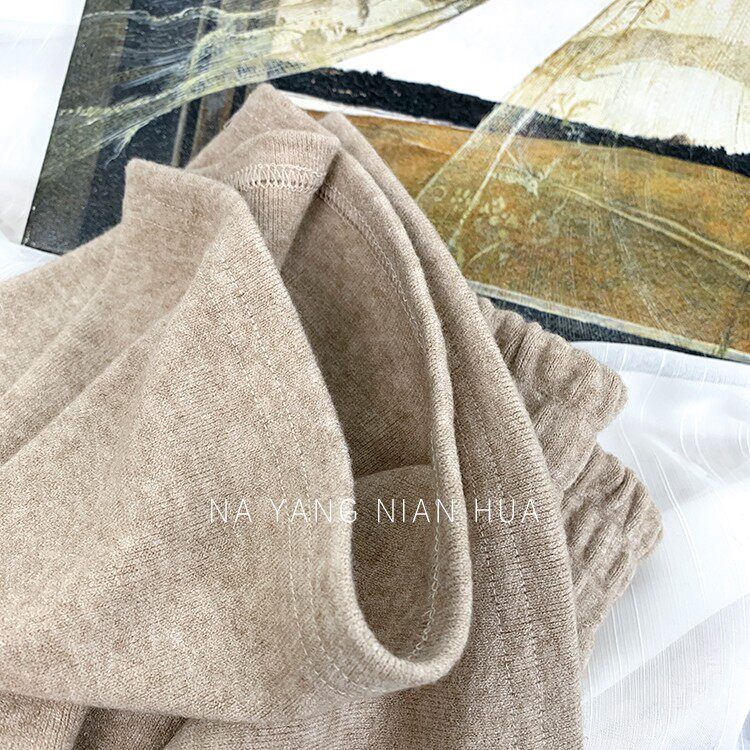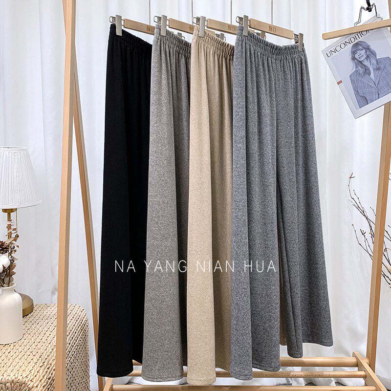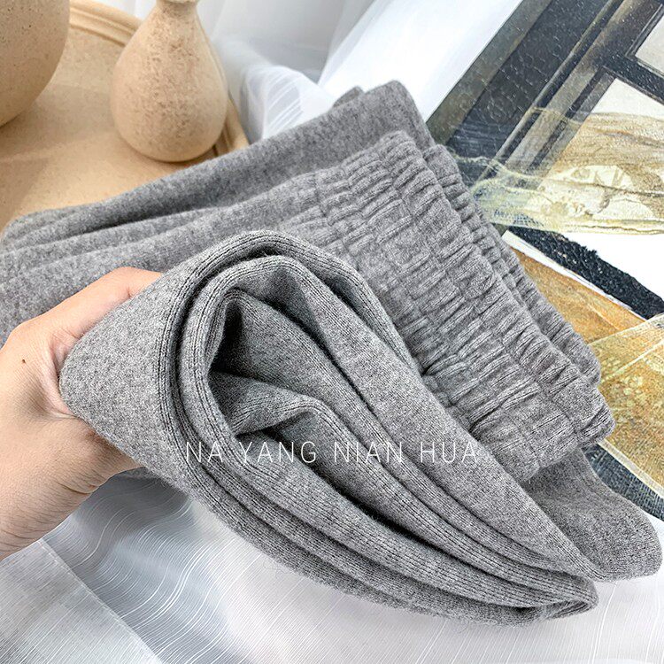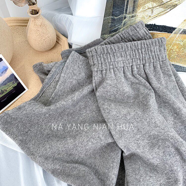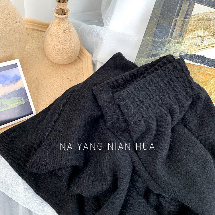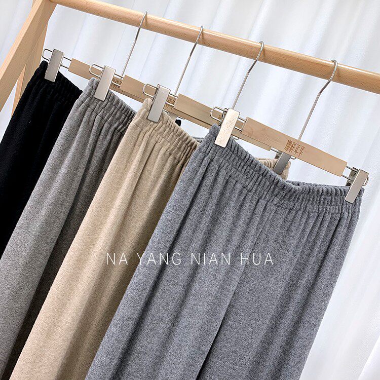 Трикотажные кашемировые демисезонные штаны, леггинсы, в корейском стиле, по фигуре, высокая талия, свободный крой