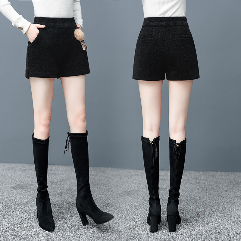Бархатные шорты, демисезонные штаны, универсальные короткие сапоги, 2020, высокая талия, свободный прямой крой, в корейском стиле