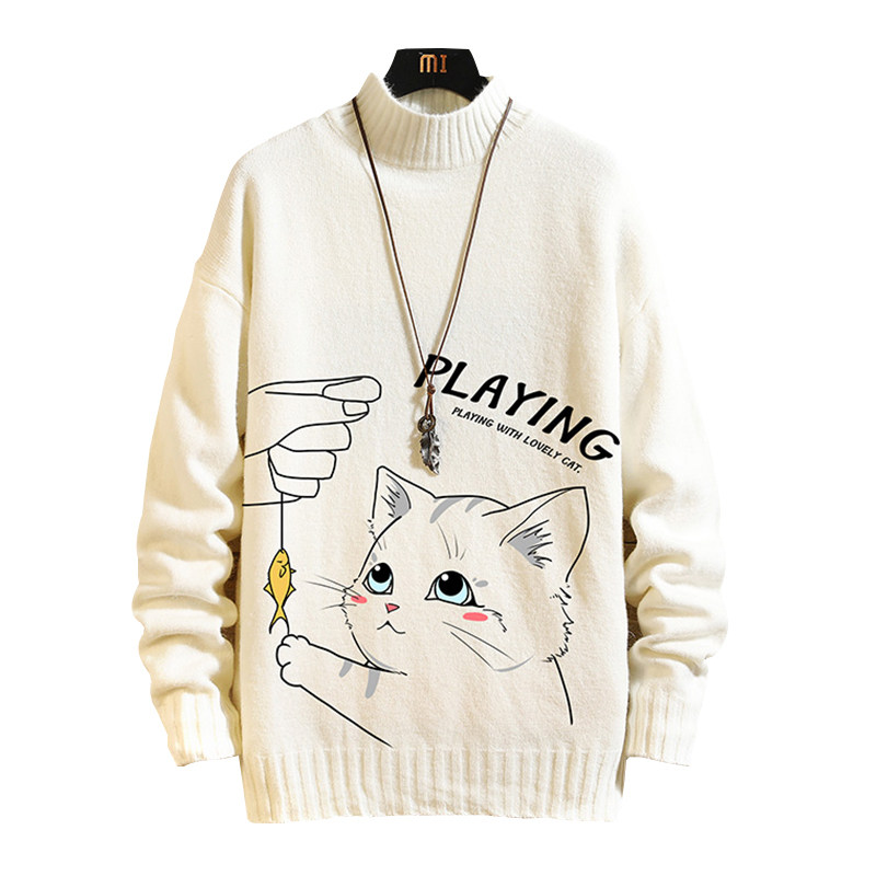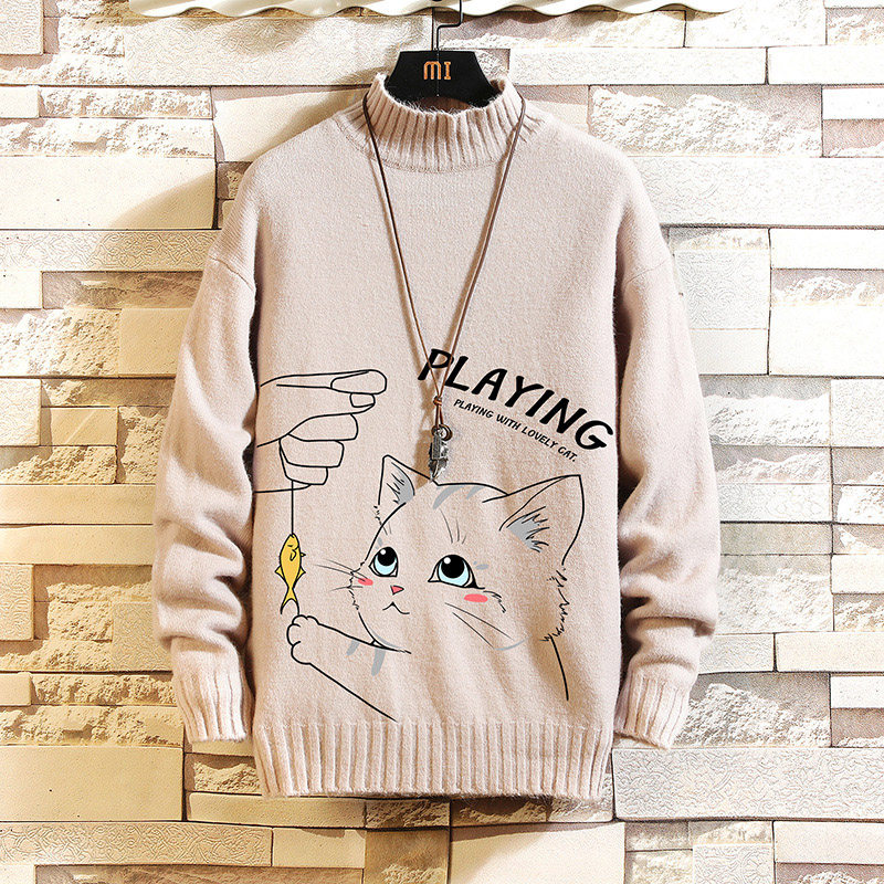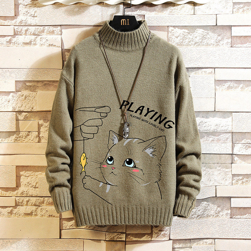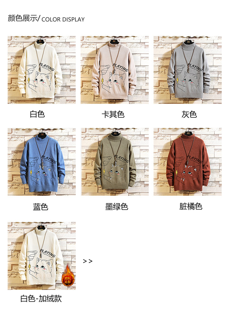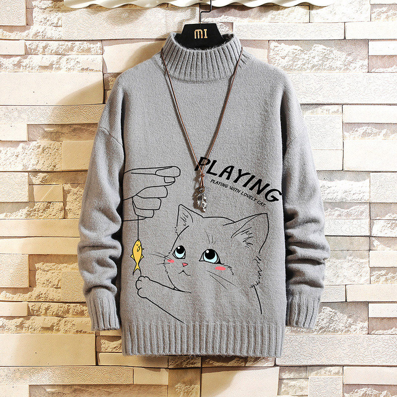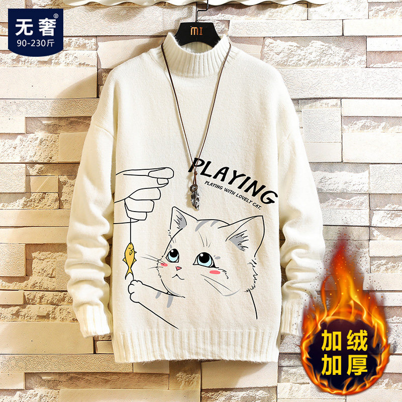 Утепленный трикотажный шерстяной свитер, высокий воротник, для влюбленных, свободный крой, оверсайз